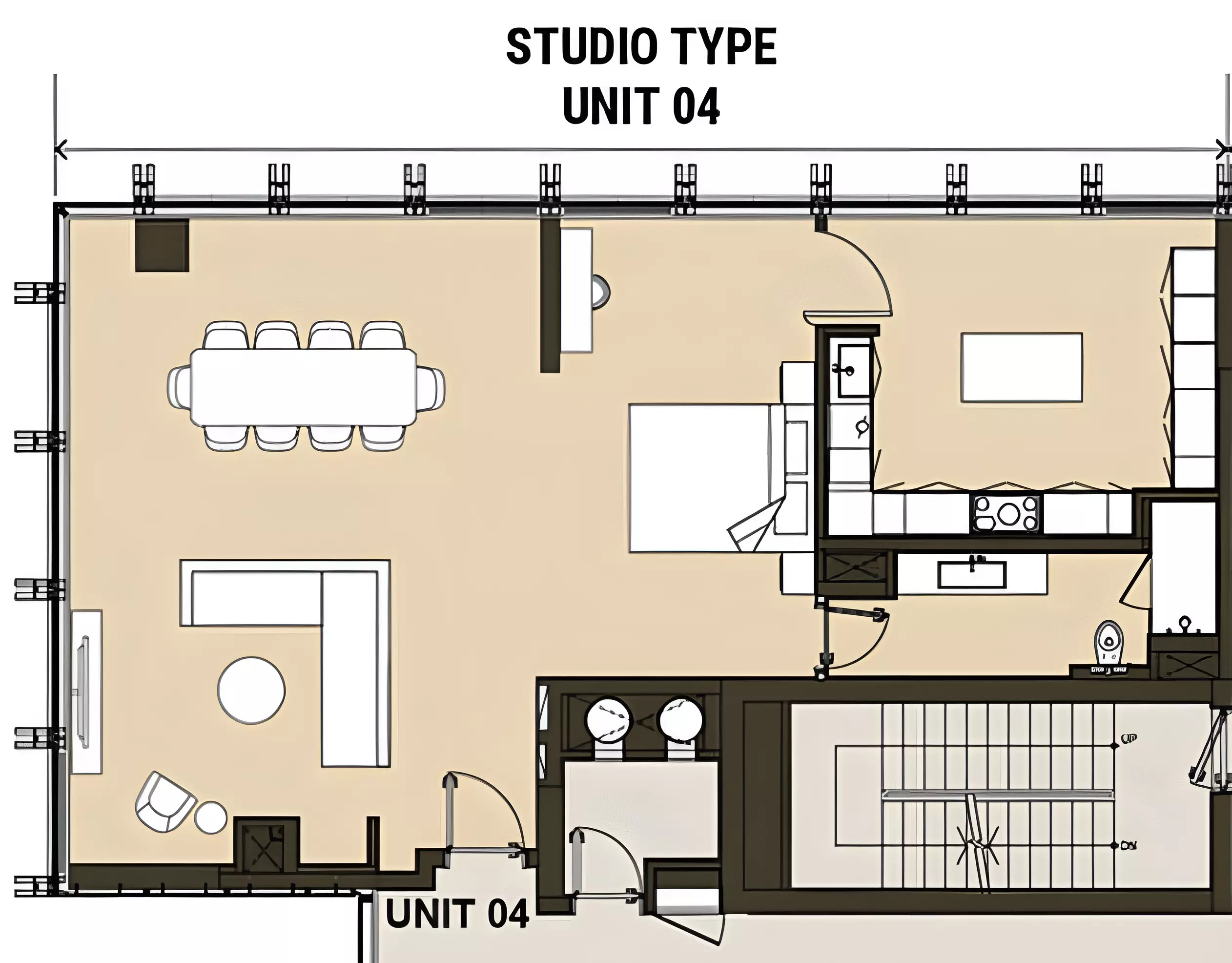 | Unit 04 (Penthouse Studio) | 1,234.00 | View |