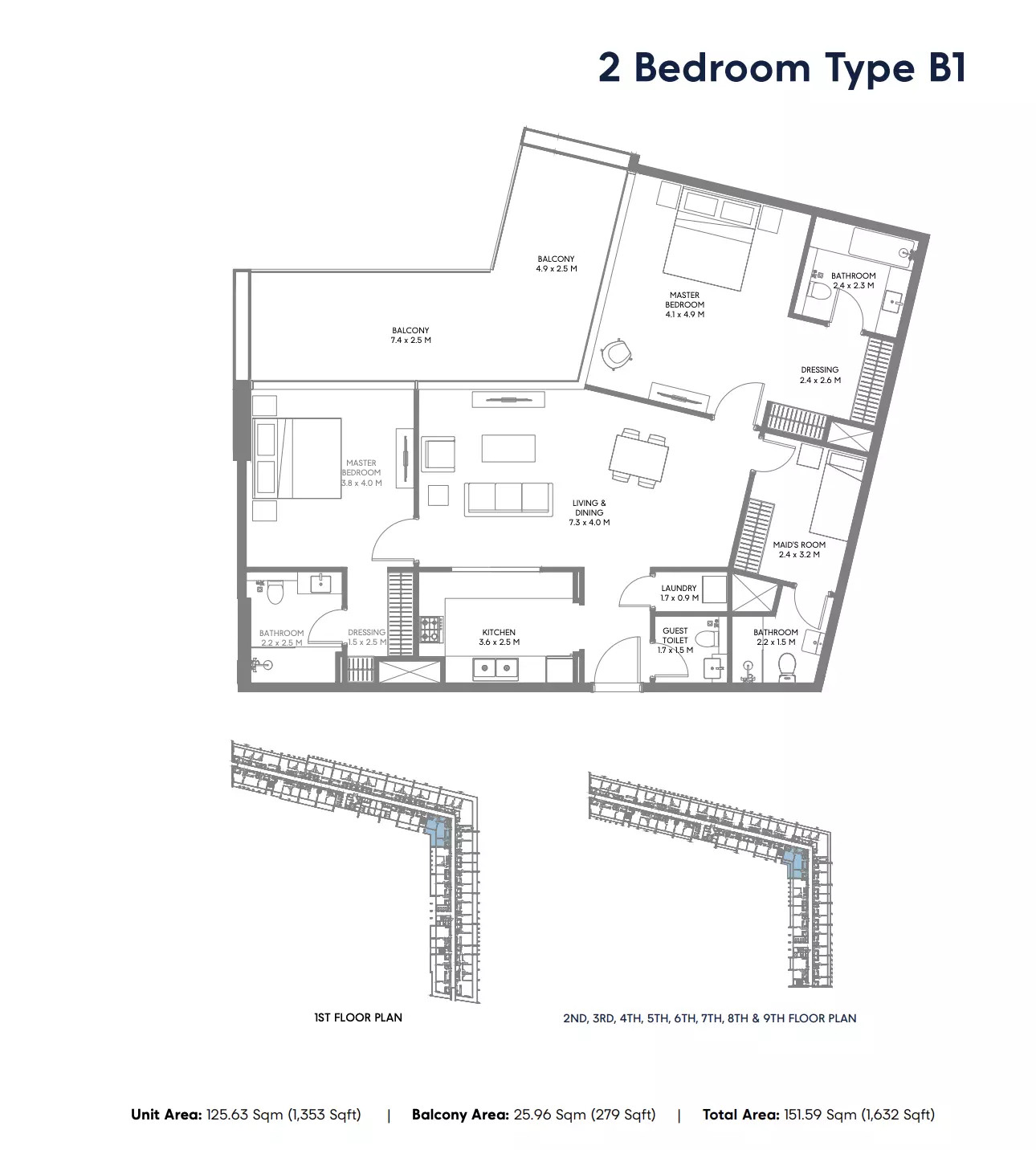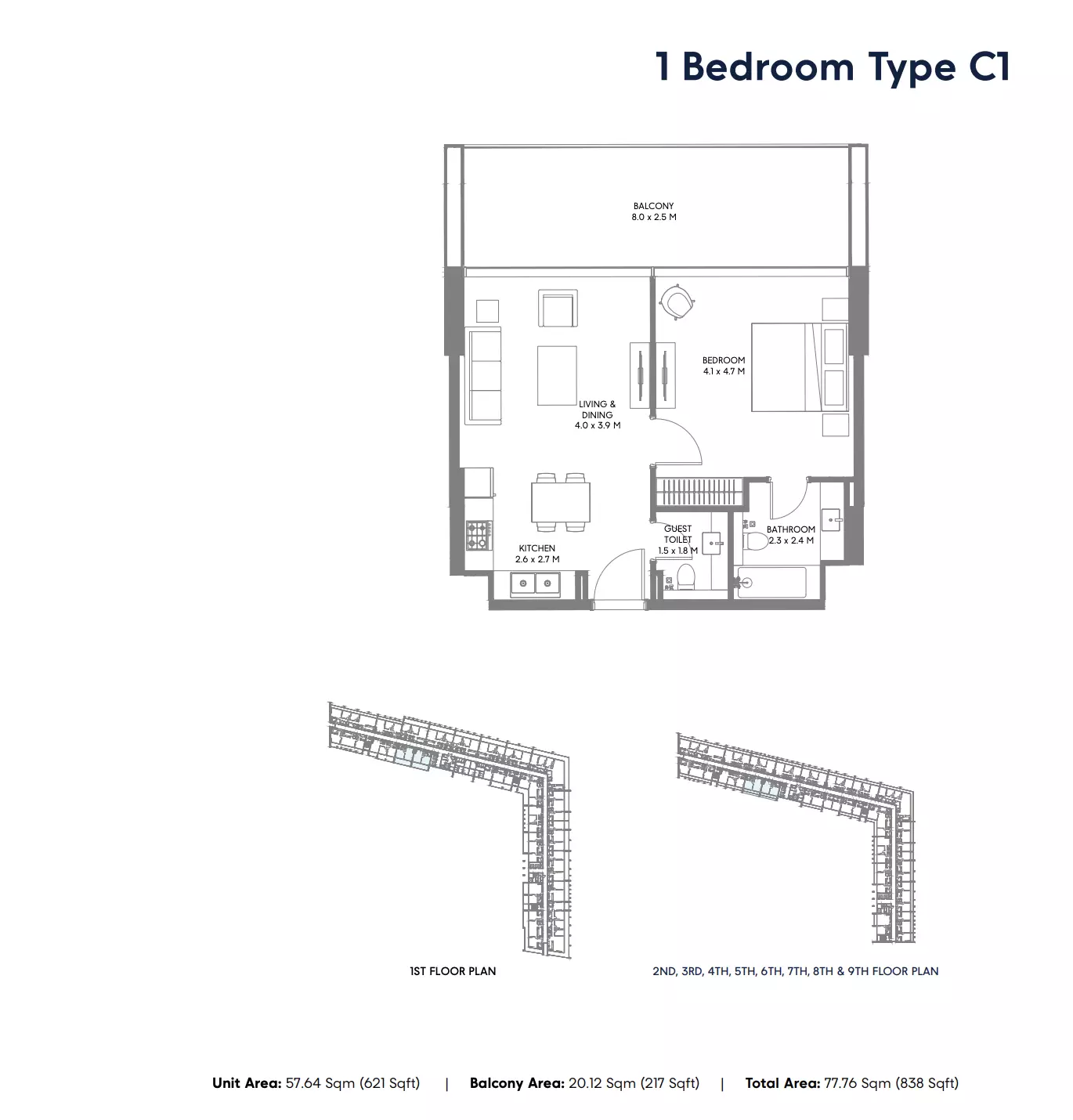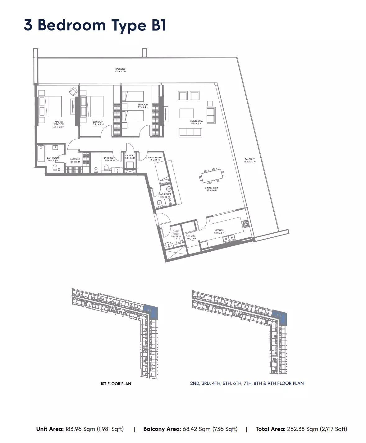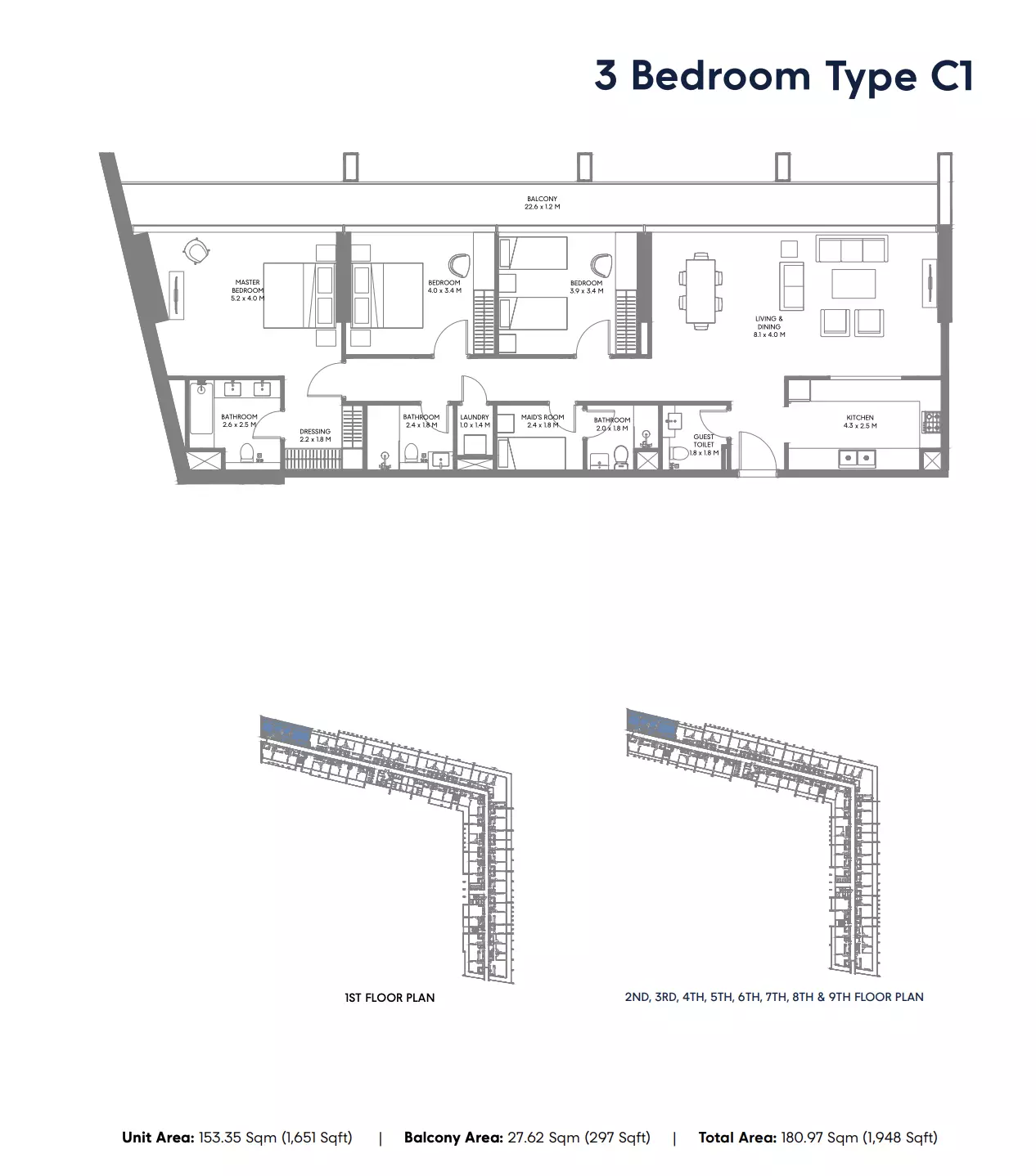 Safa Parkview offers a range of residential units, including one-bedroom, two-bedroom, and three-bedroom apartments. • The one-bedroom units are available from AED 1,582,000 with sizes ranging between 838 and 1,069 square feet. • Two-bedroom units start at AED 1,603,000 million and range in size from 1,255 to 1,929 square feet. For larger living spaces. • Three-bedroom apartments are available starting at AED 2,343,000 million, with unit sizes ranging from 1,948 to 2,811 square feet. These options cater to different lifestyle needs, offering both compact and spacious layouts. Pricing and availability are subject to change based on current market conditions.