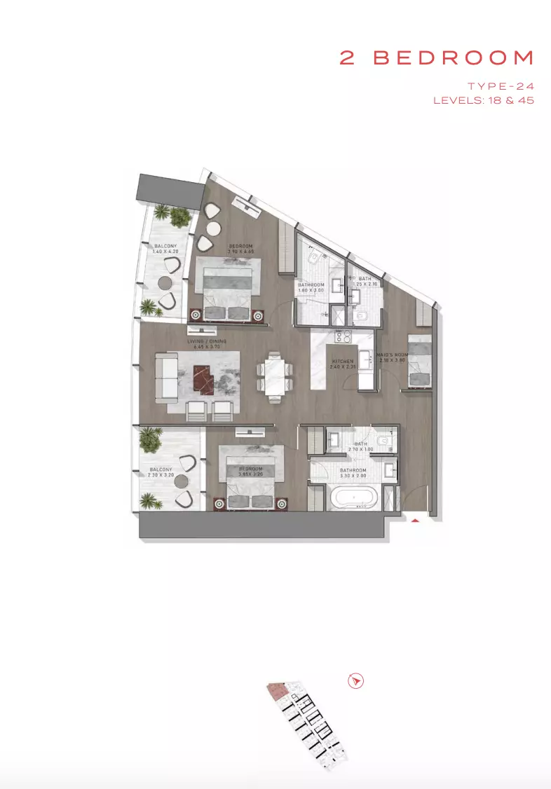 Safa Two Tower B is owned by Damac Properties, a well-known and established developer in the UAE, recognized for delivering luxury residential and commercial projects in prime locations.