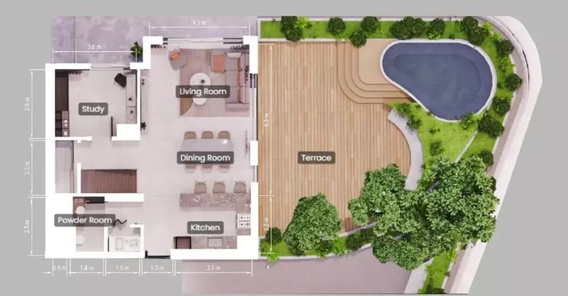 Sage offers a variety of residential units, including: 1-Bedroom Apartments: Sizes ranging from 796 to 807 square feet. 2-Bedroom Duplexes: Sizes ranging from 2,368 to 2,928 square feet. 3-Bedroom Apartments: Sizes ranging from 1,937 to 2,002 square feet. These units feature modern interiors, ample natural light, and views of lush landscapes.