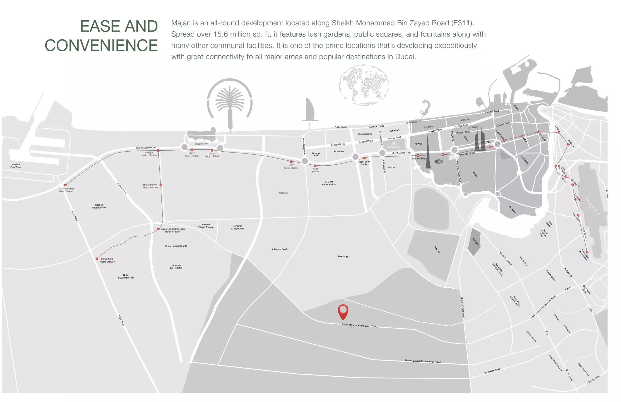 Samana Barari Lagoons is located in Dubai, within the Dubailand area, specifically in the Majan community on Sheikh Mohammed Bin Zayed Road.