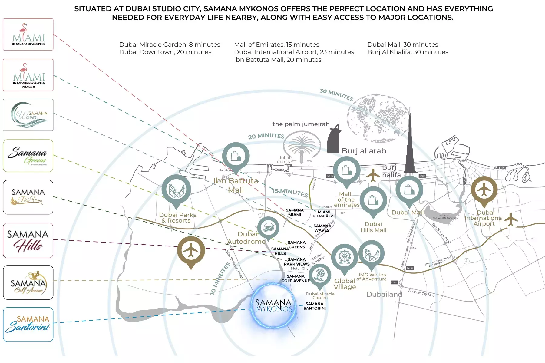 Samana Mykonos in Dubai Studio City stands out as an excellent investment opportunity due to its prime location and luxurious features. The development offers spacious apartments with private pools in each unit, a leisure deck with a beach-inspired "Lagoon," and beautifully landscaped urban gardens. These unique elements create an elevated living experience that caters to both relaxation and luxury. With its proximity to major attractions like Dubai Autodrome, Palm Jumeirah, and Dubai Marina, residents can easily access key areas of the city. The project’s focus on a tranquil, upscale lifestyle and its strategic location make Samana Mykonos an attractive choice for investors looking for high potential returns.