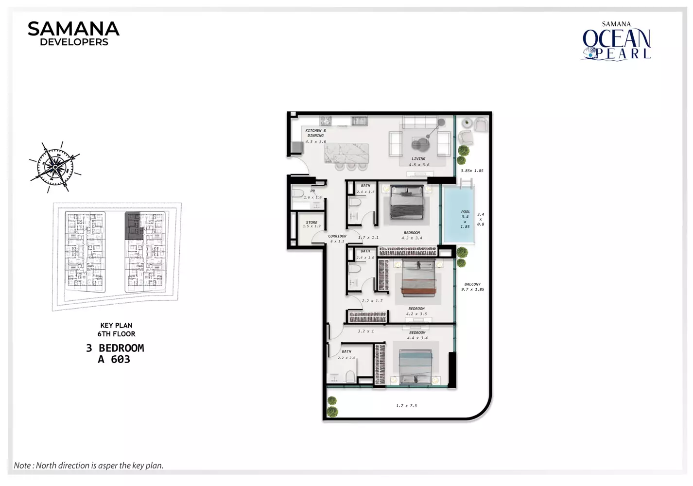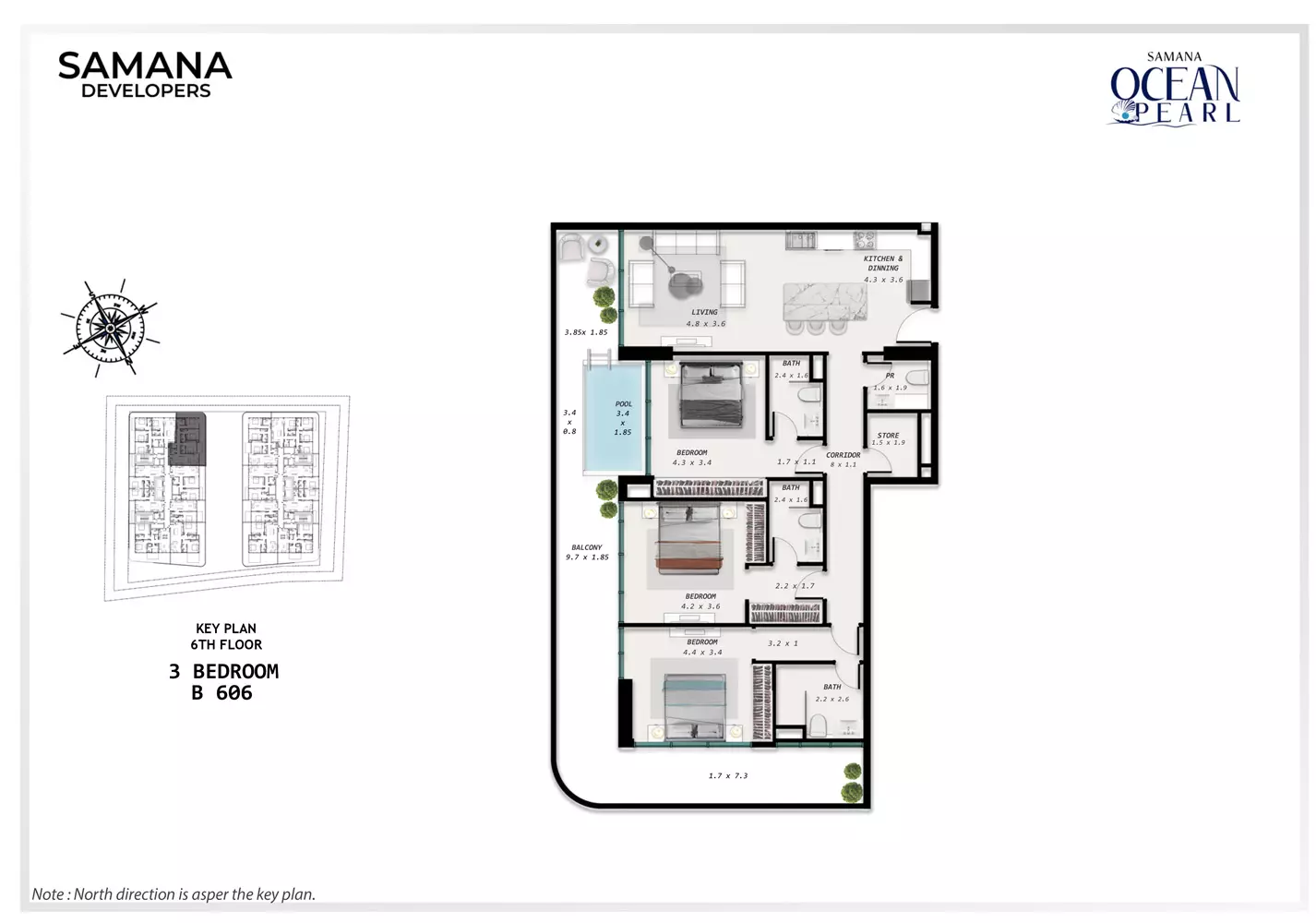 Samana Ocean Pearl is developed by Samana Developers, a recognized name in the Dubai real estate market known for delivering high-quality residential projects focused on luxury living.