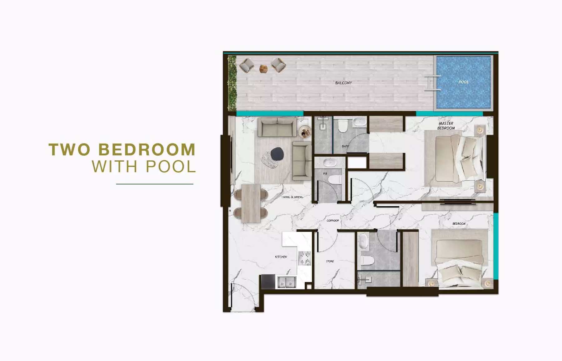 The development offers a variety of thoughtfully designed residences: Studios: Smart layouts, some with private pools. 1-Bedroom Apartments: Spacious interiors, many with balconies and private pools. 2-Bedroom Apartments: Large living areas, private terraces, and private pools in select units.
