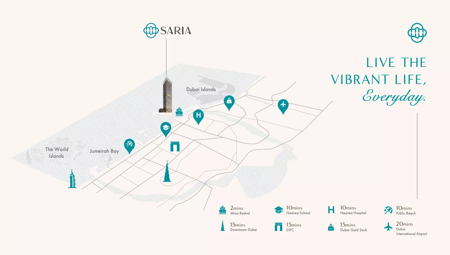 Saria is located in Dubai, Maritime City, offering a prime waterfront location in the heart of the city.