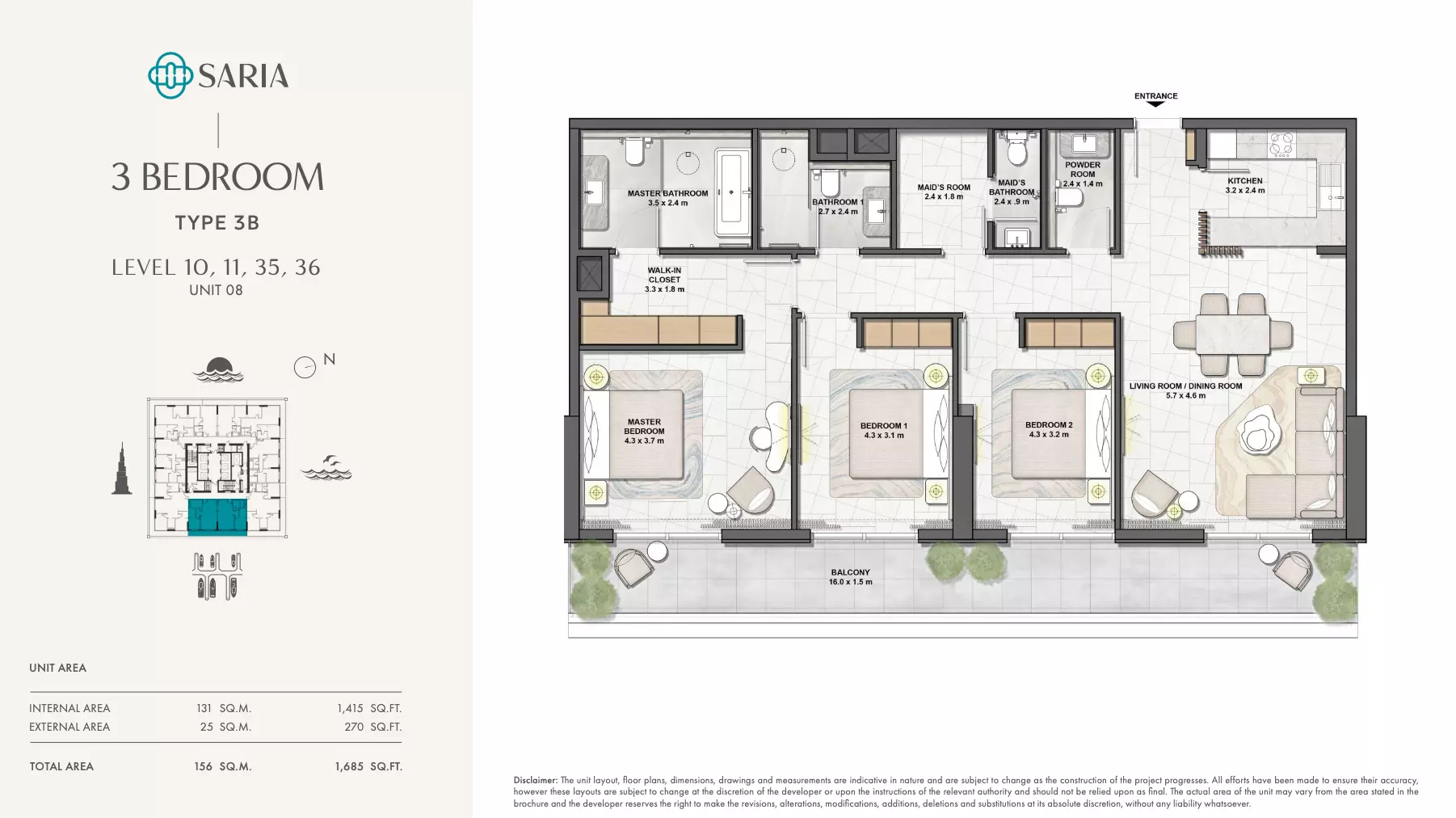 The delivery date for Saria is set for March 2028. This gives potential buyers ample time to prepare for the completion and handover of this luxurious project.