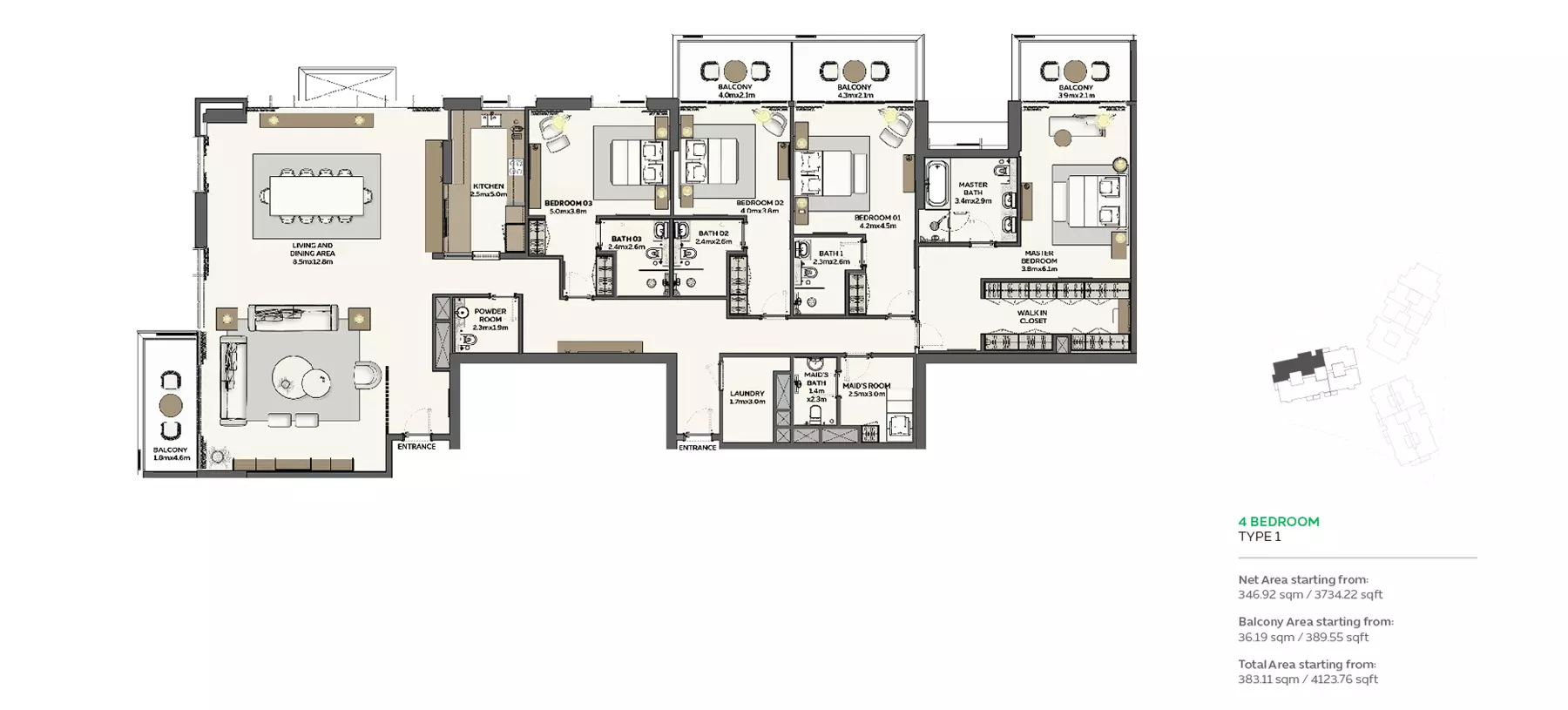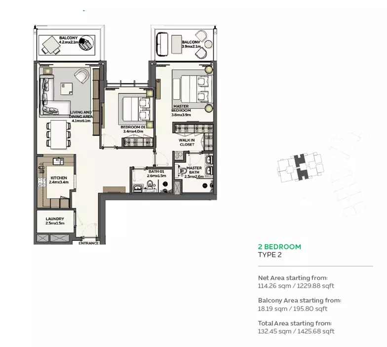 Sidr Residences offers luxurious 1- to 4-bedroom apartments starting at 1,880,000 AED.