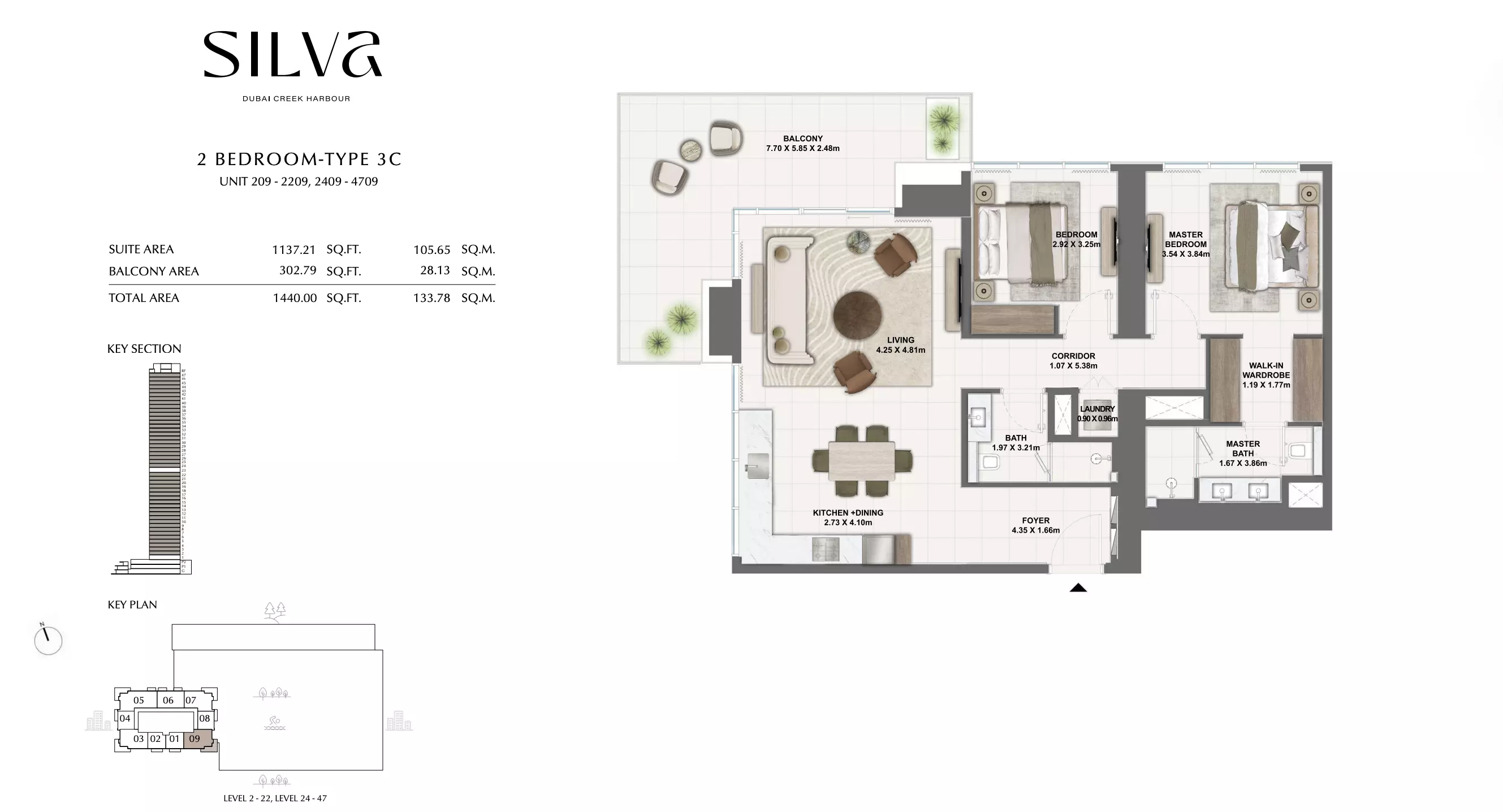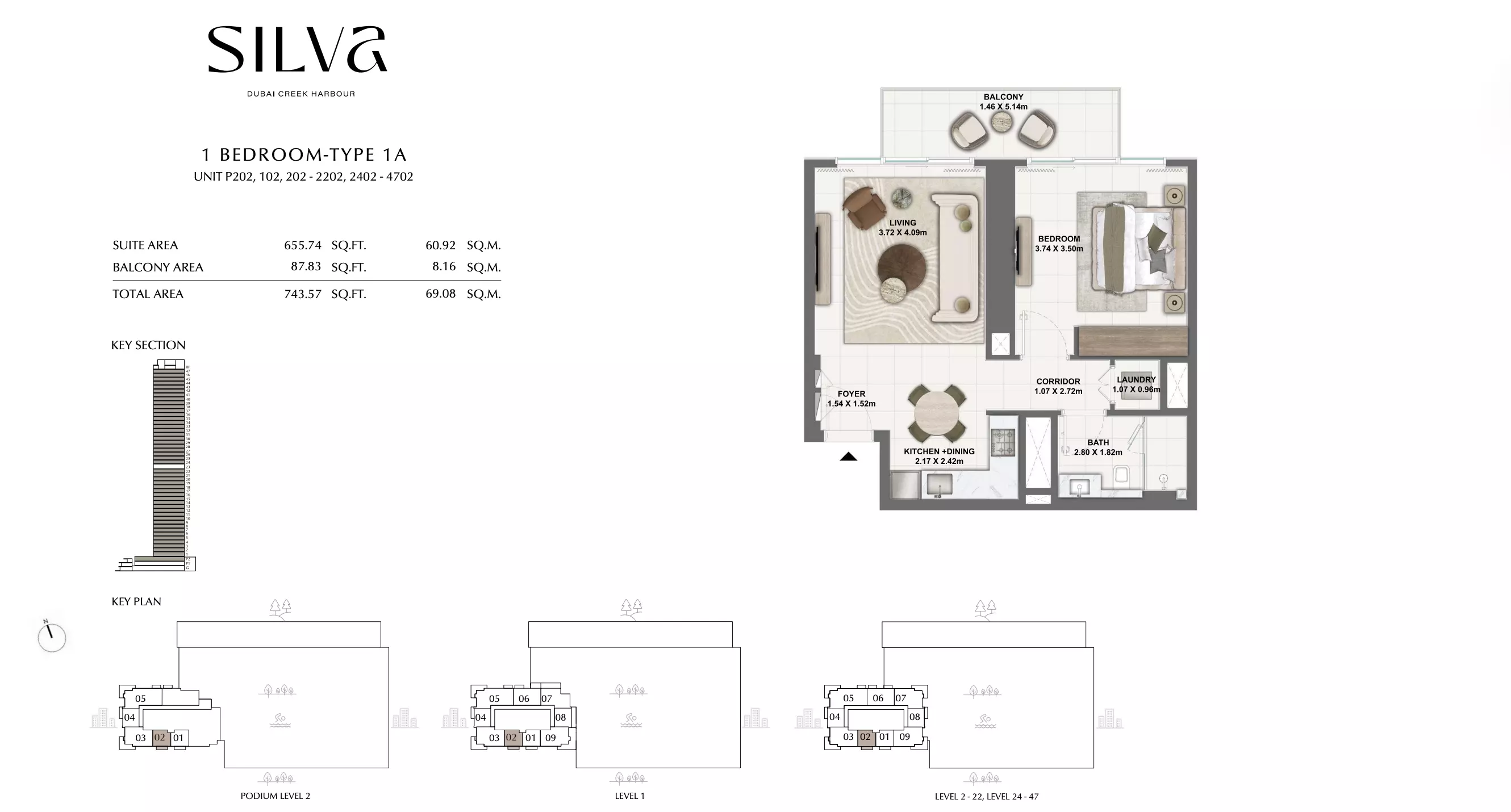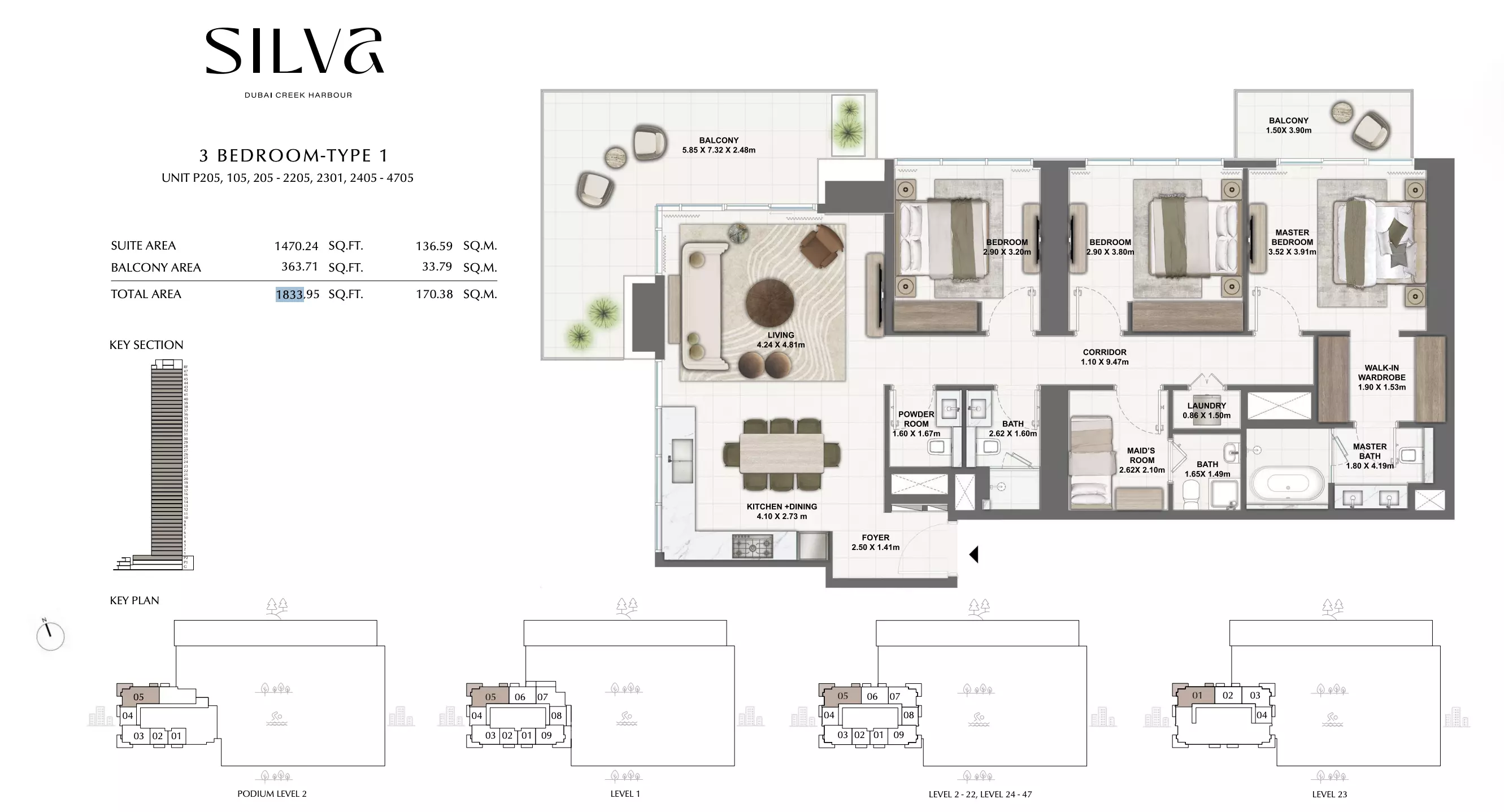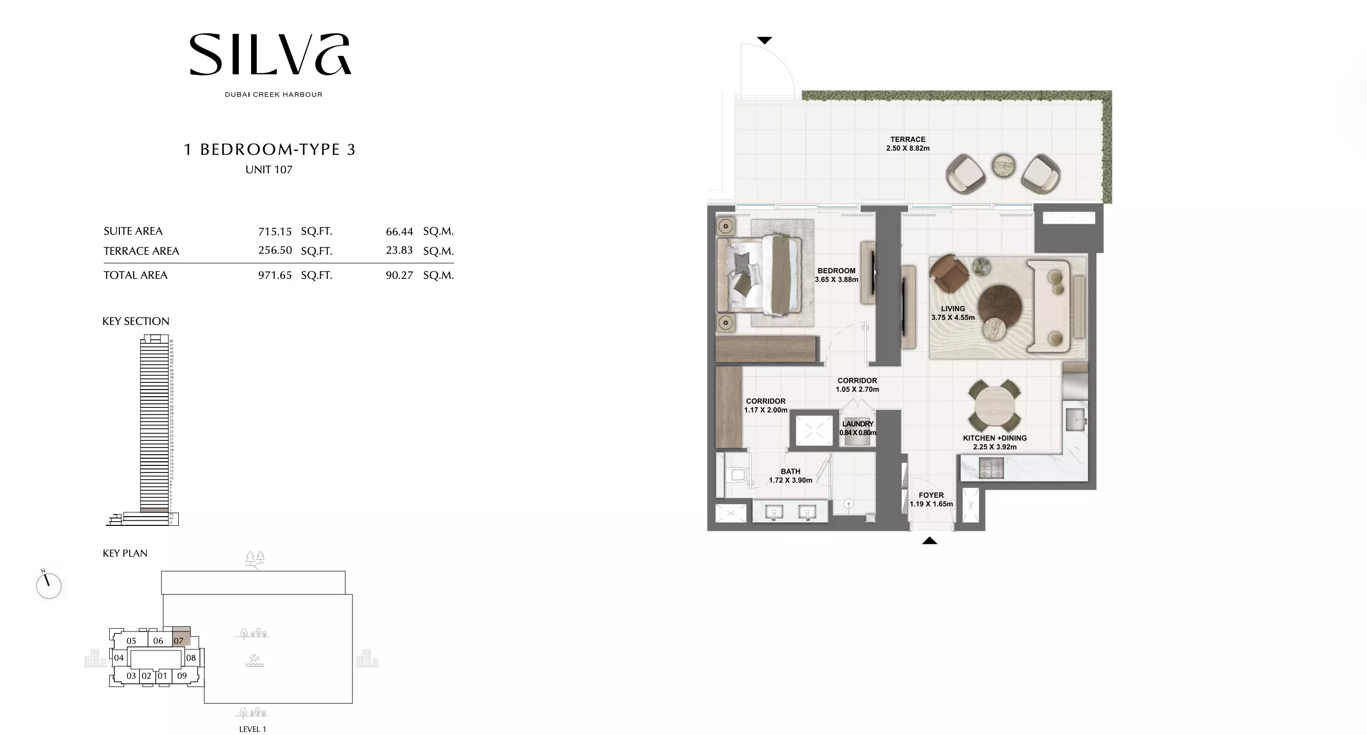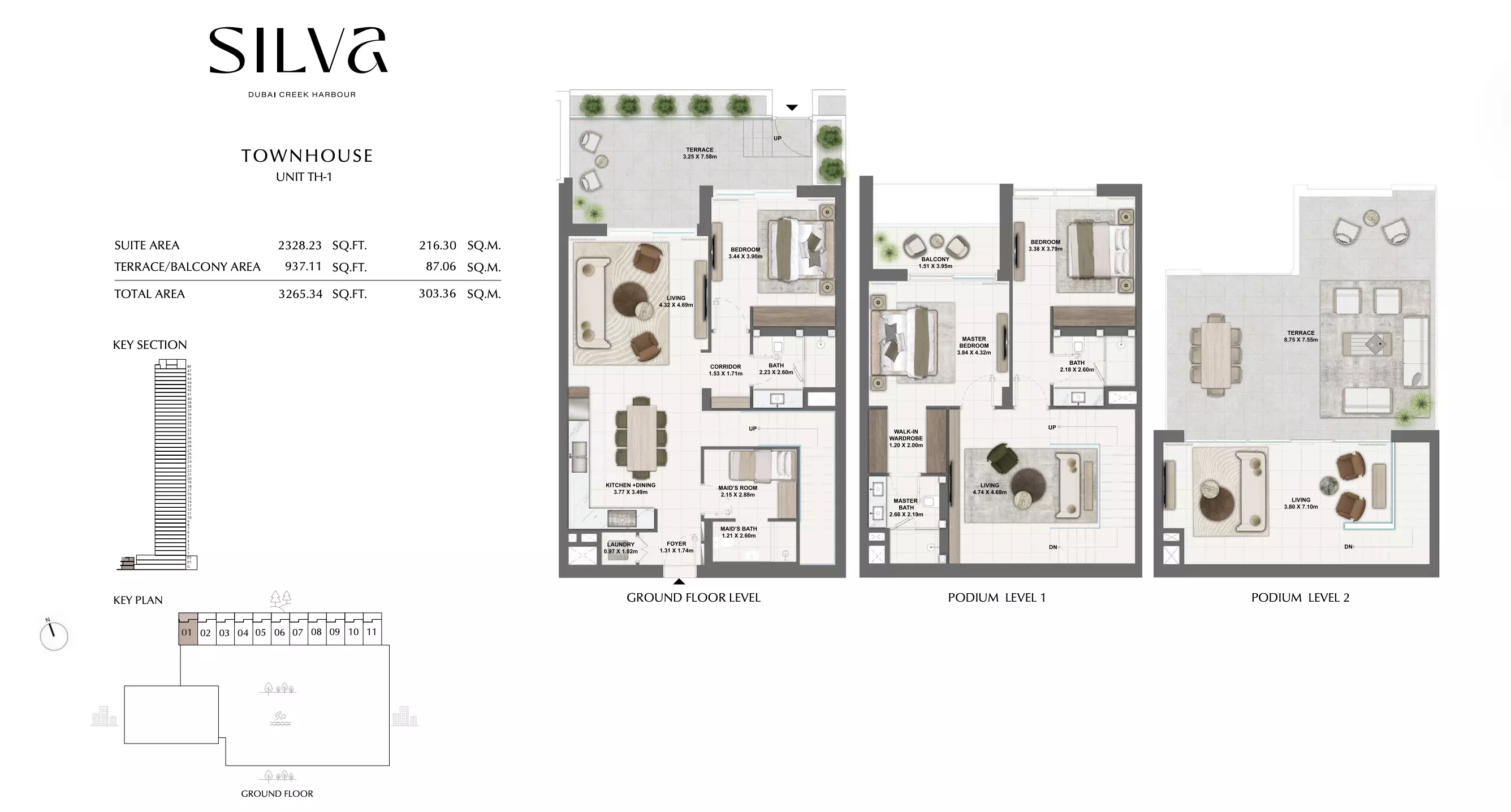Silva offers a range of residential units designed to cater to different lifestyle needs. The available housing options include 1-bedroom, 2-bedroom, and 3-bedroom apartments. • The 1-bedroom apartments range in size from 743 to 971 square feet, with prices starting at AED 1.8 M • The 2-bedroom apartments are larger, with sizes between 1,154 and 1,650 square feet, starting from AED 2.8 M. For those seeking more space. • The 3-bedroom apartments offer a consistent size of 1,833 square feet, starting from AED 3.9 M. For those seeking more space • The 3-bedroom townhouse are larger, with sizes between 3253 and 3265 square feet, starting from AED 6.3 M. For those seeking more space. • Each unit is thoughtfully designed to provide comfortable living spaces with modern layouts and quality finishes.