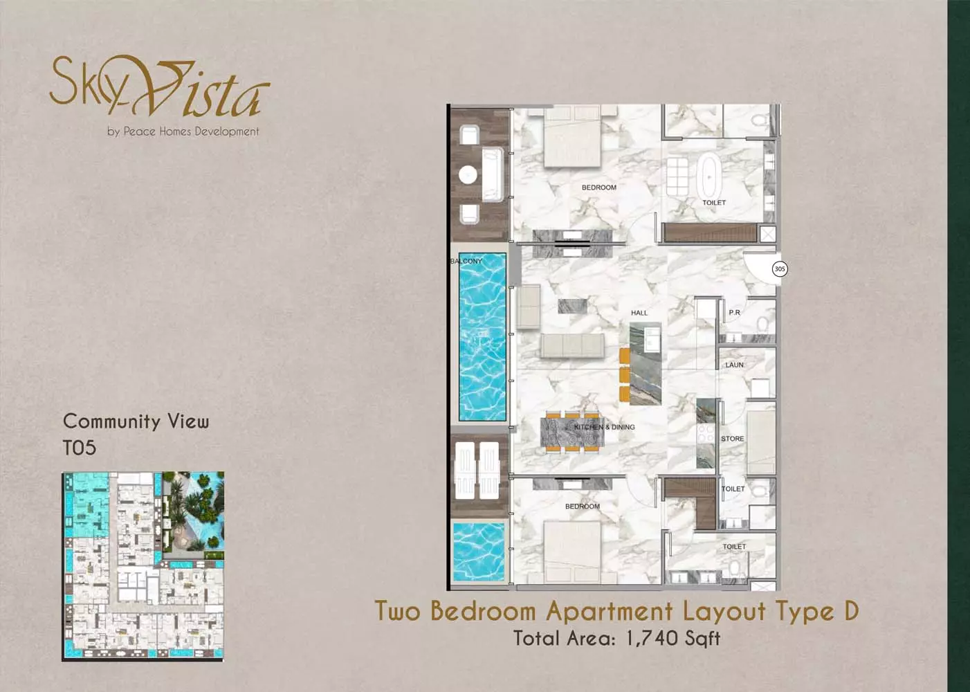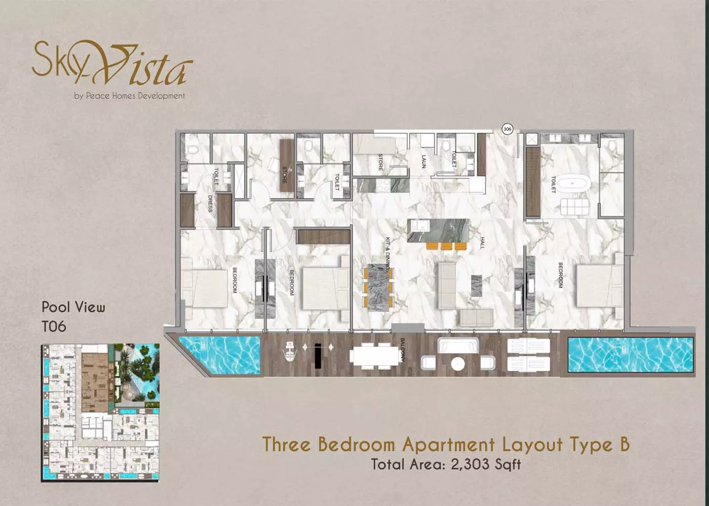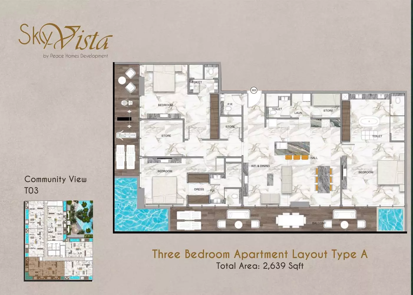 Sky Vista is developed by Peace Homes Group, a trusted developer known for creating innovative and community-focused properties in Dubai.