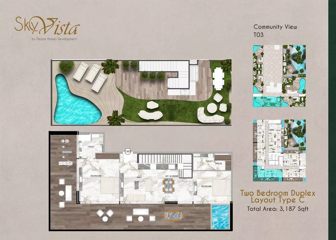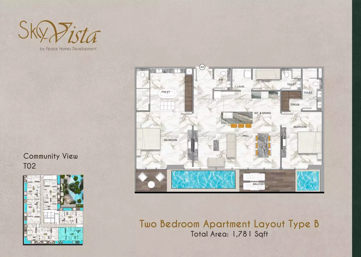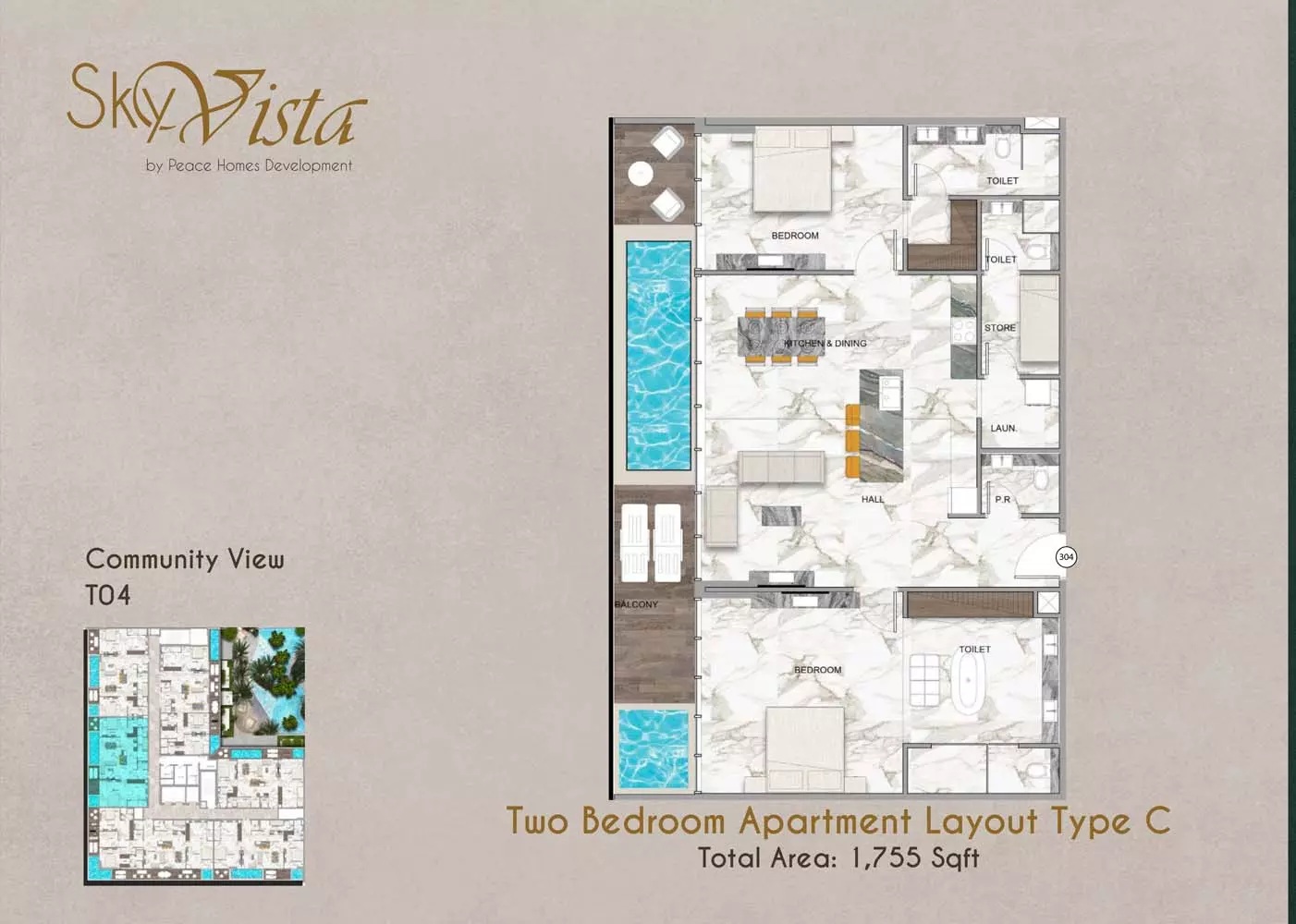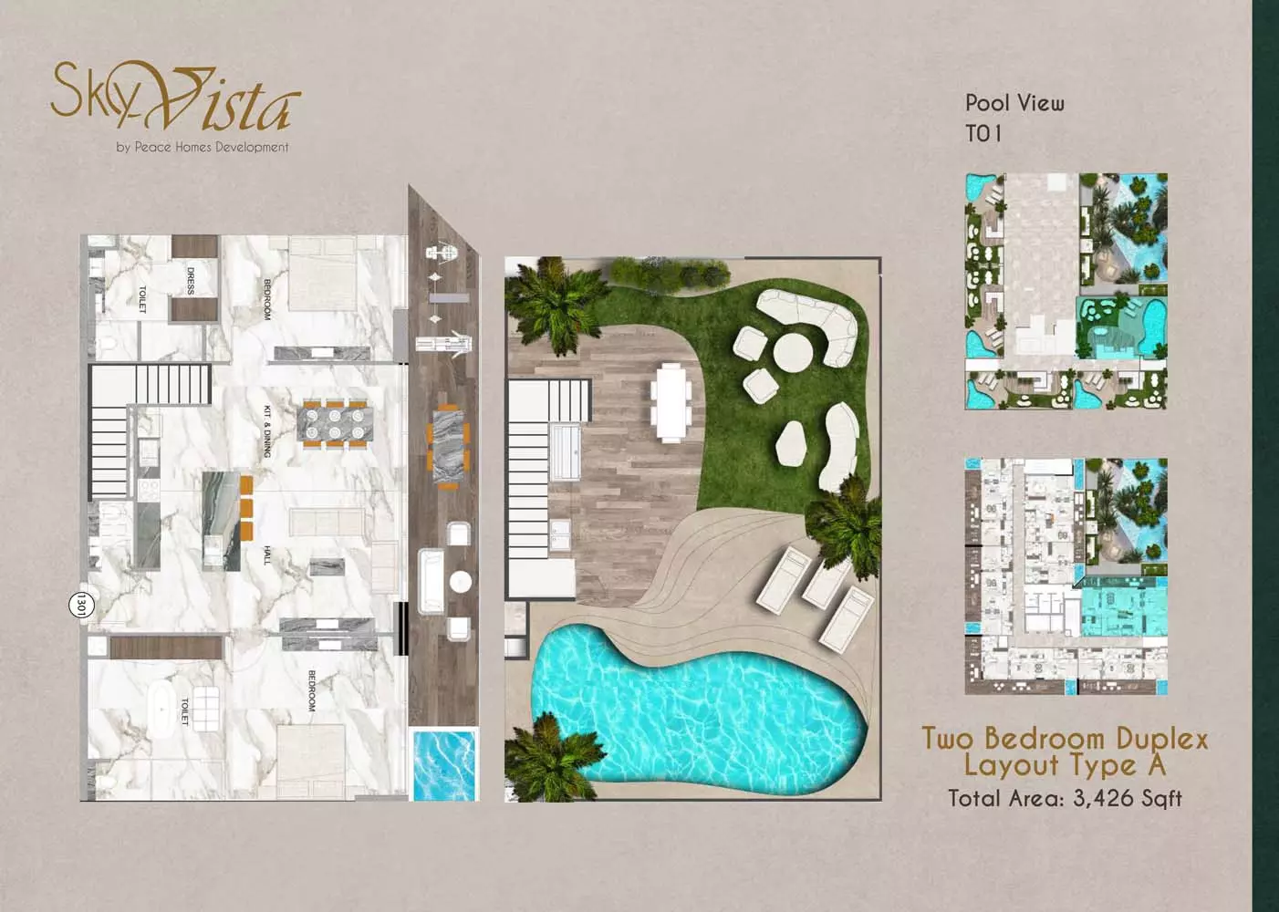 Sky Vista is developed by Peace Homes Group, a trusted developer known for creating innovative and community-focused properties in Dubai.