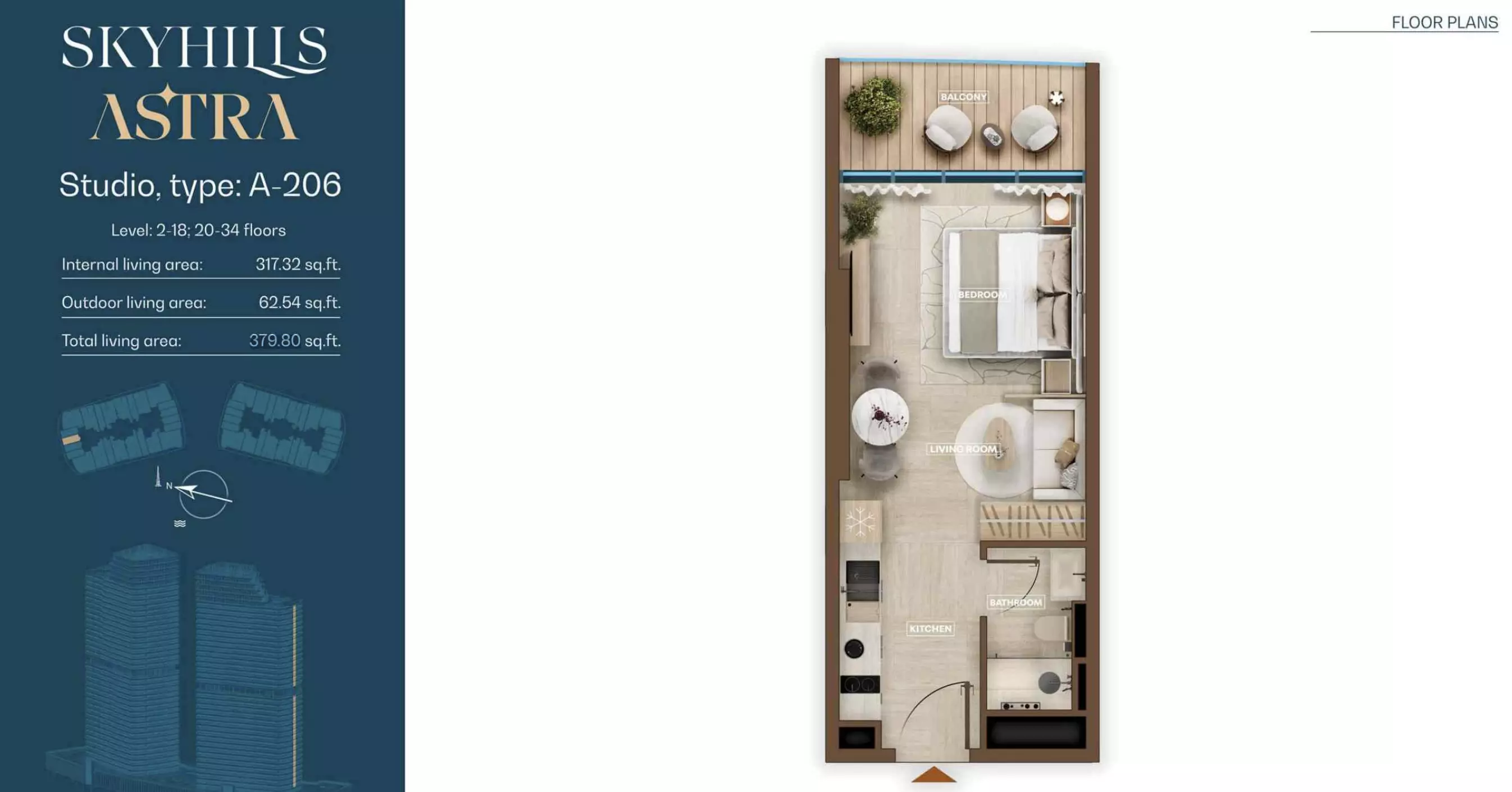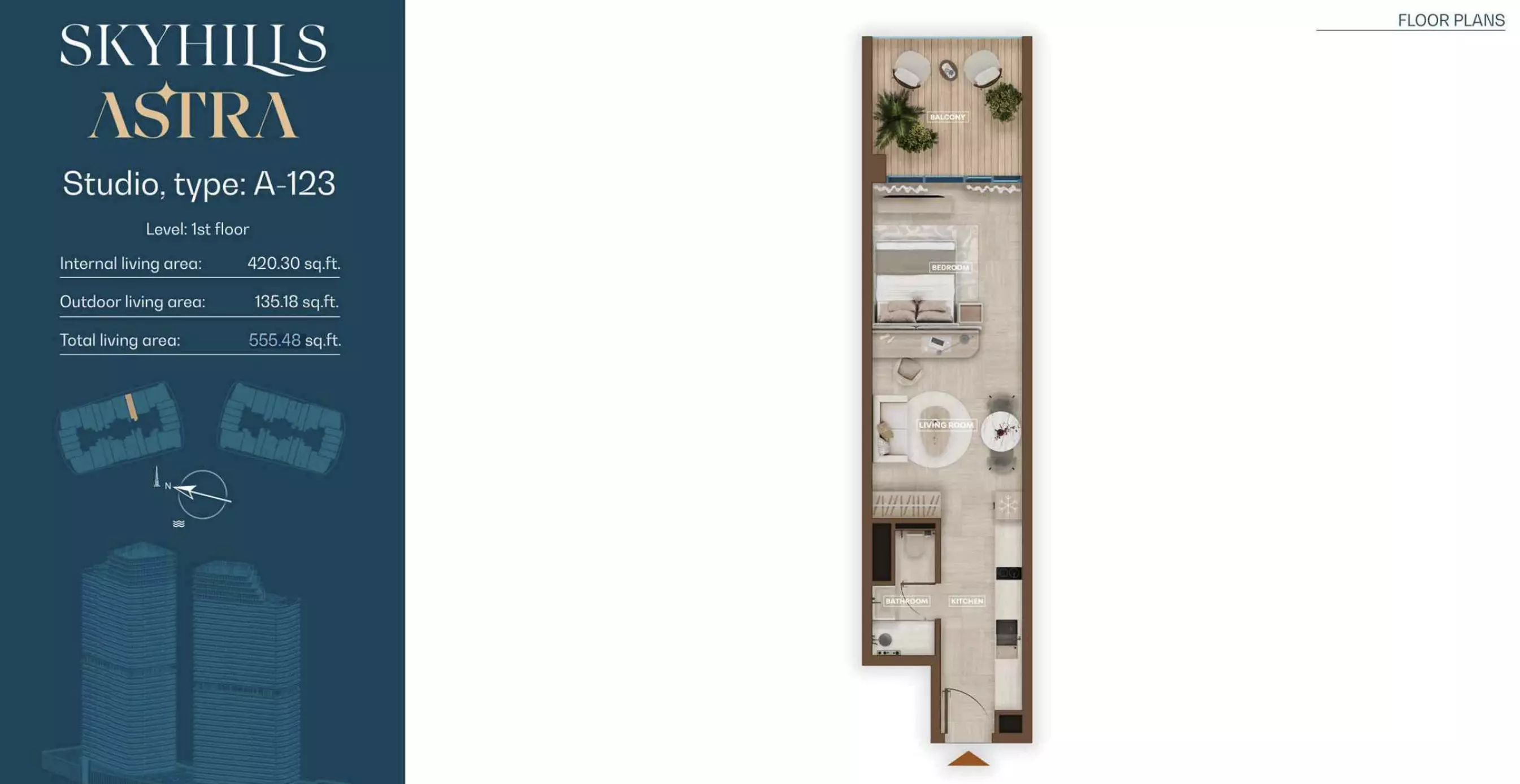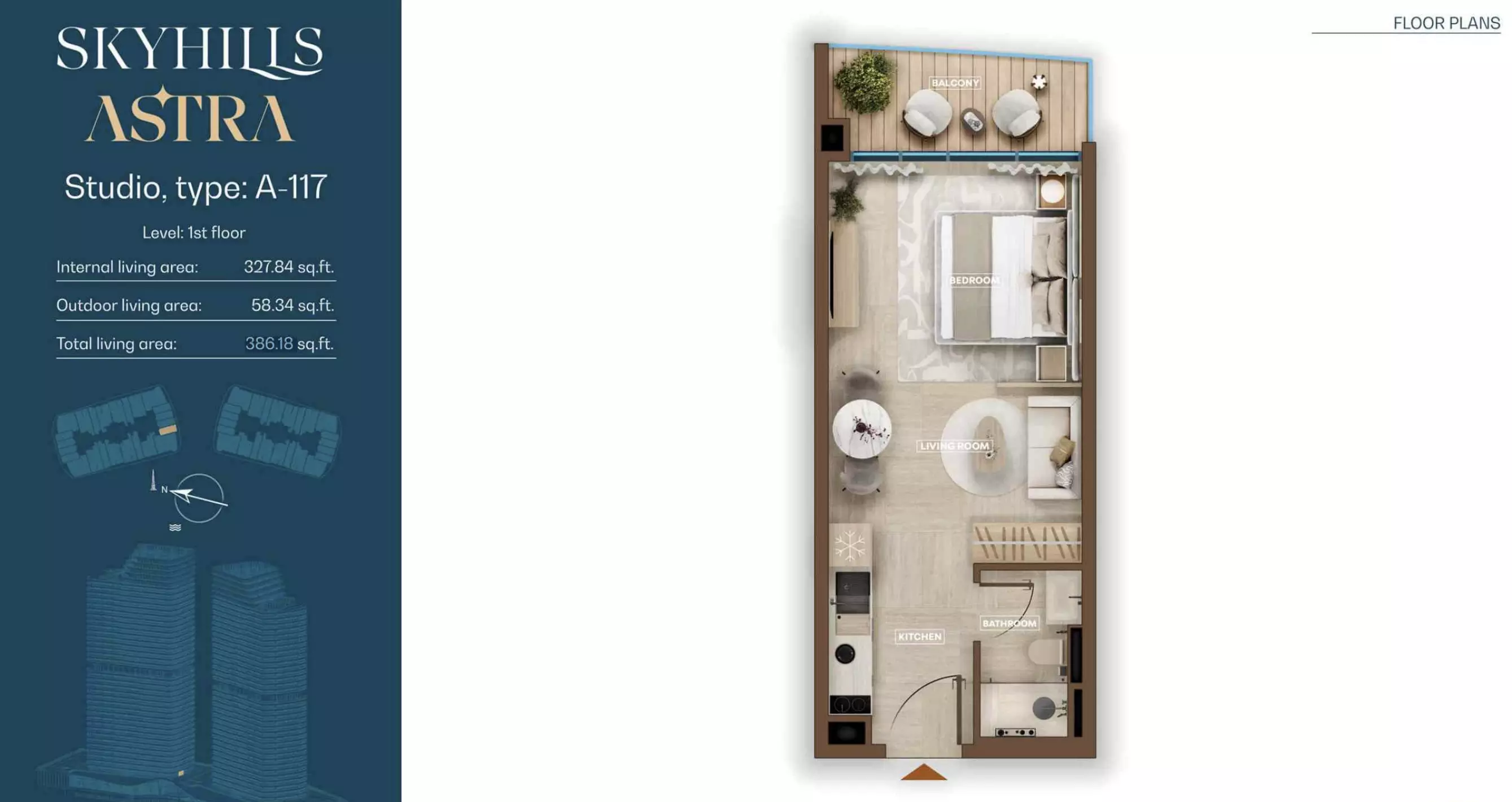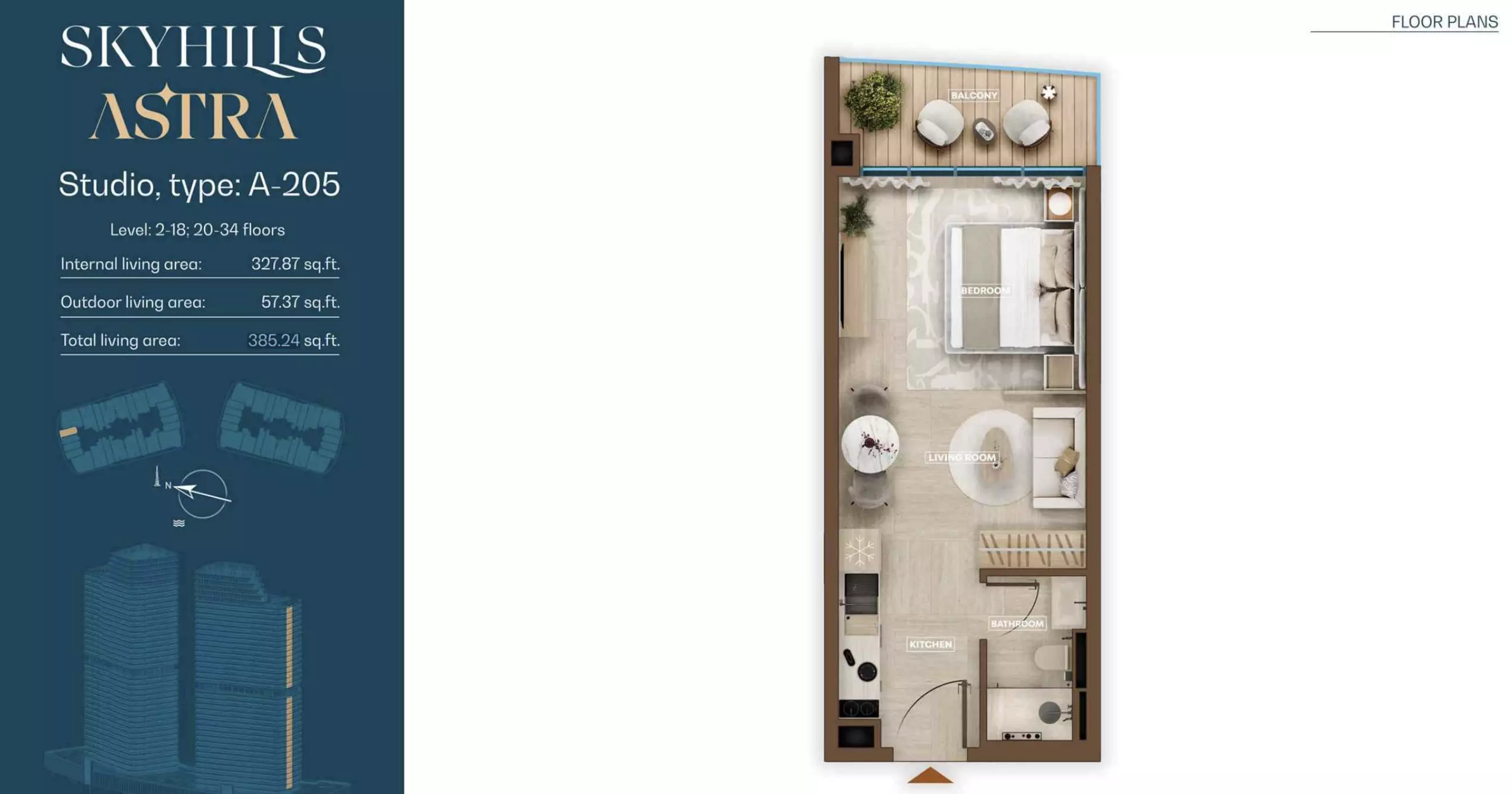 Skyhills Astra is a freehold development, allowing both UAE nationals and expatriates to own property in the community.