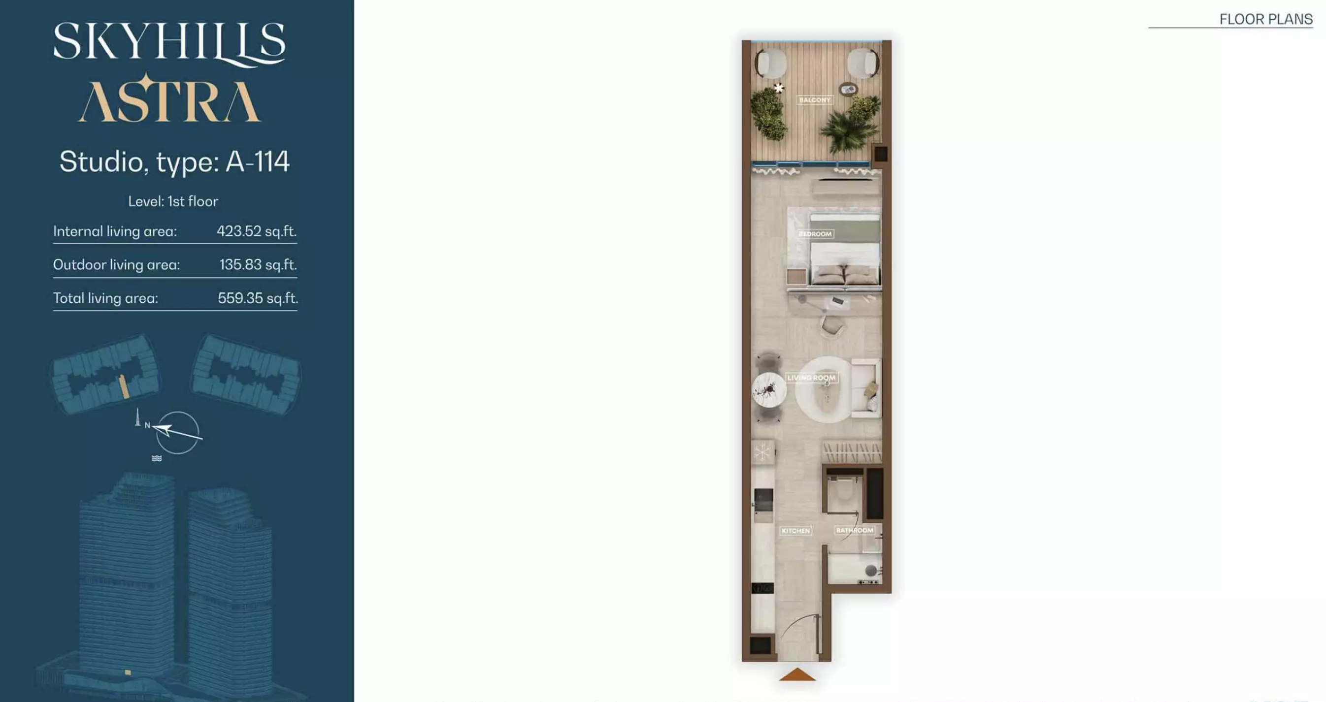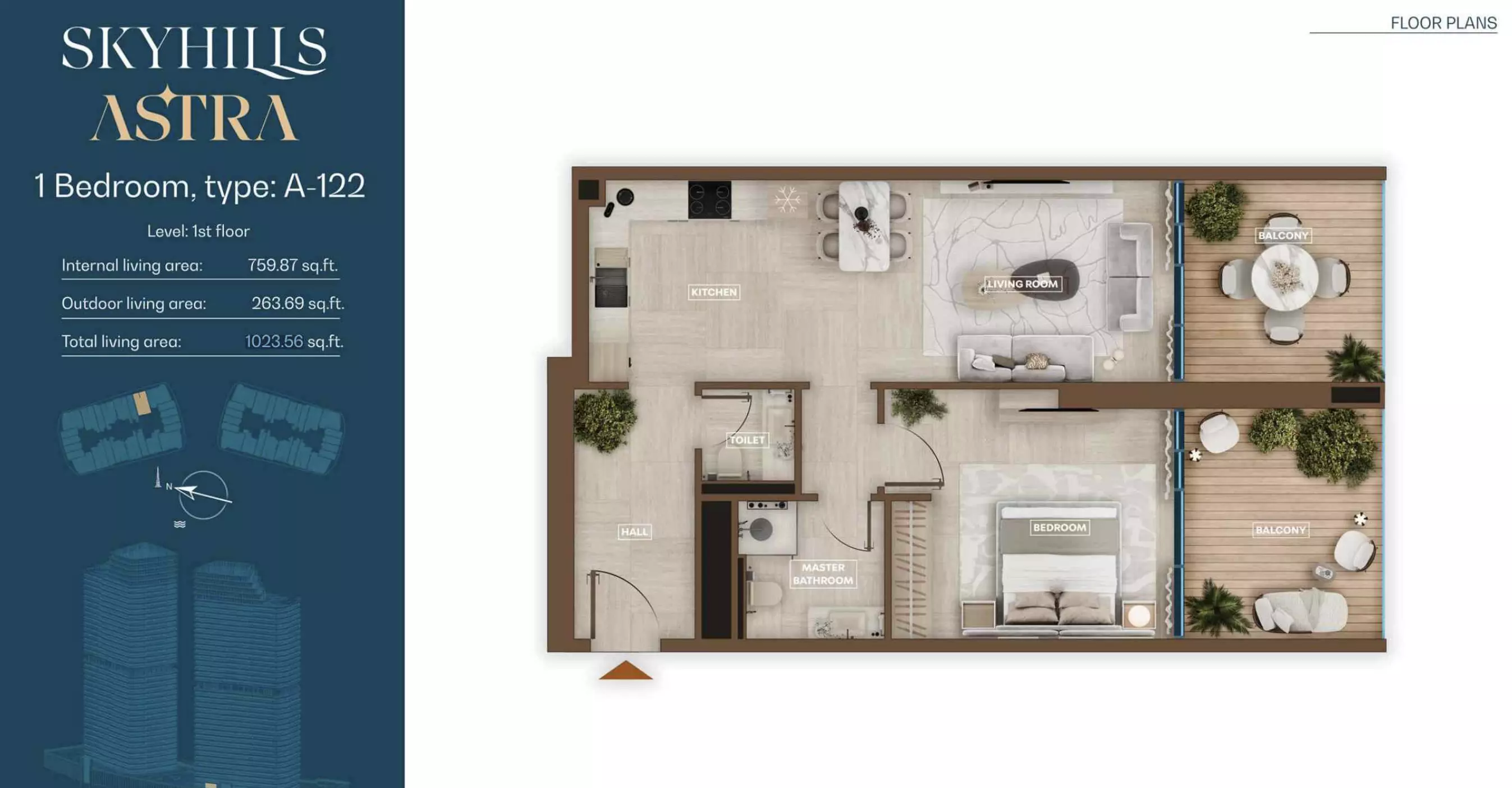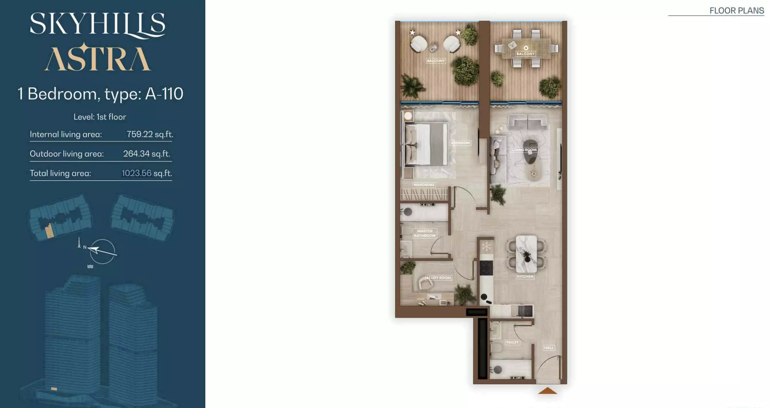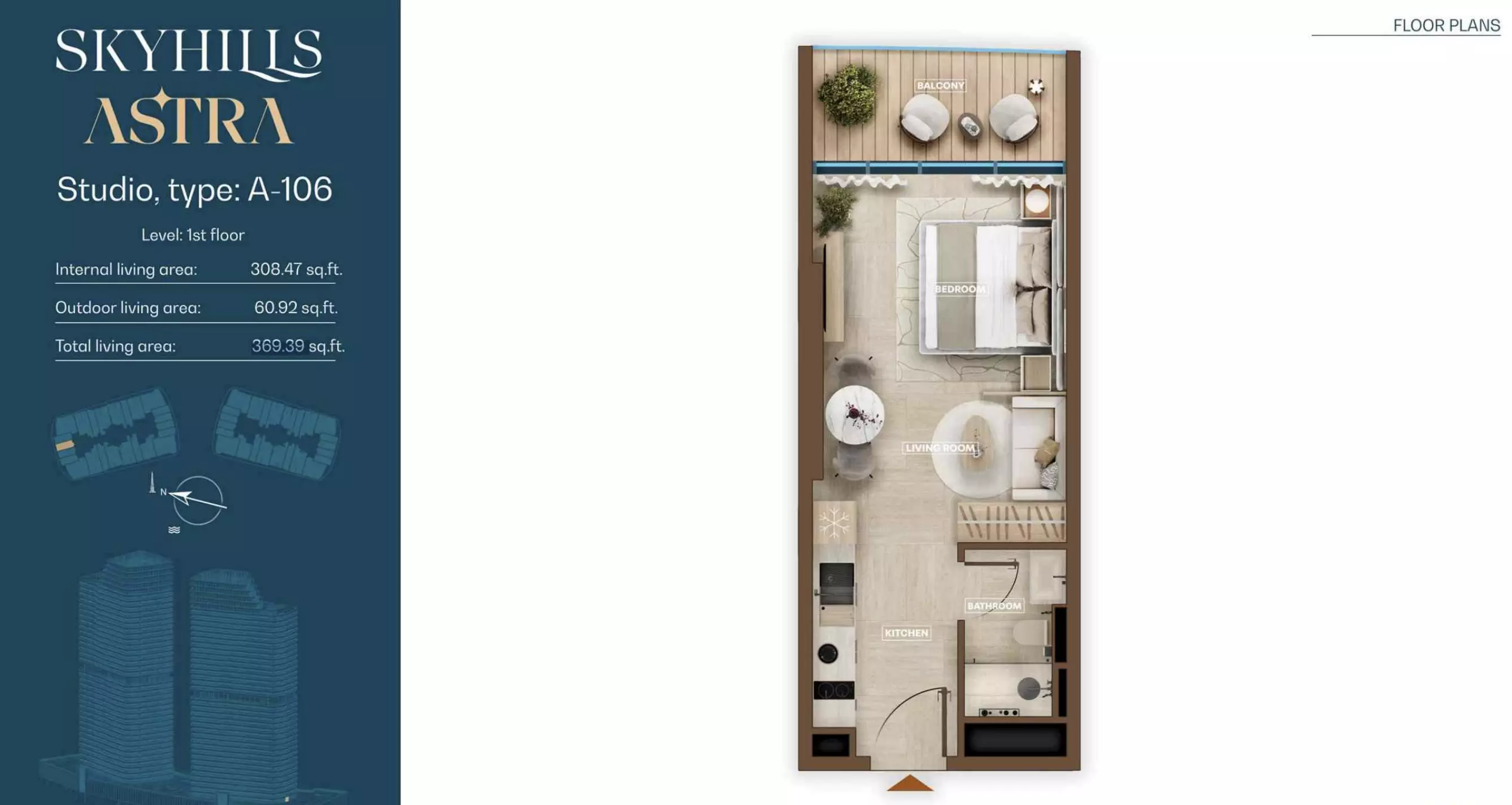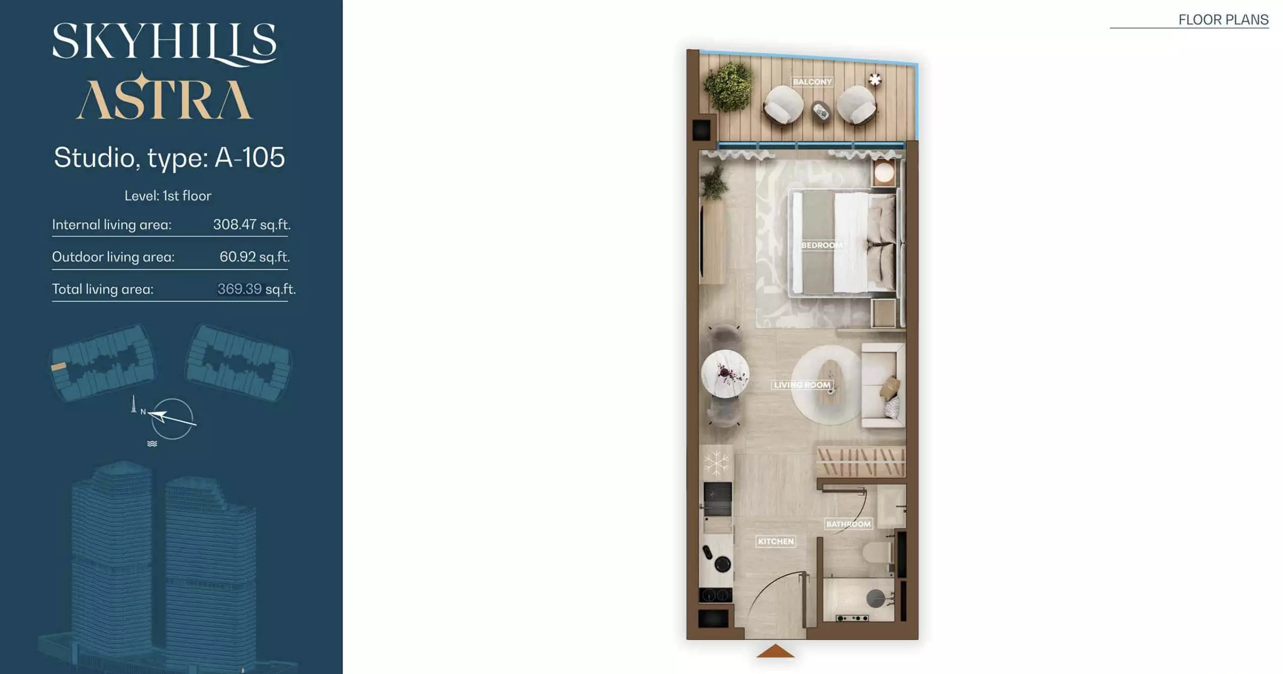 Skyhills Astra offers a range of residential units designed to accommodate different living preferences. The available options include studio apartments, one-bedroom apartments, two-bedroom duplexes, and three-bedroom duplexes. • Studio Apartments: Sizes range from 369 to 559 sq. ft. • 1-Bedroom Apartments: Sizes range from 855 to 1,206 sq. ft. • 2-Bedroom Duplexes: 965 sq. ft. • 3-Bedroom Duplexes: 1,863 sq. ft. Pricing details are subject to availability and market conditions. For the latest prices and payment plans, it is recommended to contact the developer or authorized real estate agents.