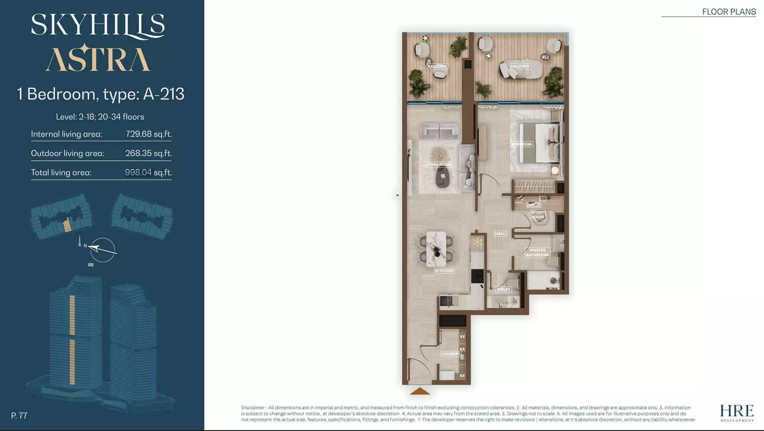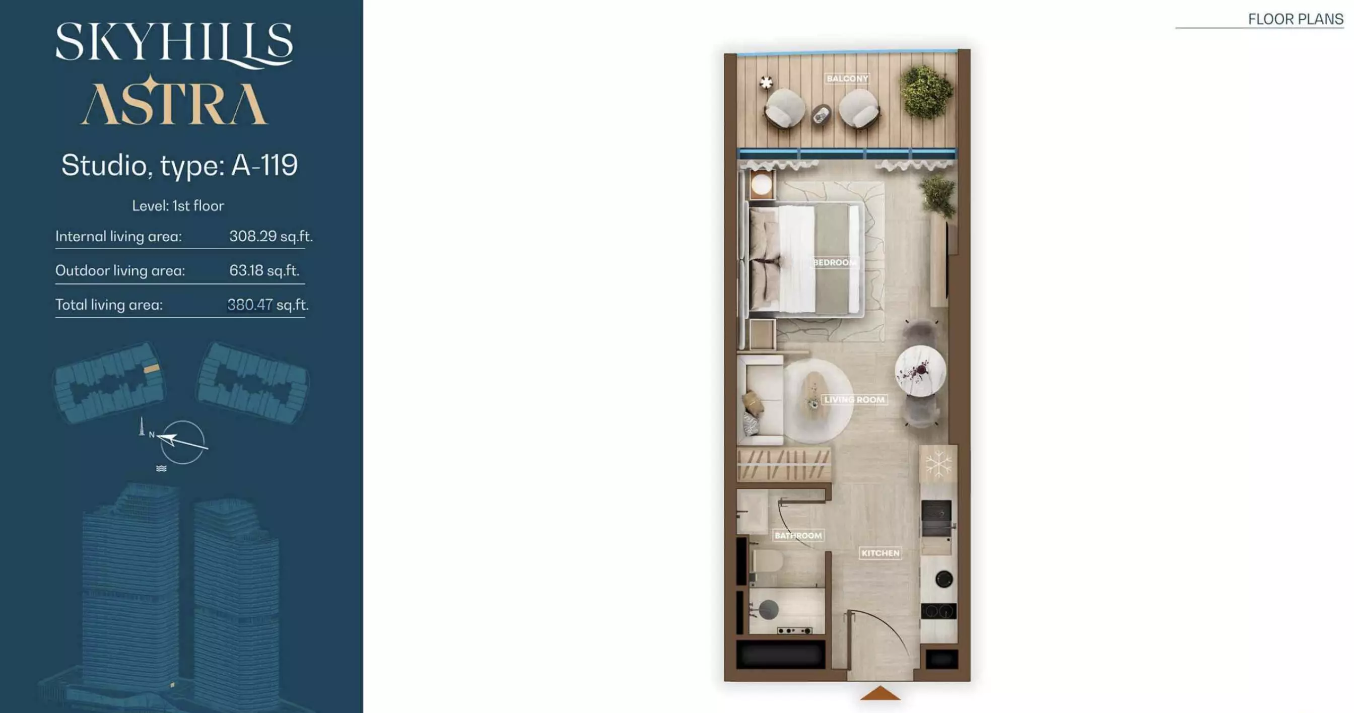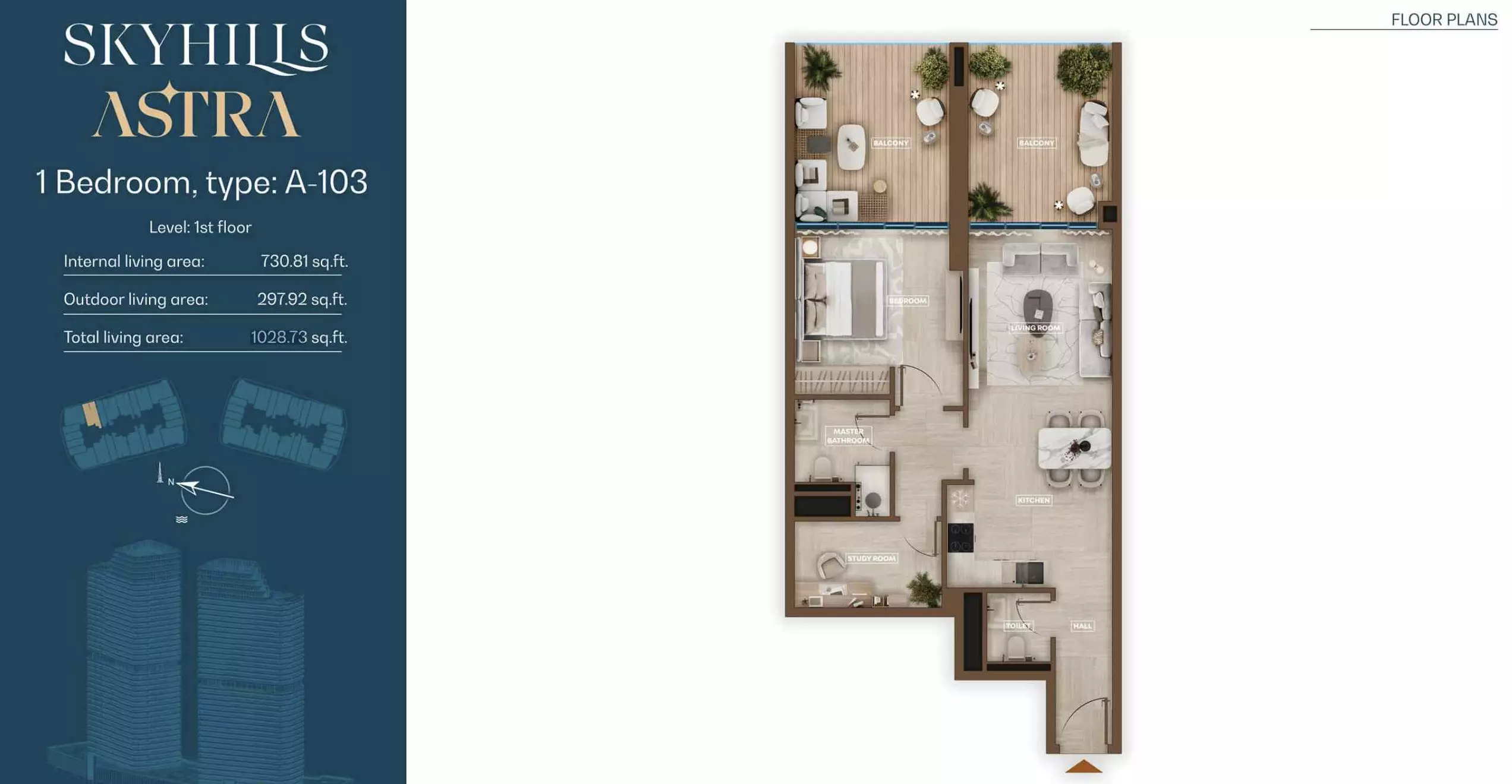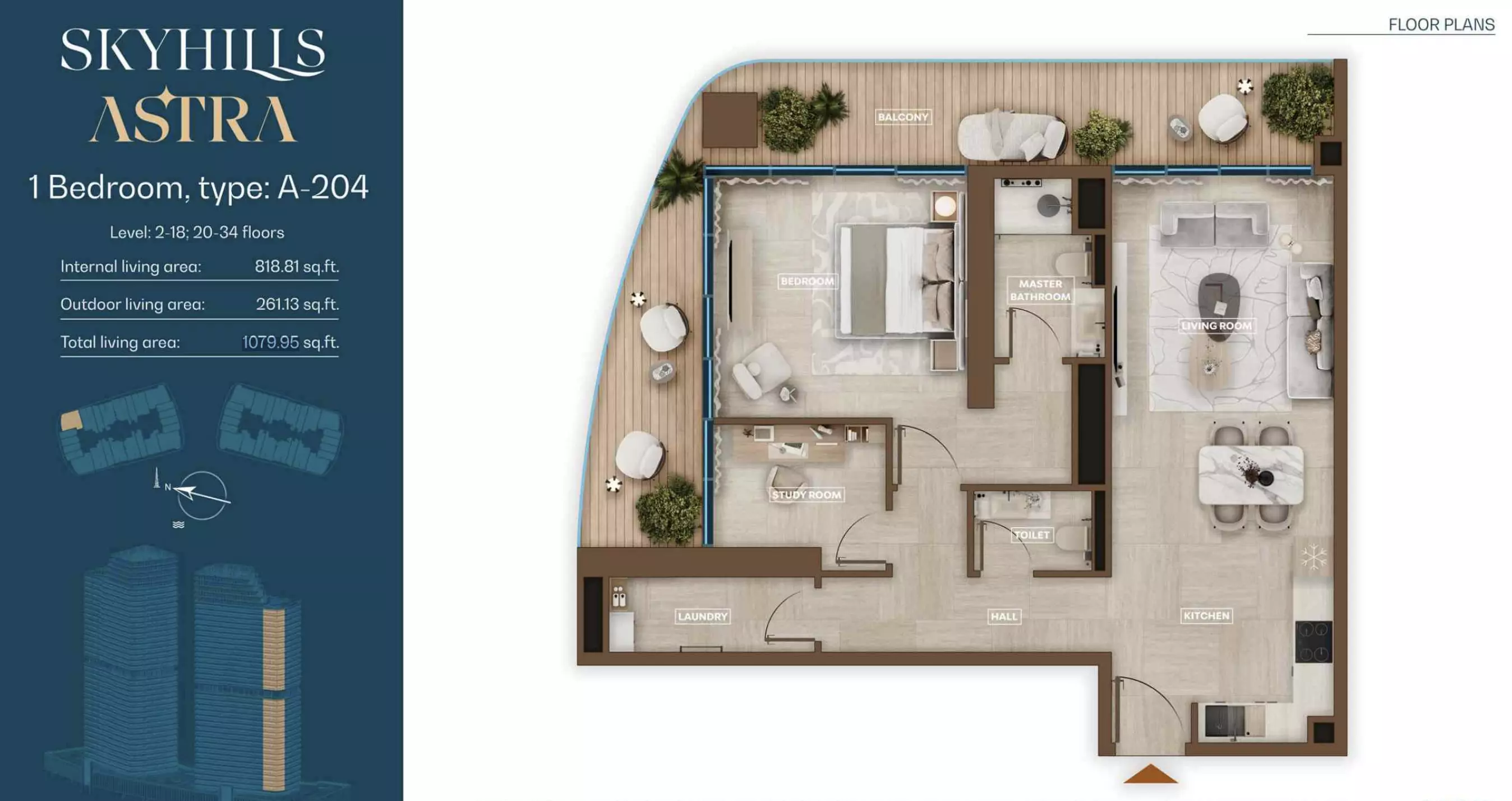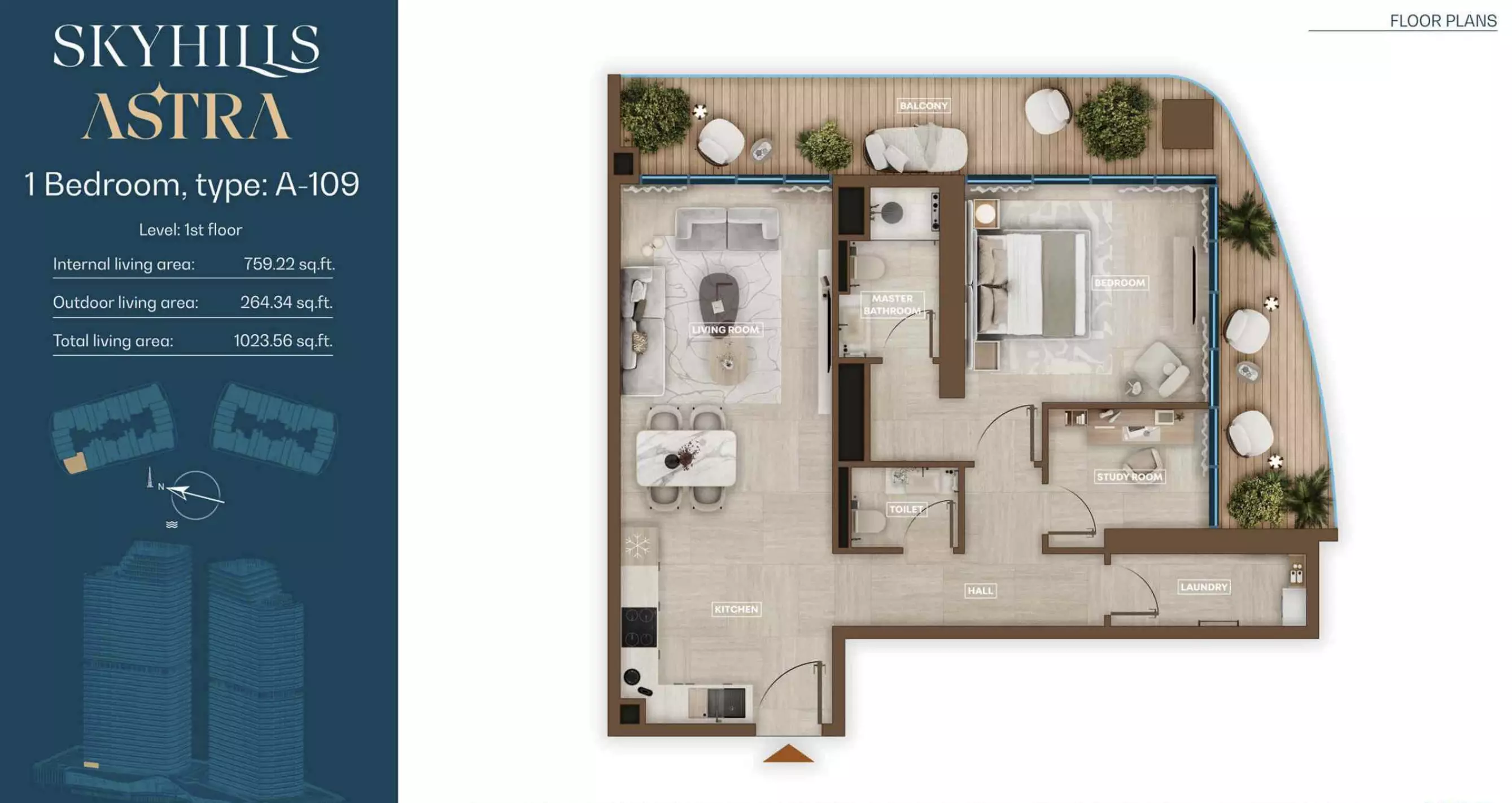 Skyhills Astra offers a range of residential units designed to accommodate different living preferences. The available options include studio apartments, one-bedroom apartments, two-bedroom duplexes, and three-bedroom duplexes. • Studio Apartments: Sizes range from 369 to 559 sq. ft. • 1-Bedroom Apartments: Sizes range from 855 to 1,206 sq. ft. • 2-Bedroom Duplexes: 965 sq. ft. • 3-Bedroom Duplexes: 1,863 sq. ft. Pricing details are subject to availability and market conditions. For the latest prices and payment plans, it is recommended to contact the developer or authorized real estate agents.