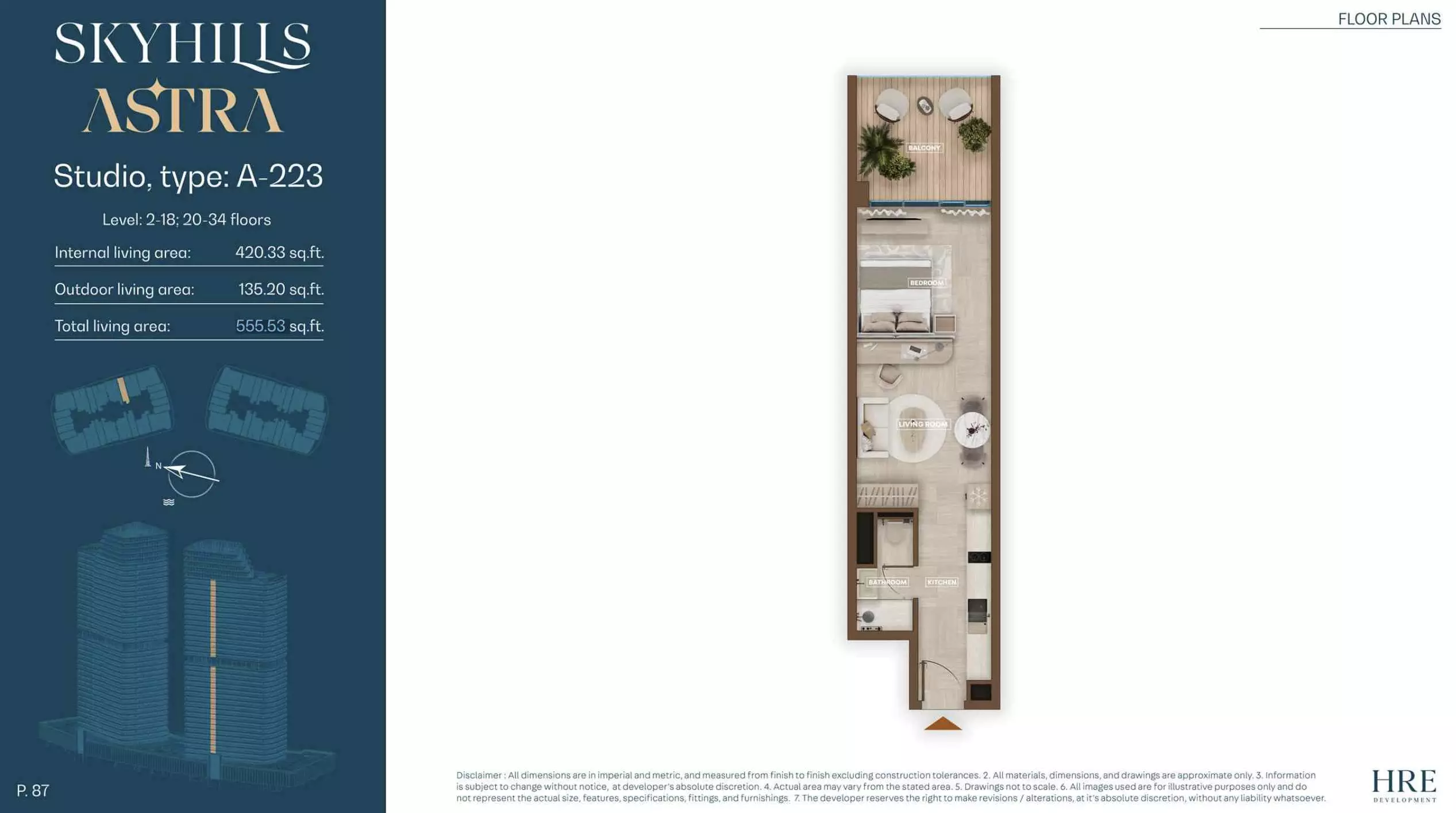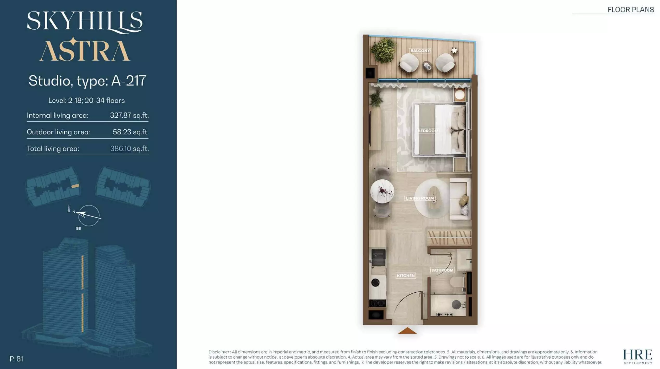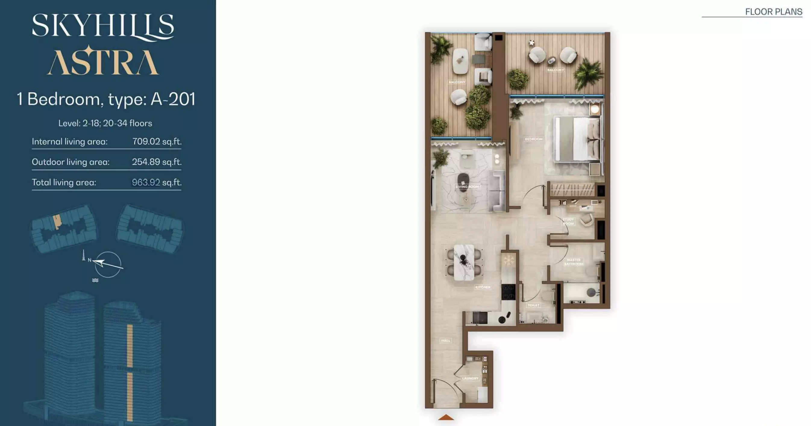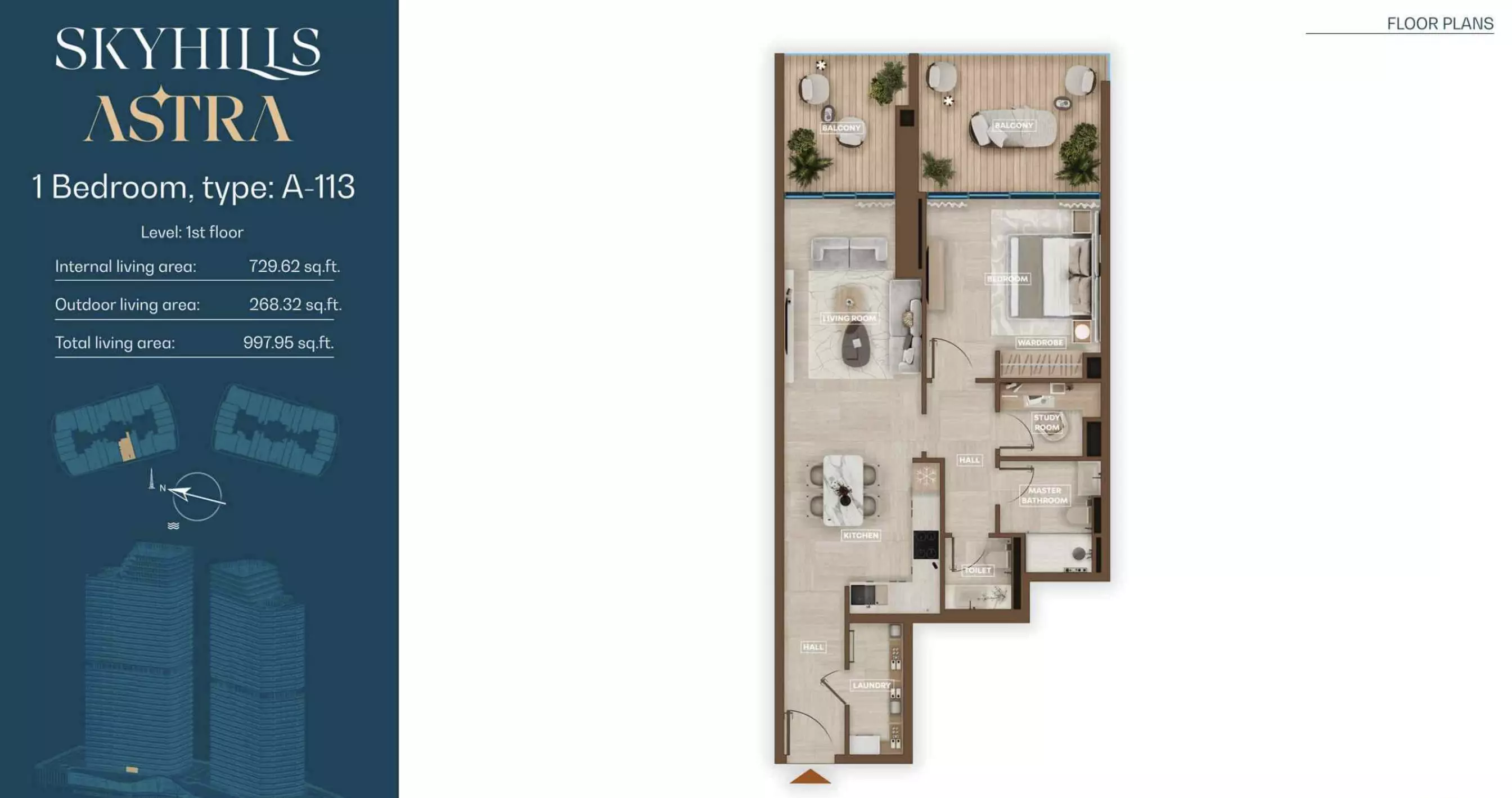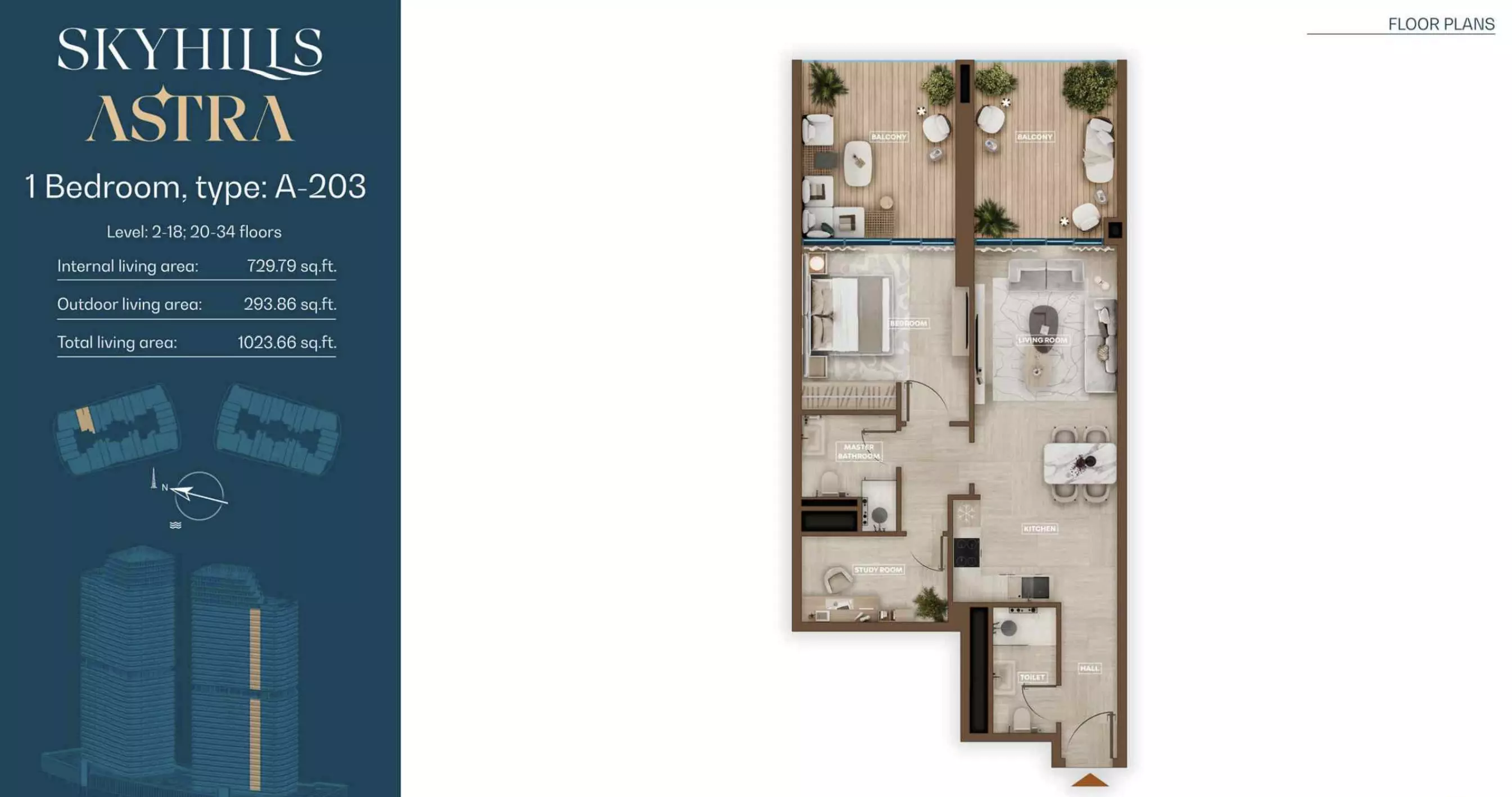 Skyhills Astra offers a range of residential units designed to accommodate different living preferences. The available options include studio apartments, one-bedroom apartments, two-bedroom duplexes, and three-bedroom duplexes. • Studio Apartments: Sizes range from 369 to 559 sq. ft. • 1-Bedroom Apartments: Sizes range from 855 to 1,206 sq. ft. • 2-Bedroom Duplexes: 965 sq. ft. • 3-Bedroom Duplexes: 1,863 sq. ft. Pricing details are subject to availability and market conditions. For the latest prices and payment plans, it is recommended to contact the developer or authorized real estate agents.