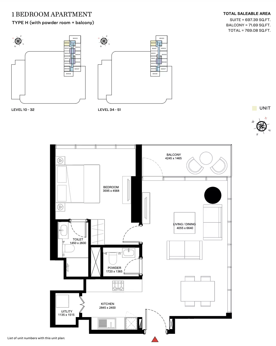 | Type H (With Powder Room + Balcony) | 769.00 | View |