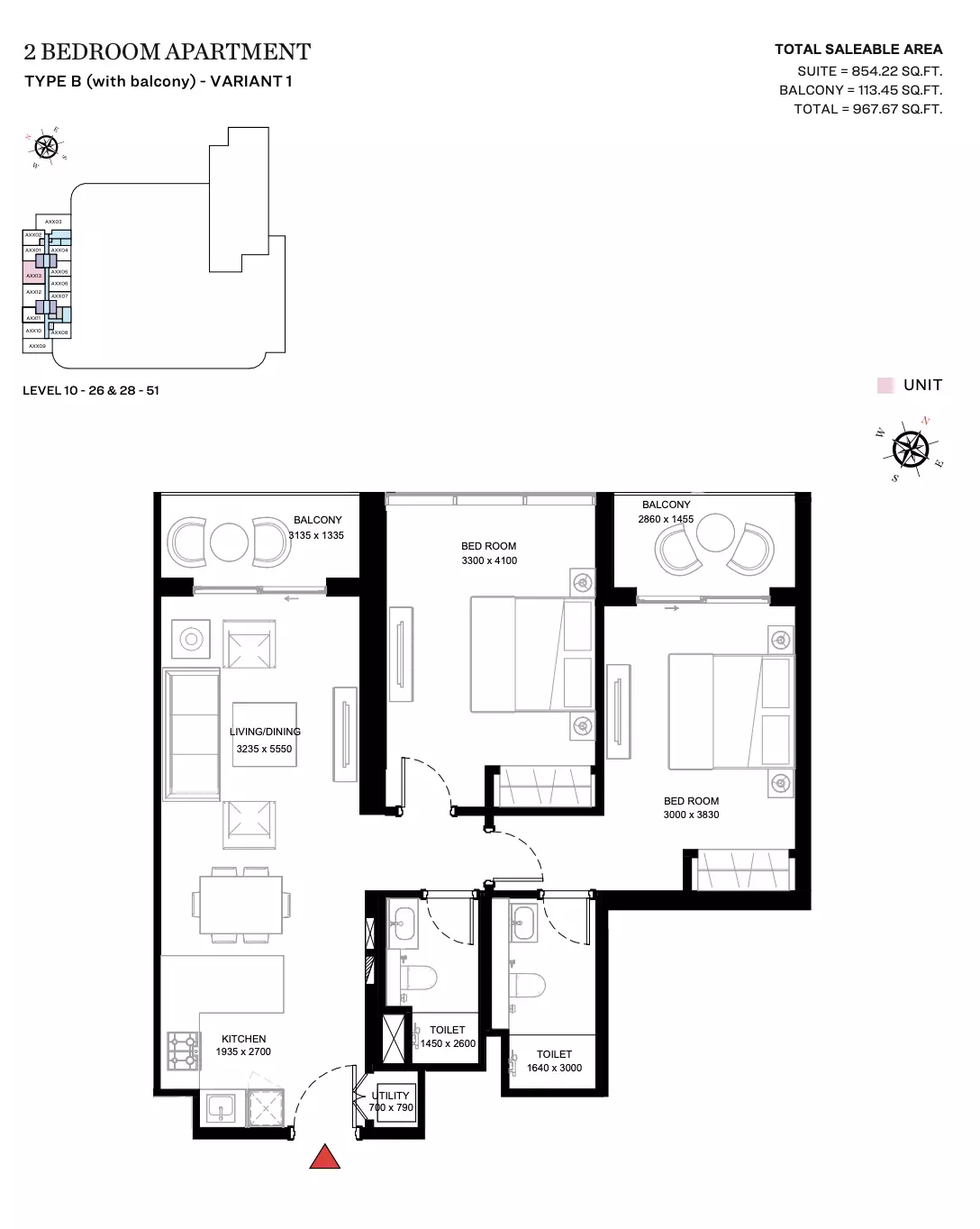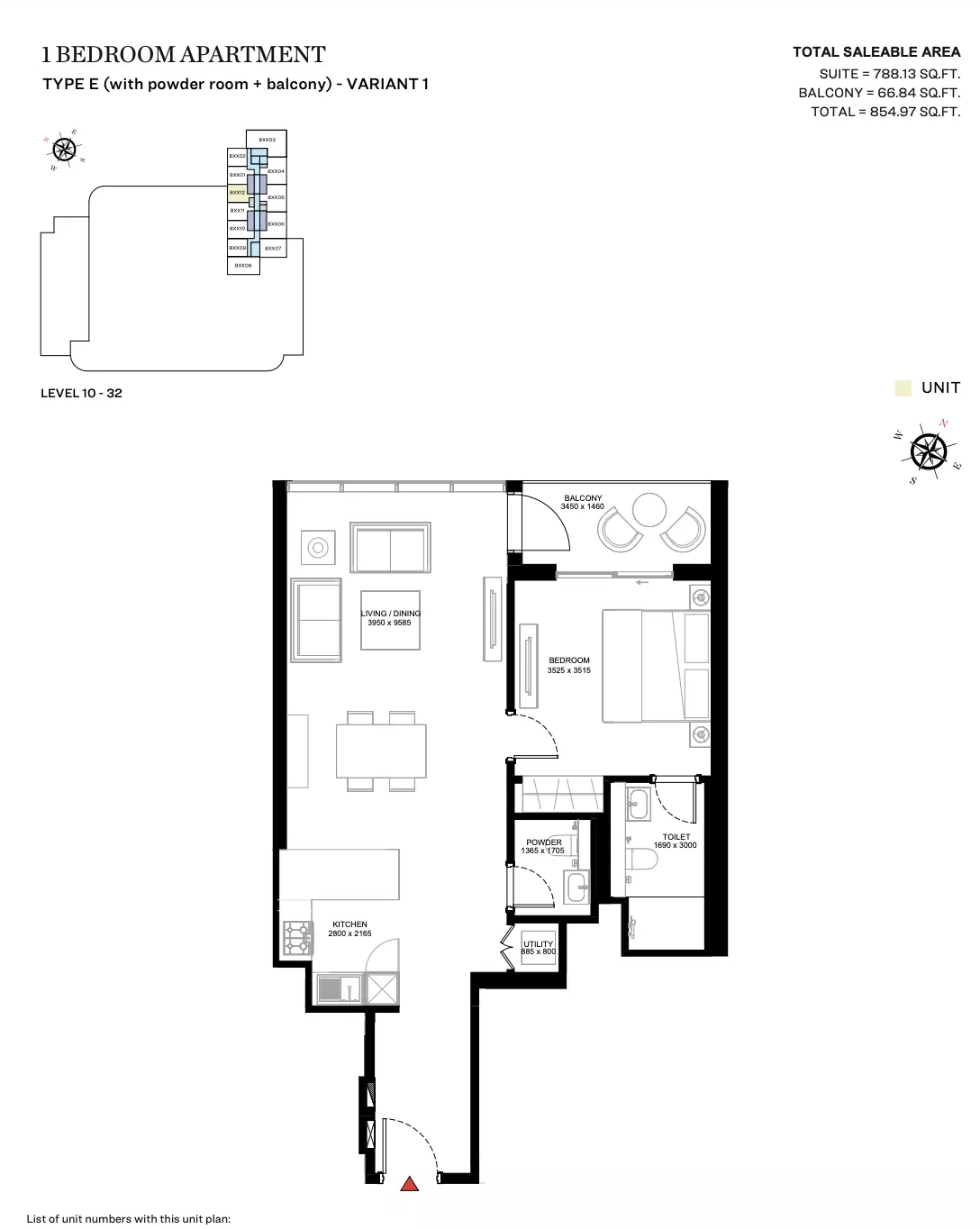 | Type E (With Powder Room + Balcony) - Variant 1 | 854.00 | View |