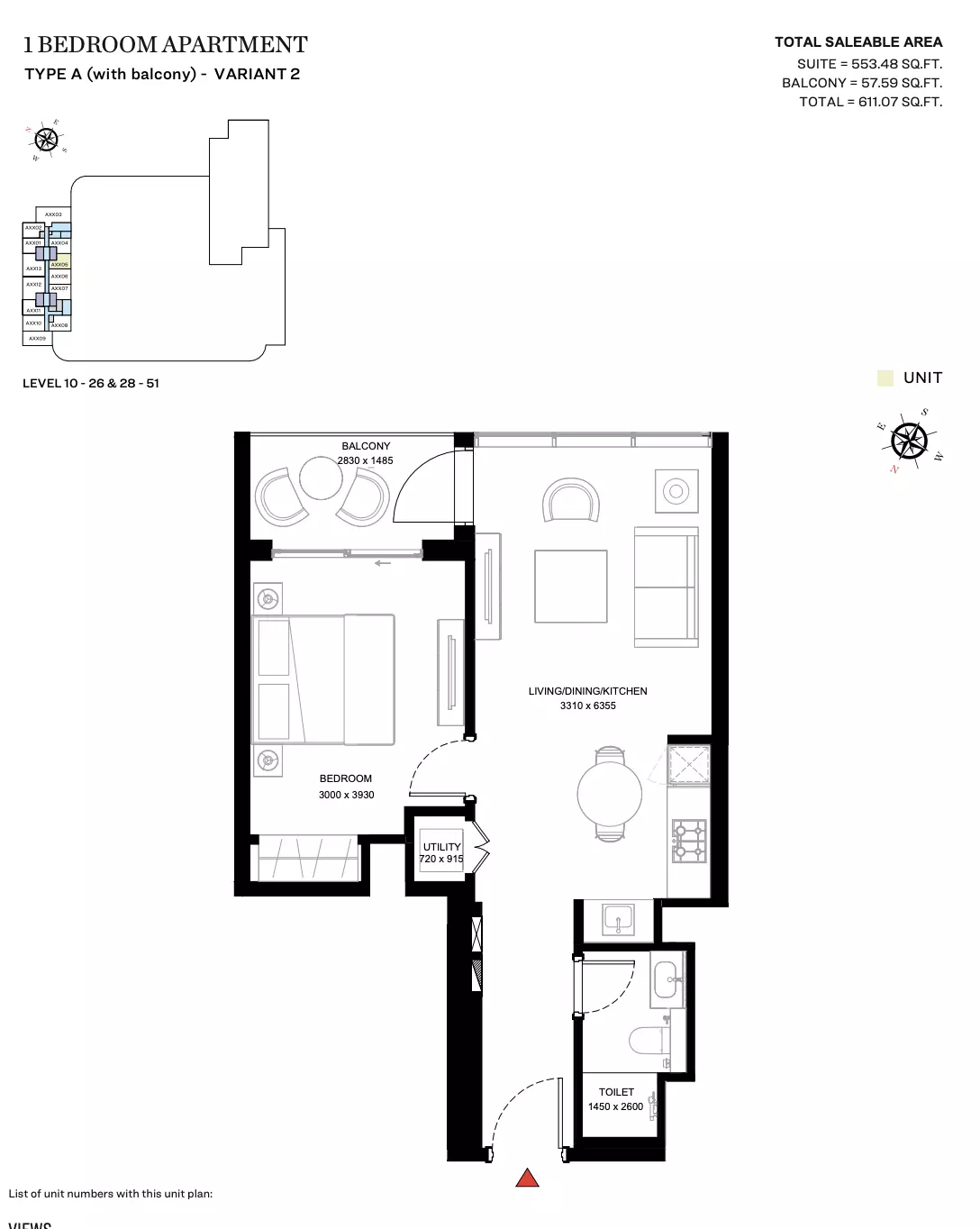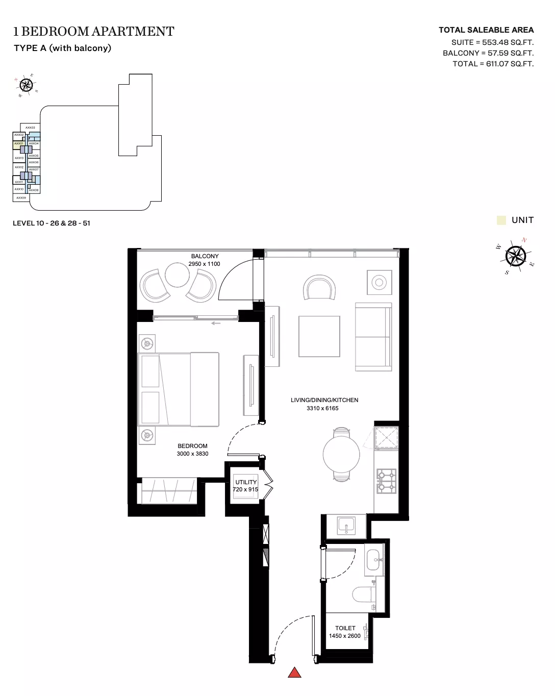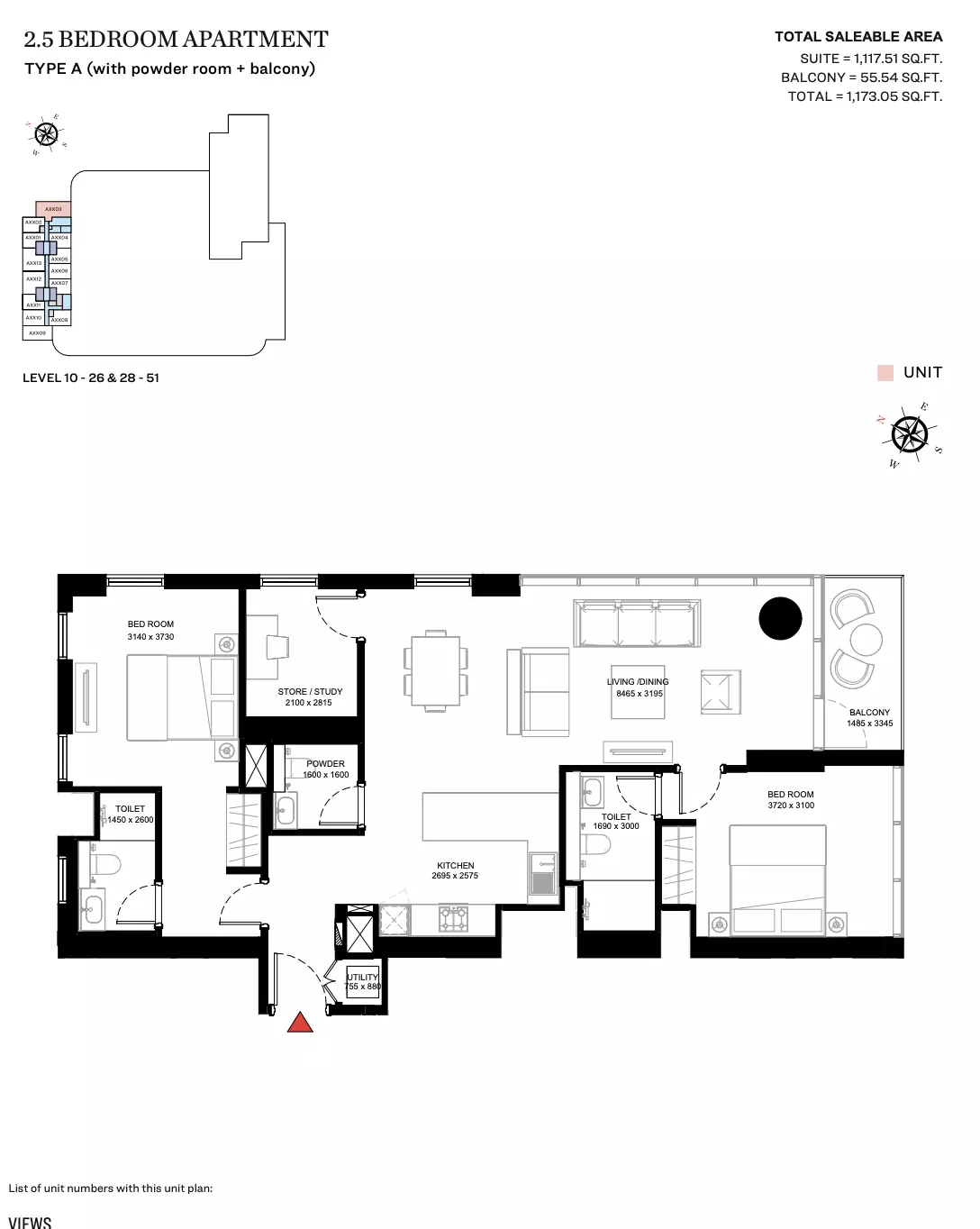 | Type A (With Powder Room + Balcony) | 1,173.00 | View |
