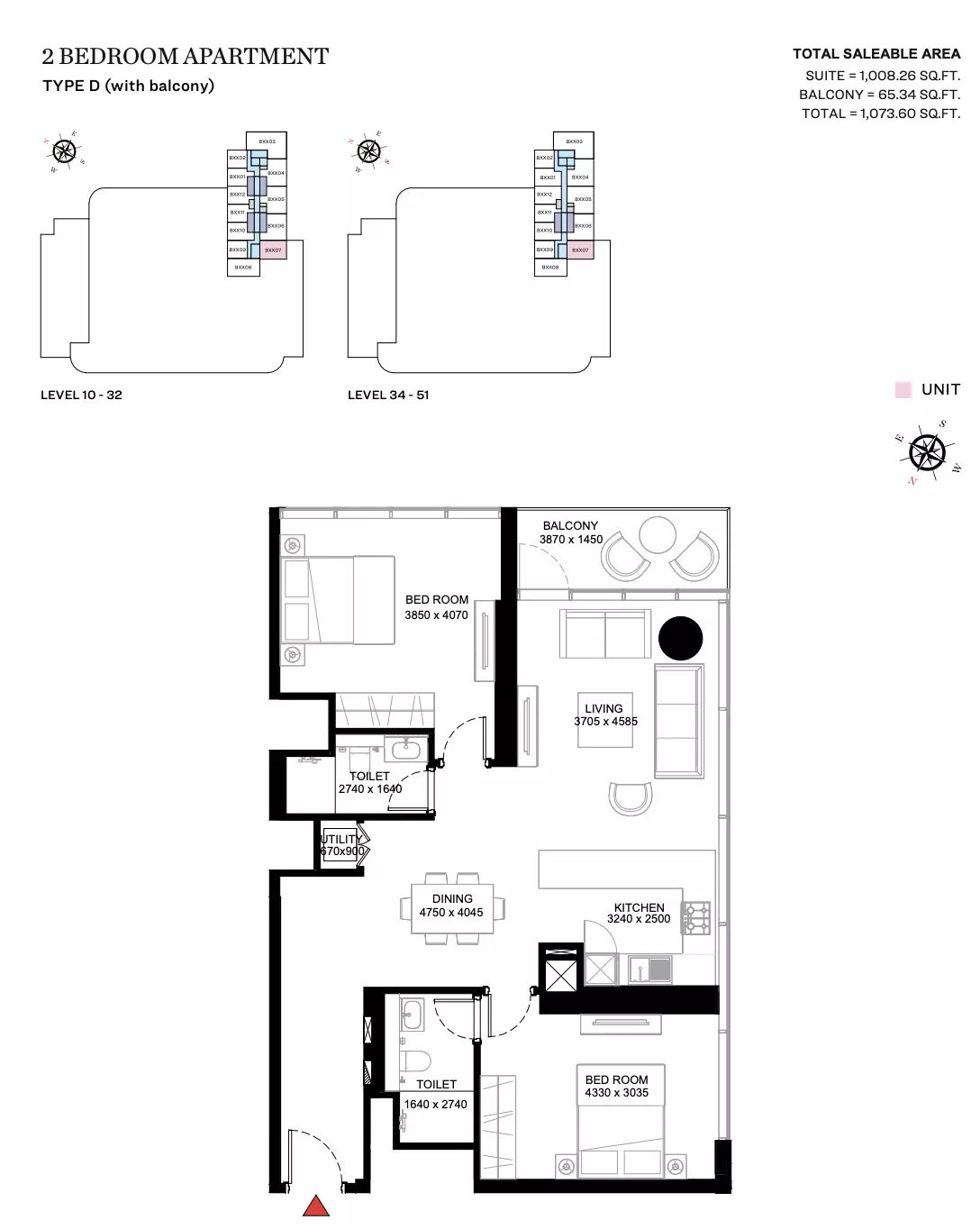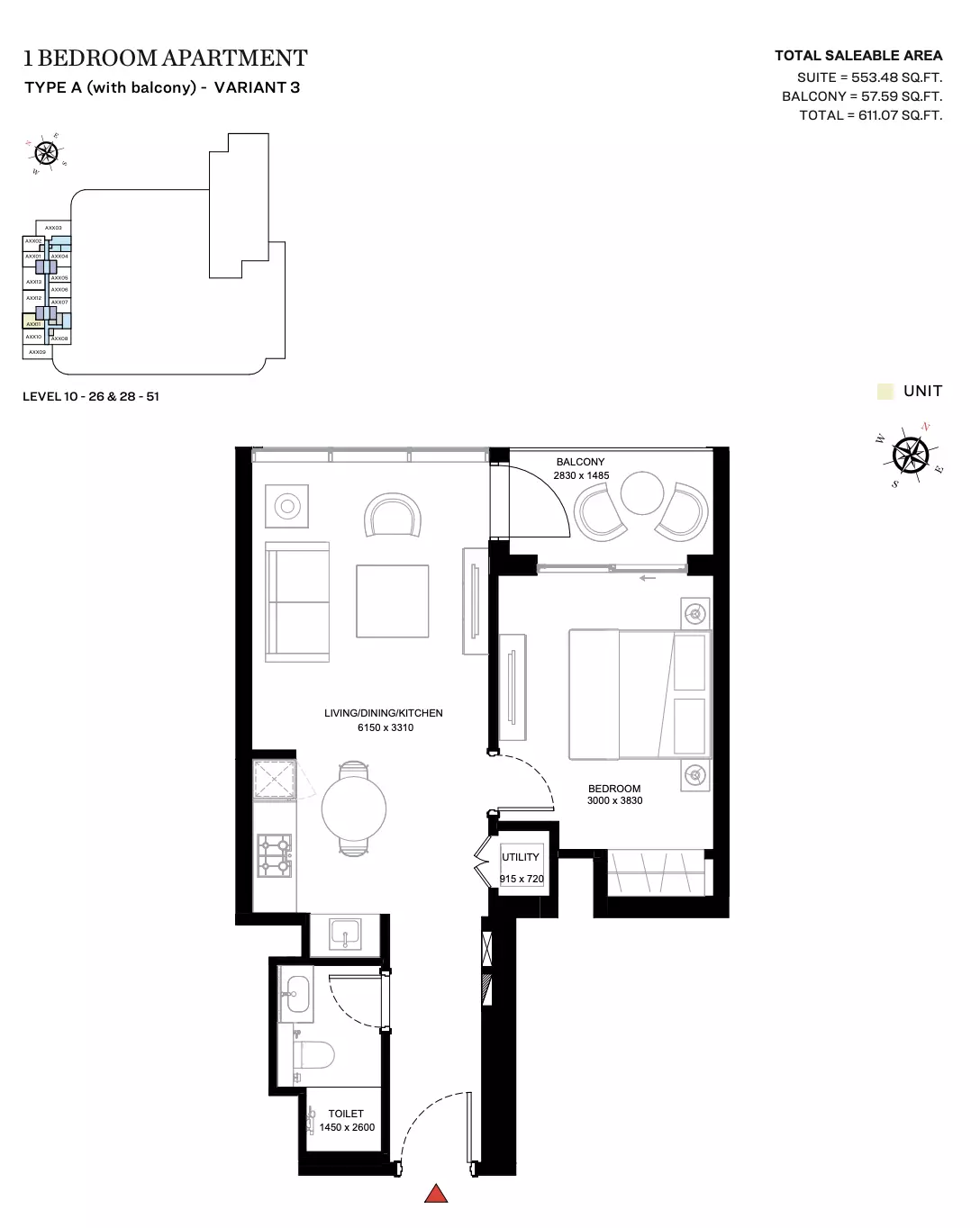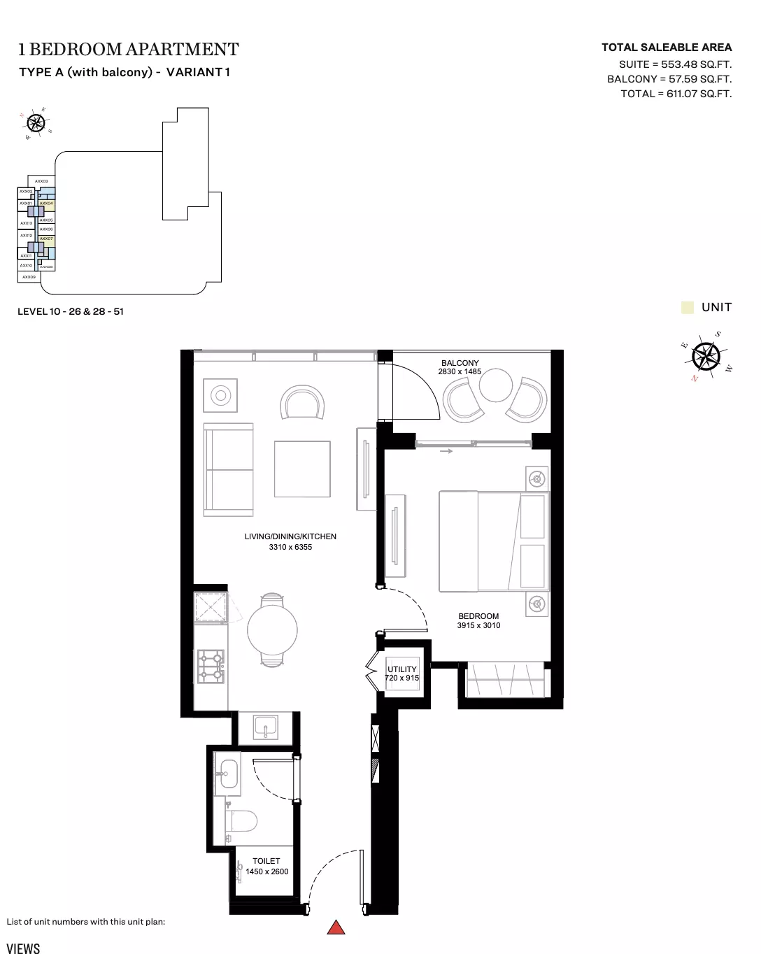 | Type A (With Powder Room + Balcony) | 1,173.00 | View |