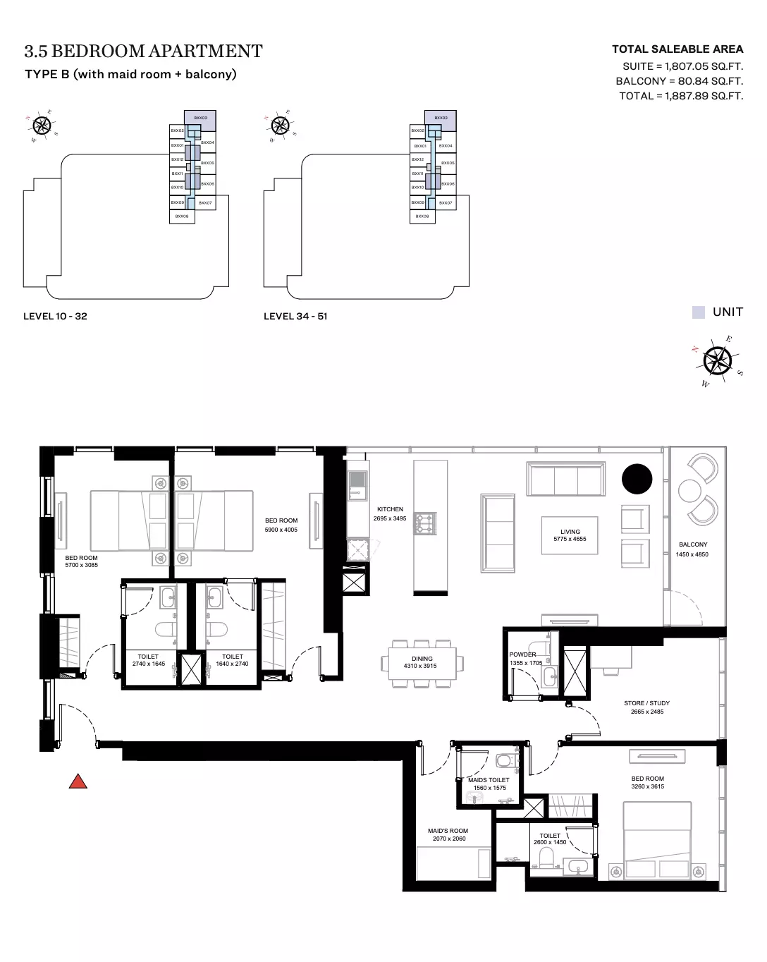 | Type B (With Maid Room + Balcony) | 1,887.00 | View |