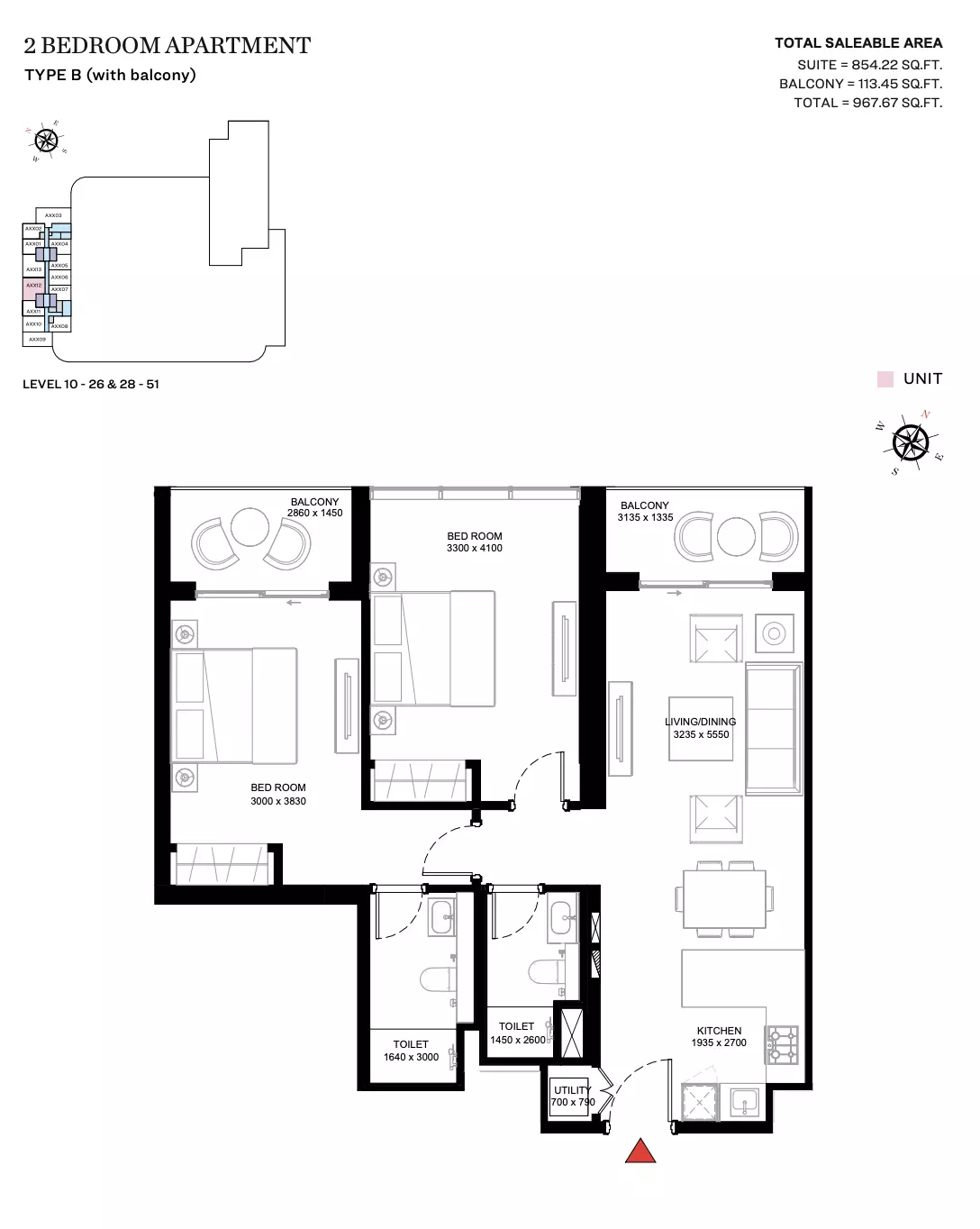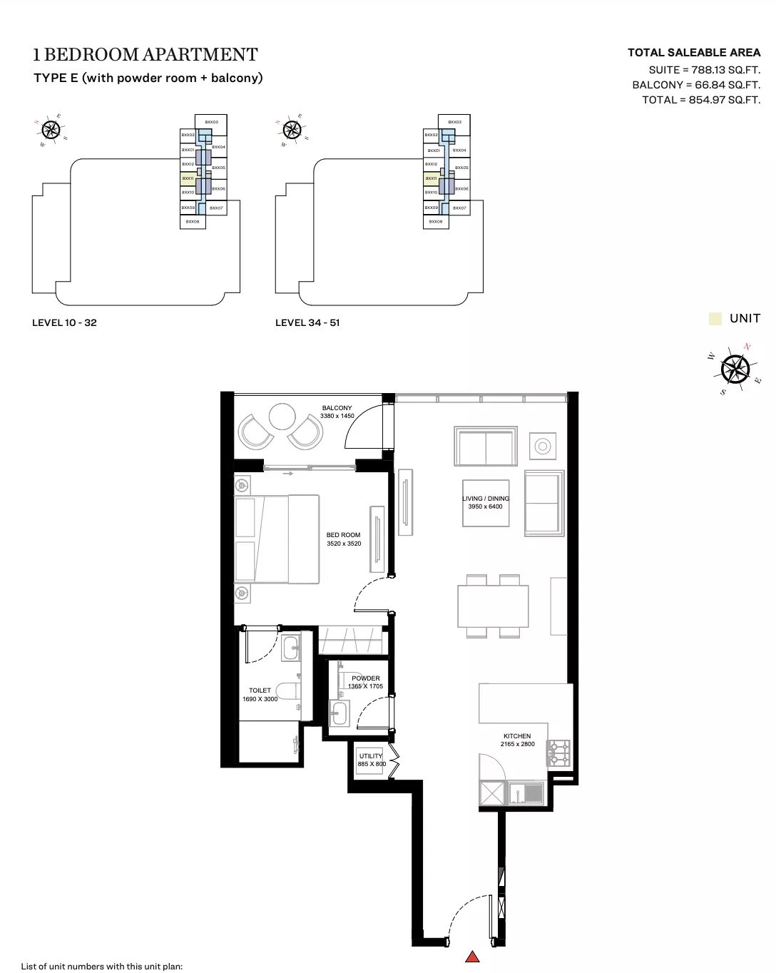 | Type E (With Powder Room + Balcony) | 854.00 | View |