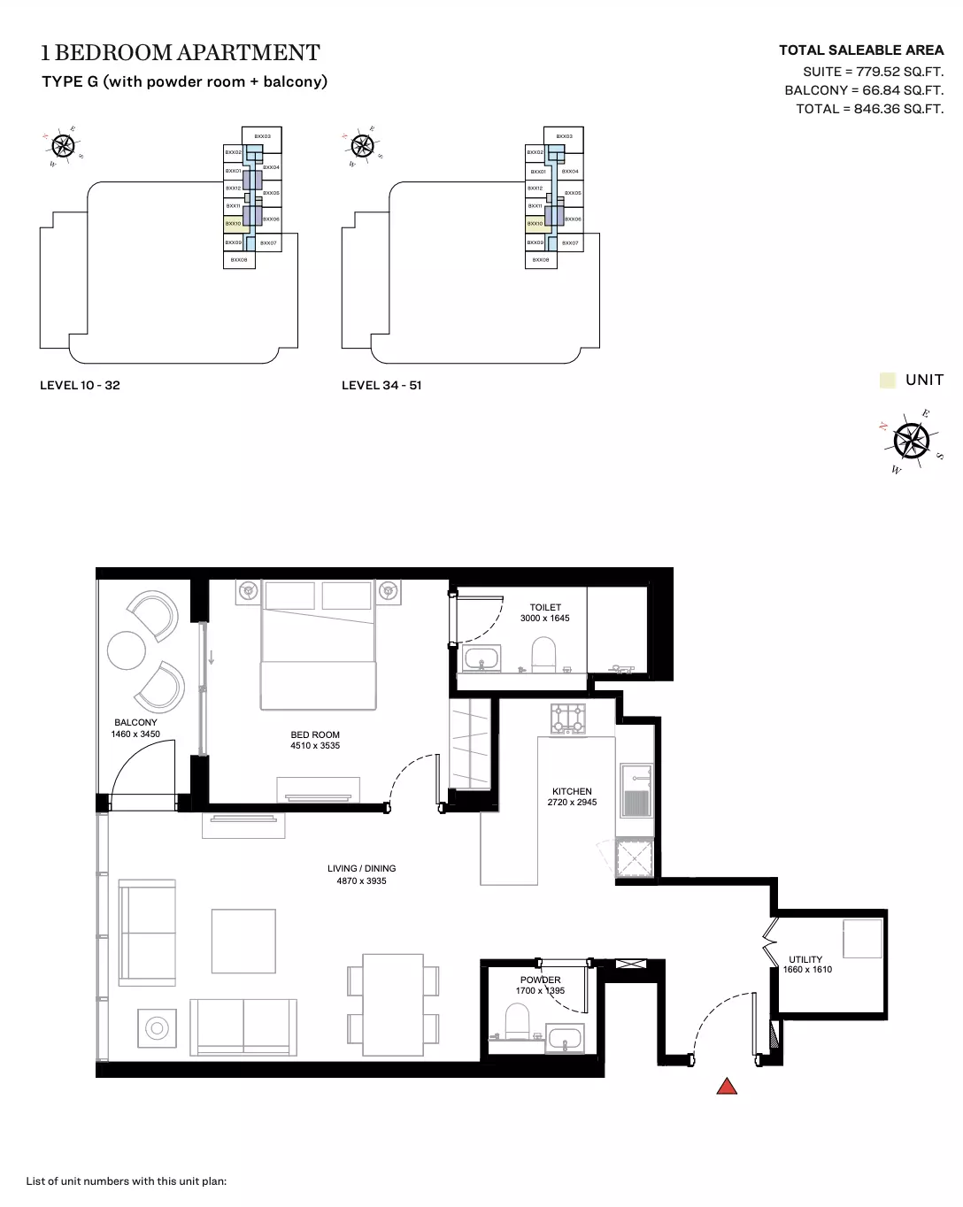 | Type G (With Powder Room + Balcony) | 846.00 | View |