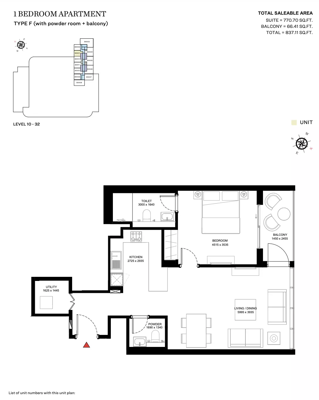 | Type F (With Powder Room + Balcony) | 837.00 | View |