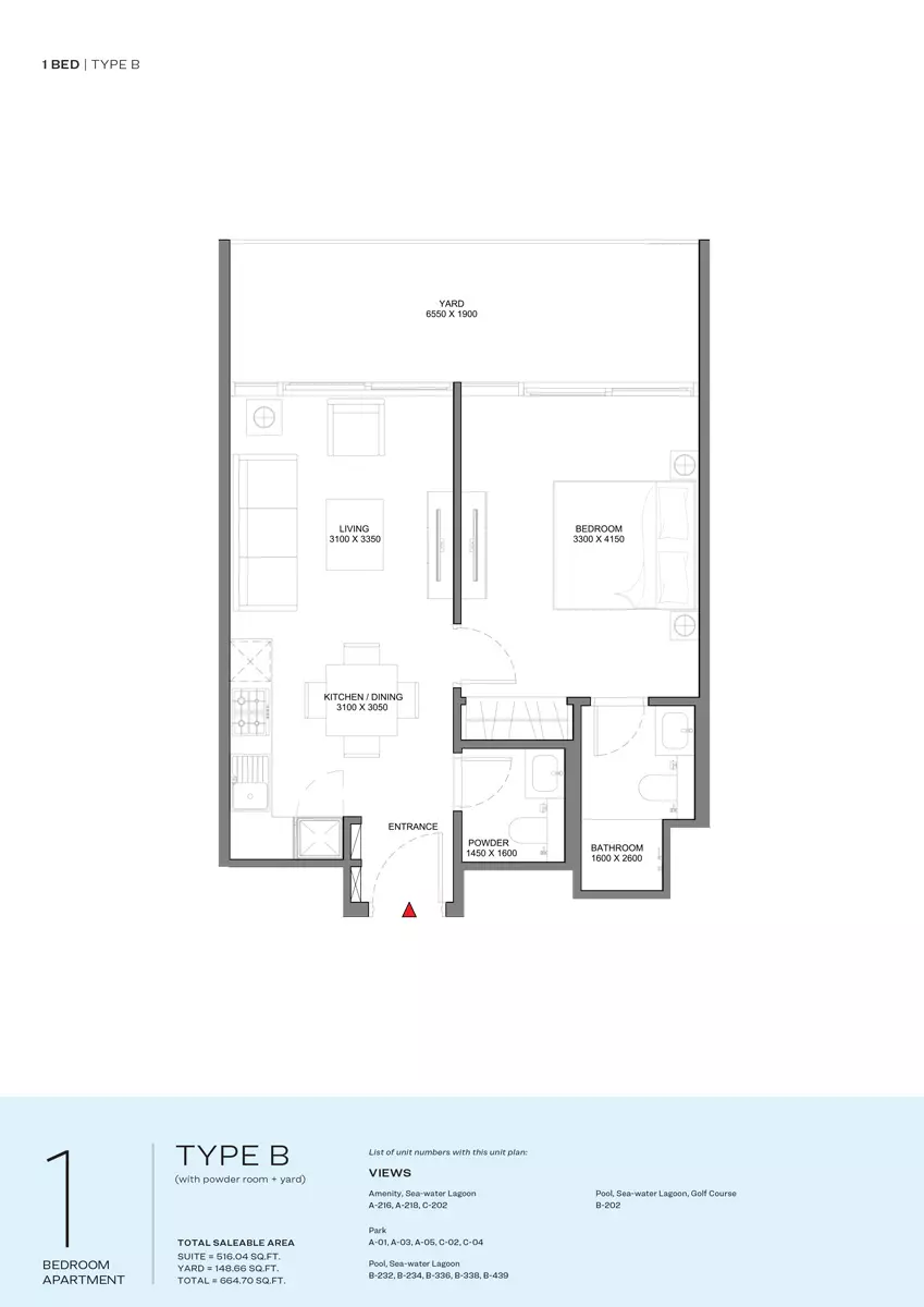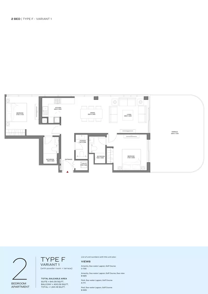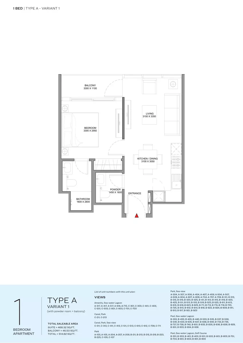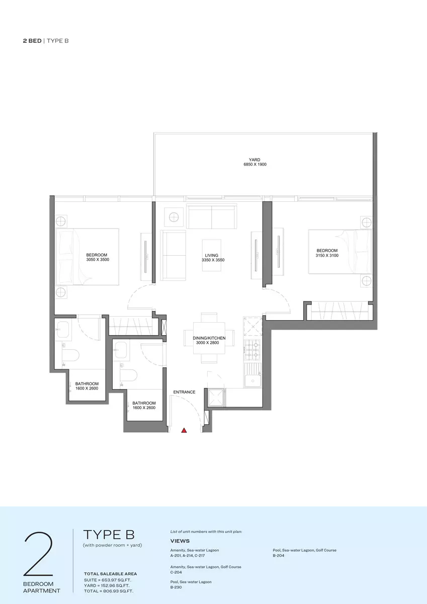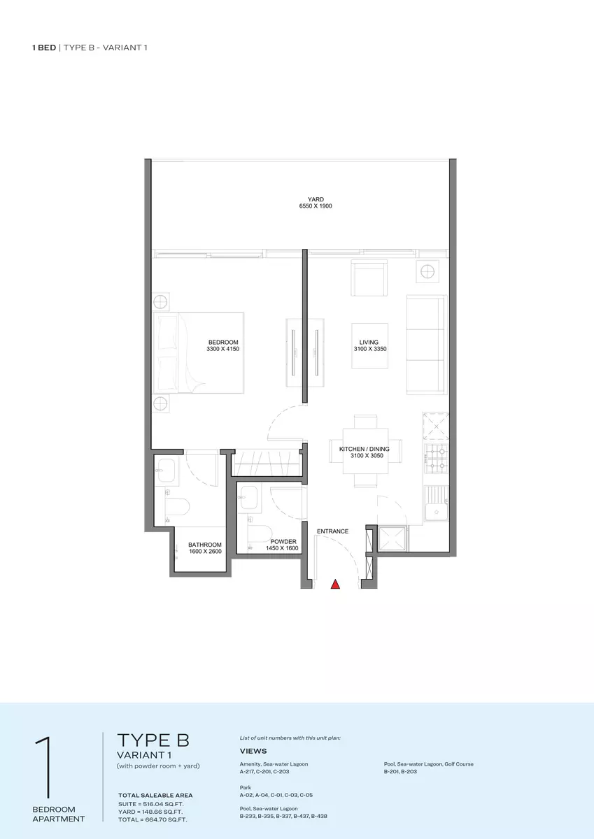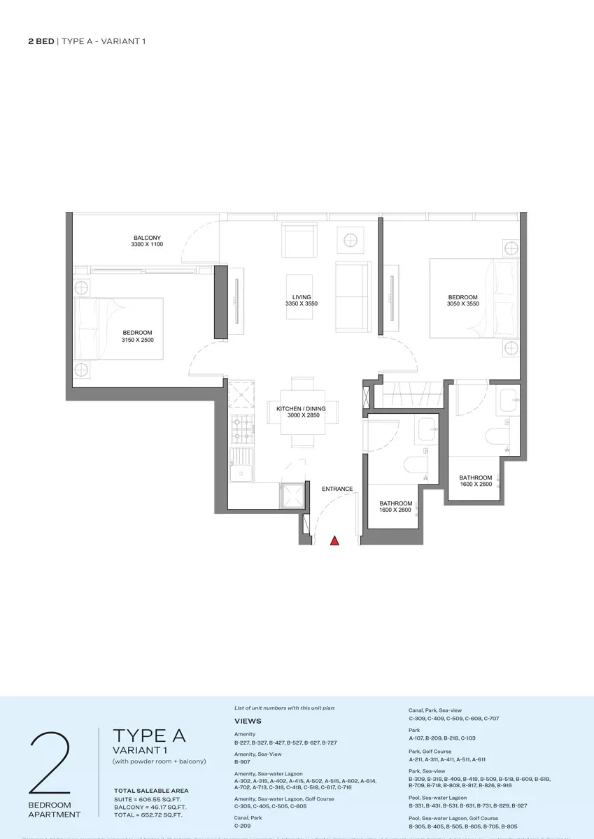 Delphine Beach Residences offers a variety of apartments with different sizes and prices: 1 Bedroom apartments range from 514 to 990 sqft, starting at 1.1M AED. 2 Bedroom apartments range from 652 to 1341 sqft, starting at 1.4M AED. 3 Bedroom apartments have a size of 2159 sqft, with prices starting at 4.9M AED. These options provide a mix of compact and spacious layouts for those seeking modern beachfront living in Umm Al Quwain.