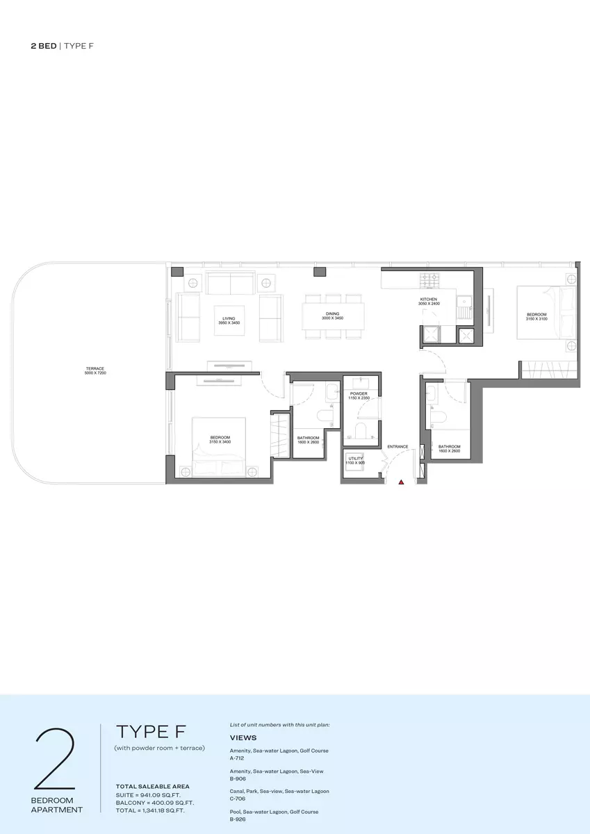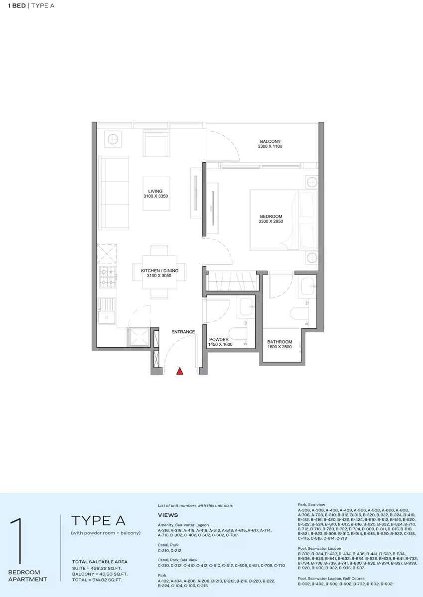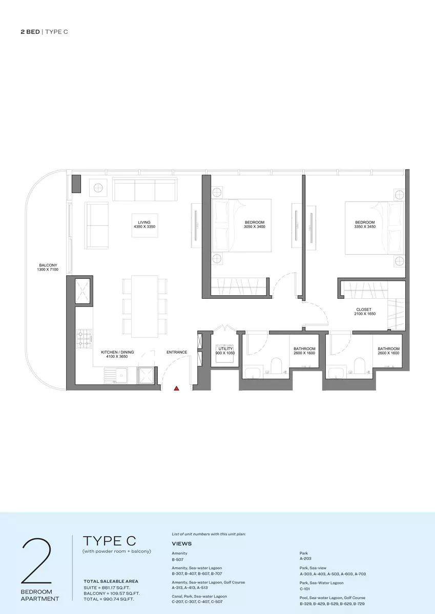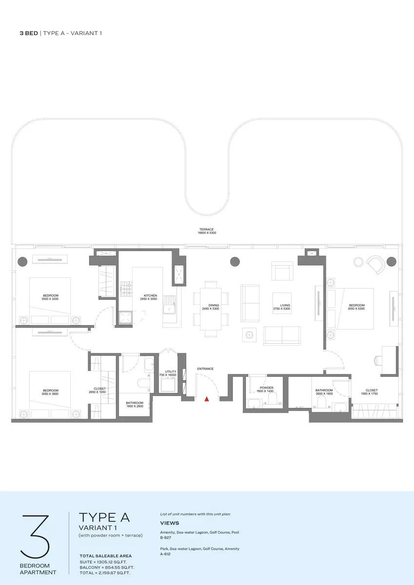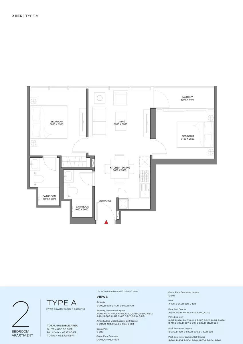 Delphine Beach Residences offers a variety of apartments with different sizes and prices: 1 Bedroom apartments range from 514 to 990 sqft, starting at 1.1M AED. 2 Bedroom apartments range from 652 to 1341 sqft, starting at 1.4M AED. 3 Bedroom apartments have a size of 2159 sqft, with prices starting at 4.9M AED. These options provide a mix of compact and spacious layouts for those seeking modern beachfront living in Umm Al Quwain.
