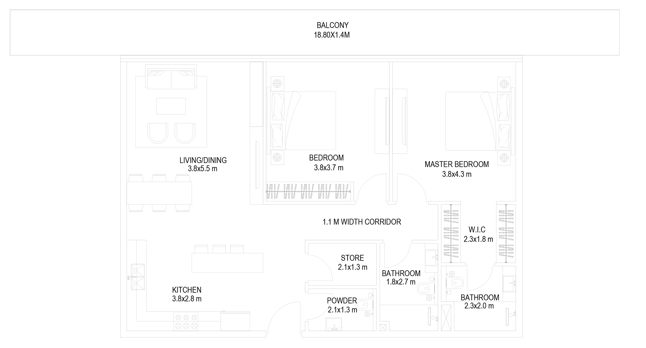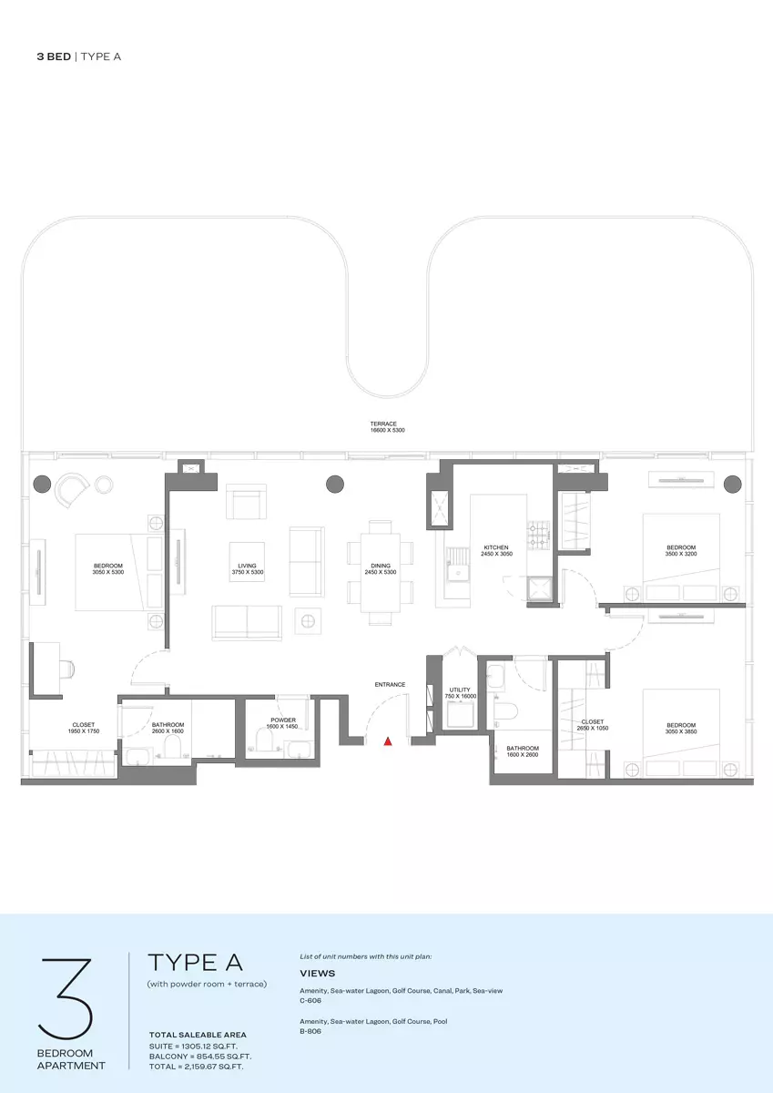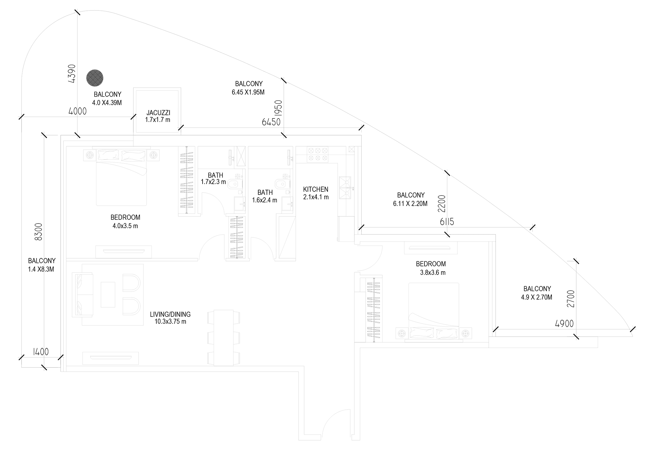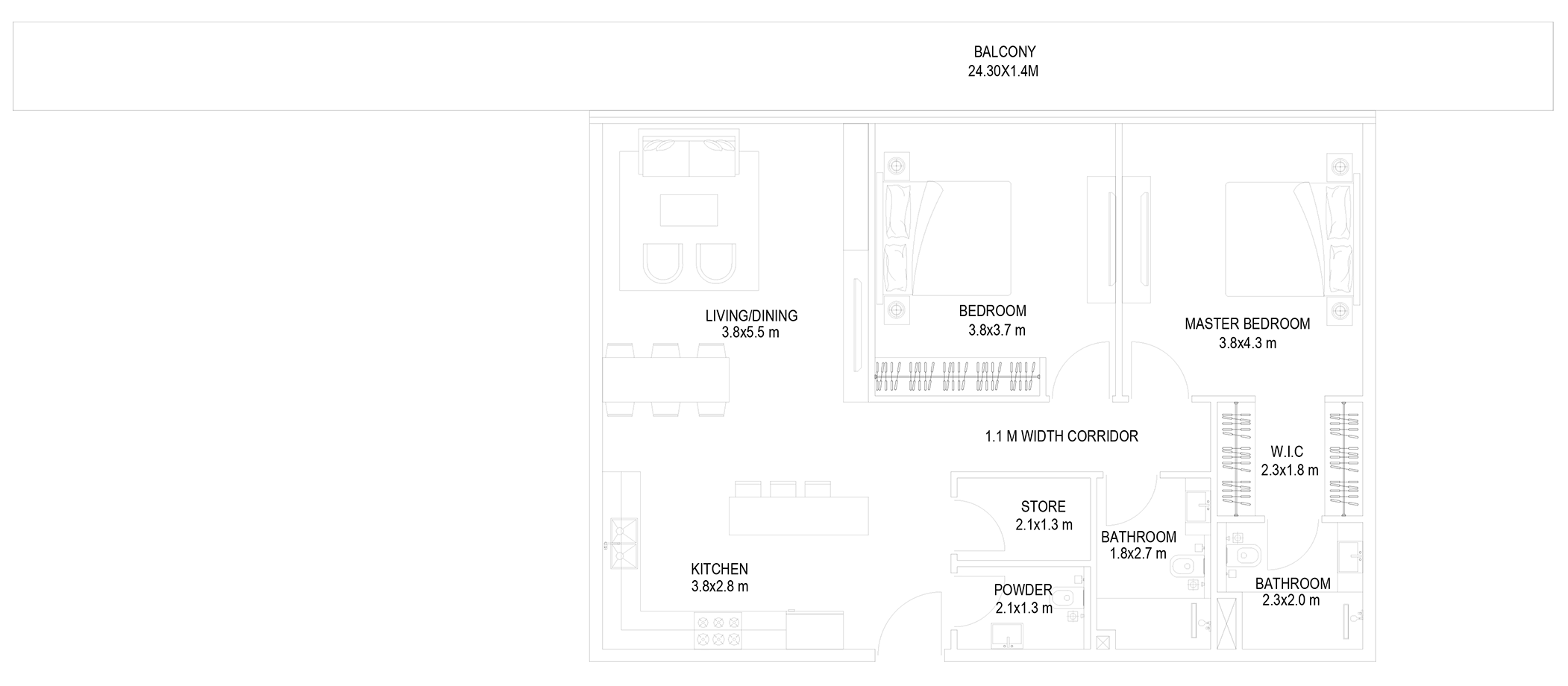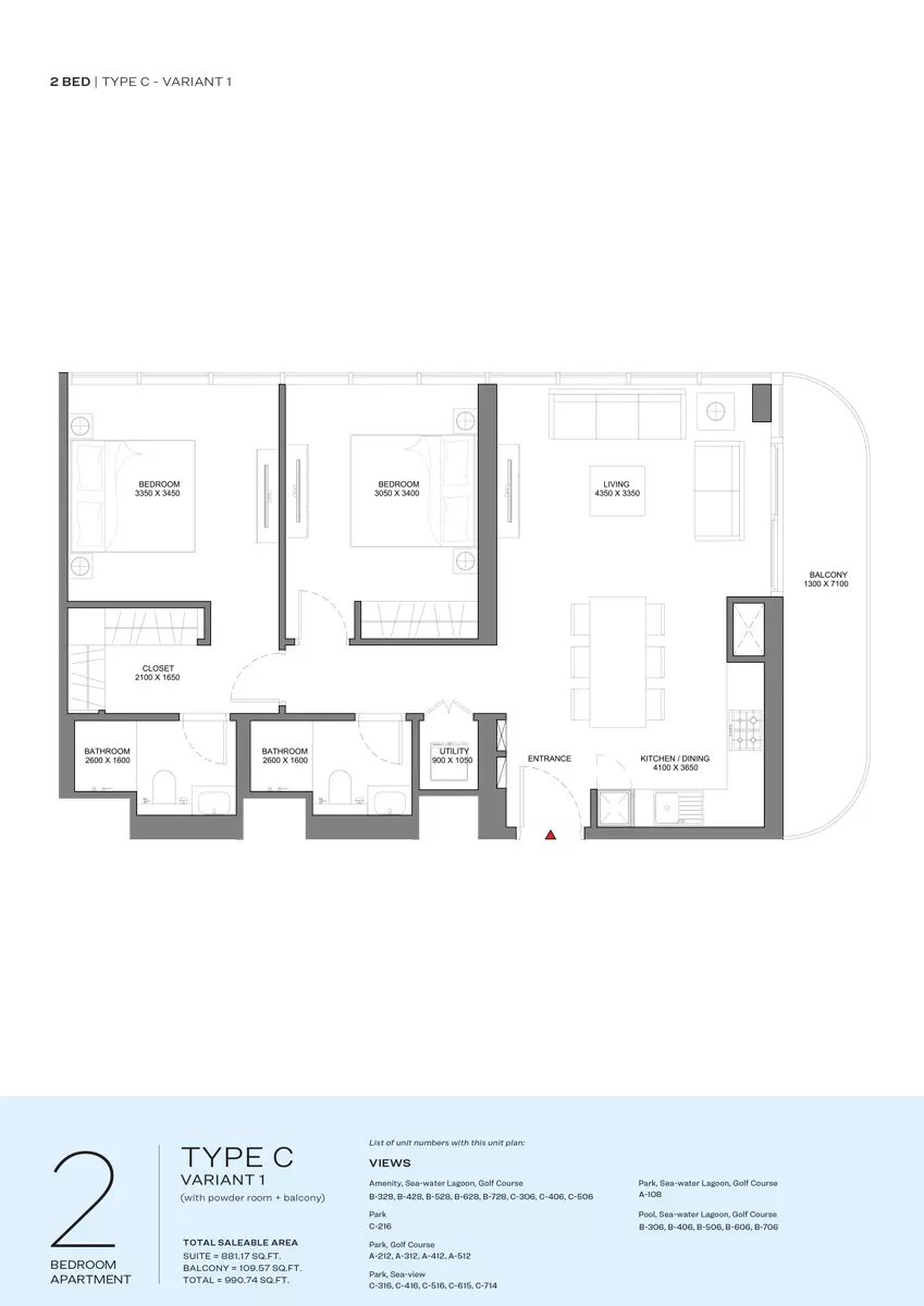 Delphine Beach Residences offers a variety of apartments with different sizes and prices: 1 Bedroom apartments range from 514 to 990 sqft, starting at 1.1M AED. 2 Bedroom apartments range from 652 to 1341 sqft, starting at 1.4M AED. 3 Bedroom apartments have a size of 2159 sqft, with prices starting at 4.9M AED. These options provide a mix of compact and spacious layouts for those seeking modern beachfront living in Umm Al Quwain.
