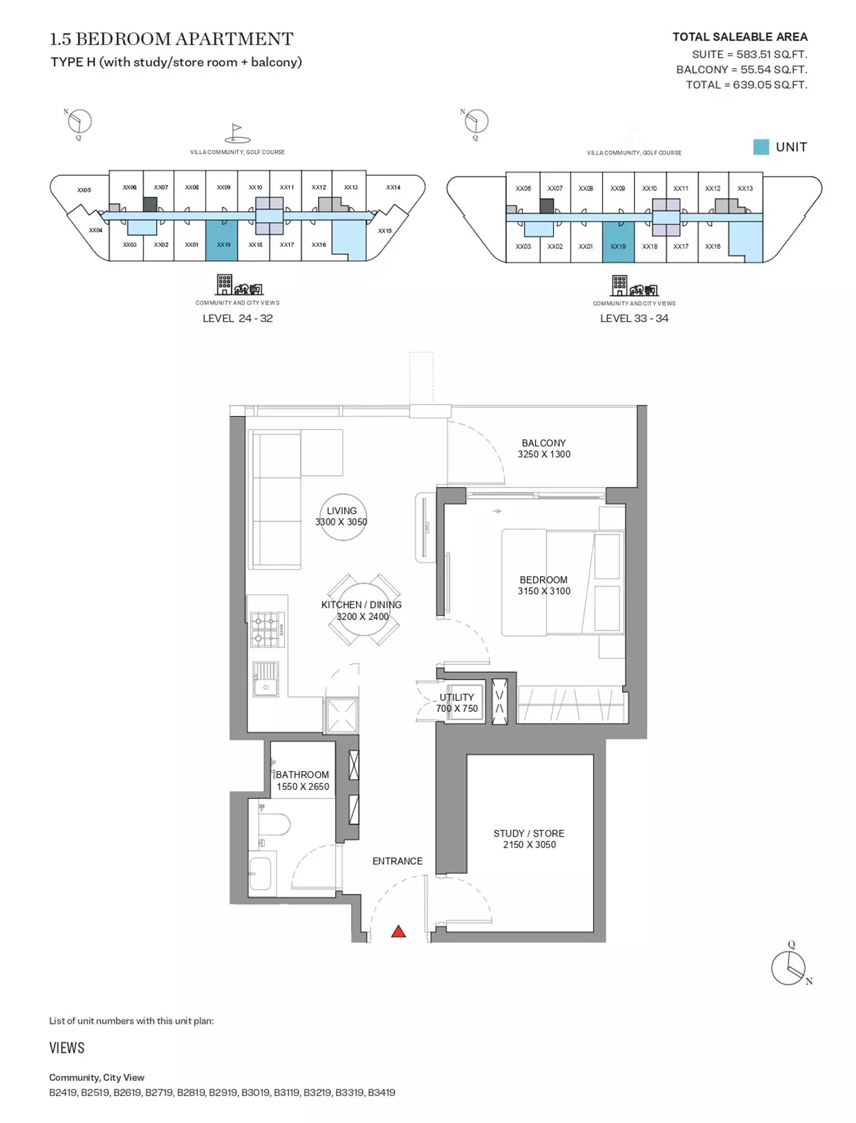 | Type H -Tower B | 639.00 | View |