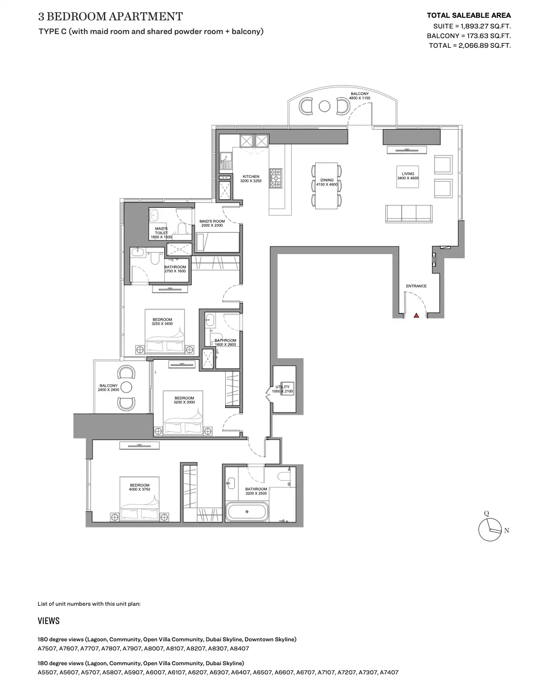 The starting price of Sobha Skyscape Altius is AED 1,700,000.