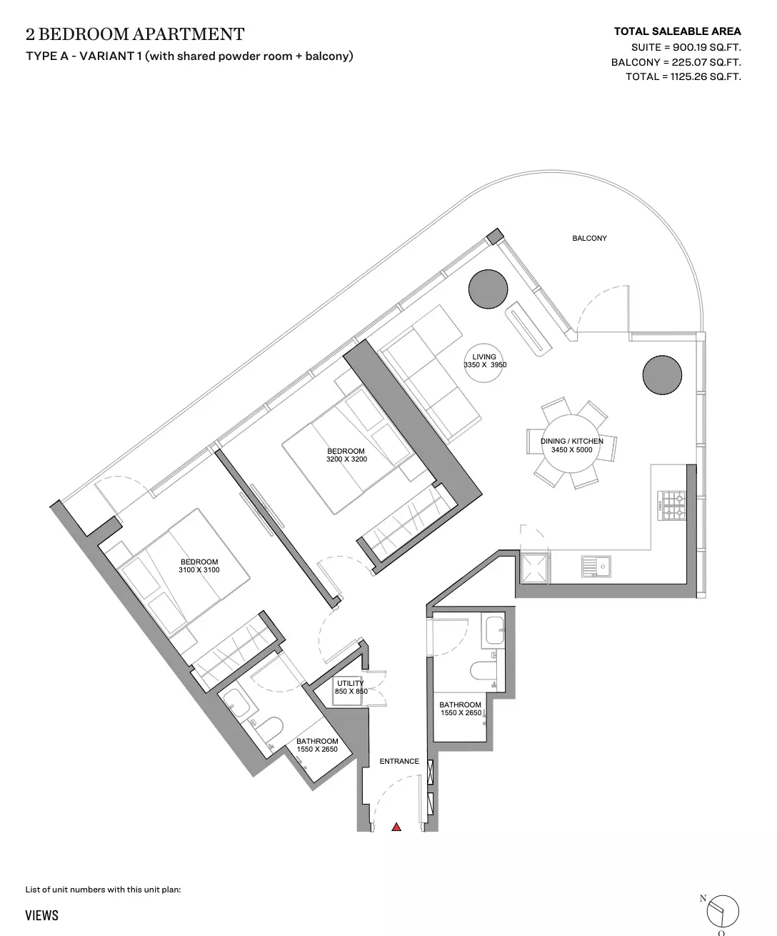 | Type A - Variant 1 (With Shared Powder Room + Balcony) | 1,125.00 | View |