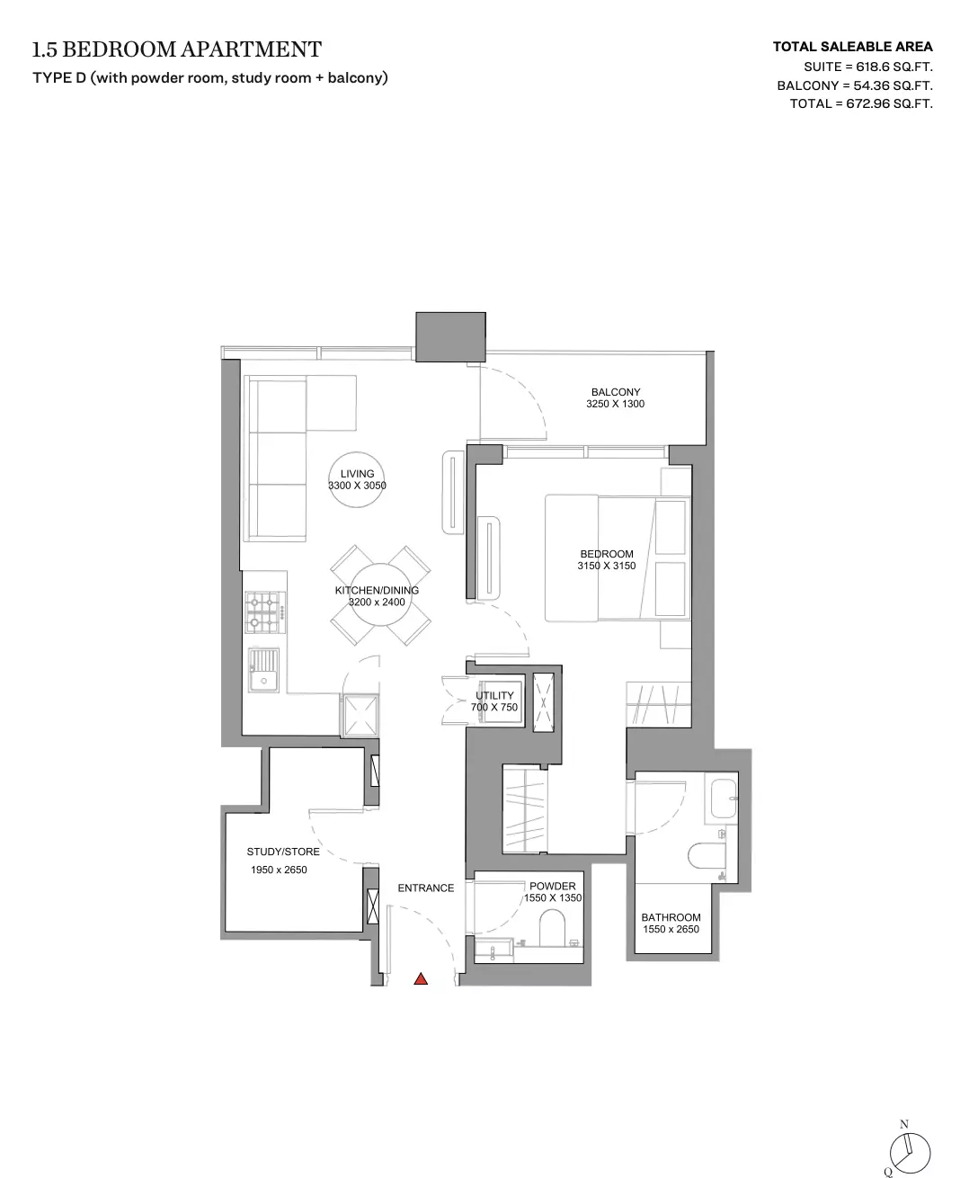 | TYPE D (with powder room, study room + balcony) | 672.00 | View |