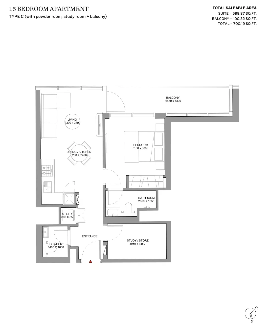 | Type C (With Powder Room, Study Room + Balcony) | 700.00 | View |
