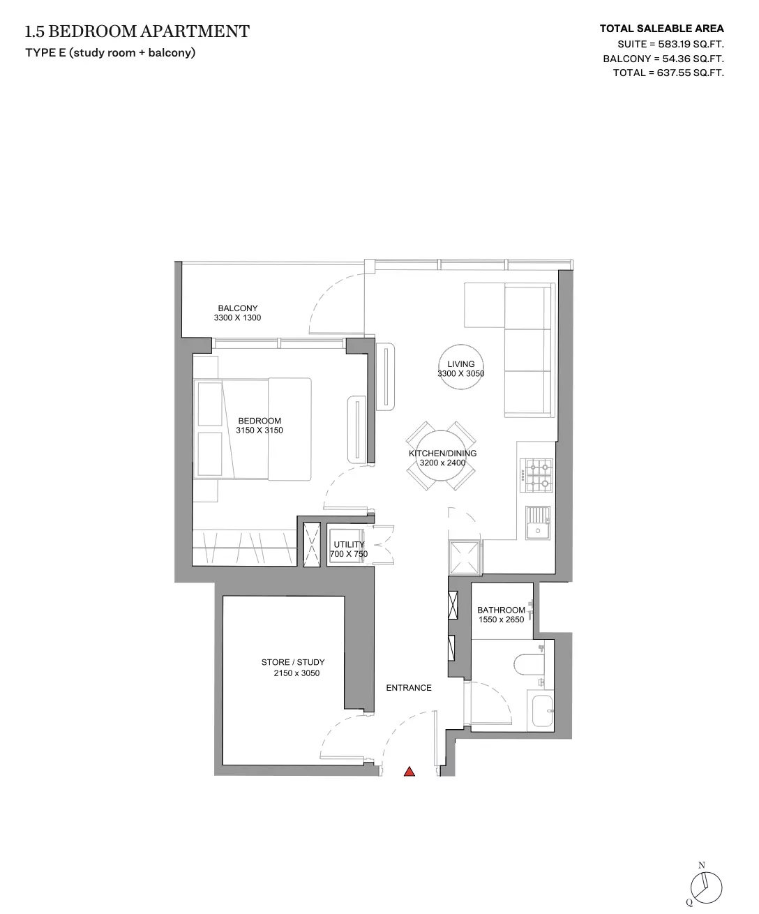 | Type E (Study Room + Balcony) | 637.00 | View |