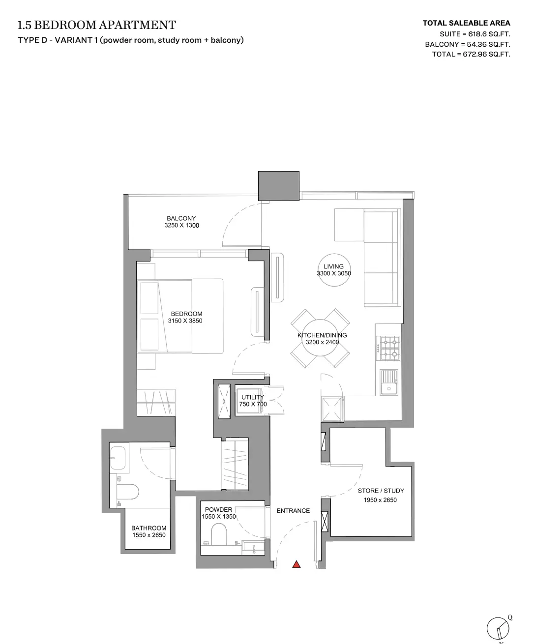 | Type D - Variant 1 (Powder Room, Study Room + Balcony) | 672.00 | View |
