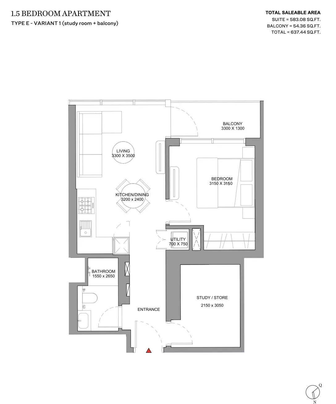 | Type E - Variant 1 (Study Room + Balcony) | 637.00 | View |