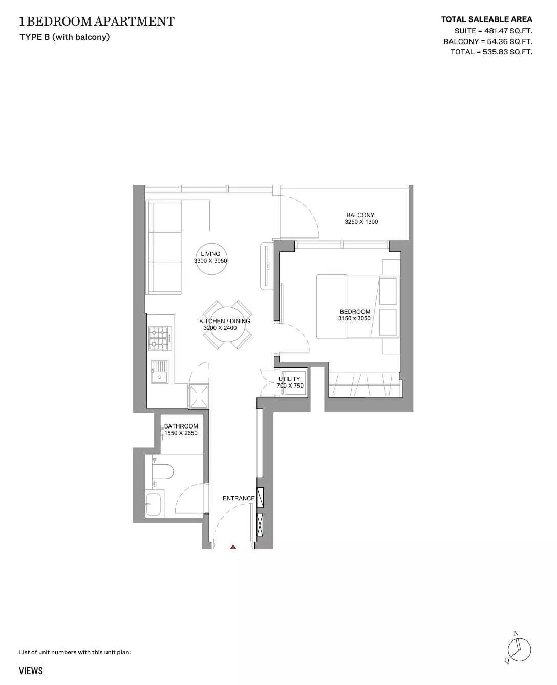 | Type B (With Balcony) | 535.00 | View |