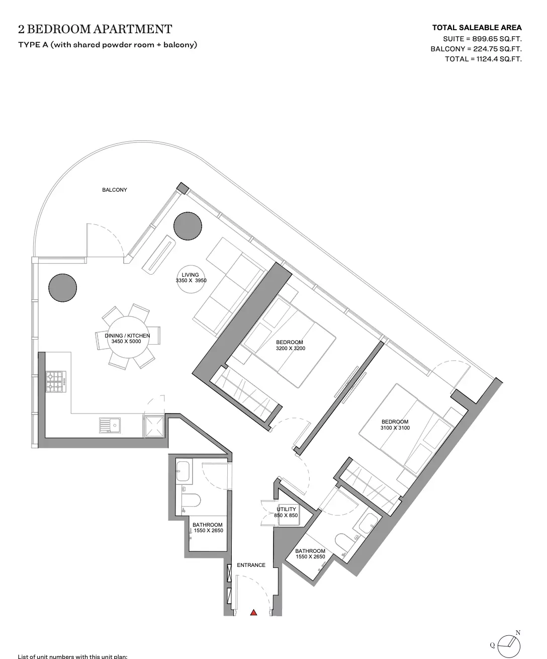 | Type A (With Shared Powder Room + Balcony) | 1,124.00 | View |