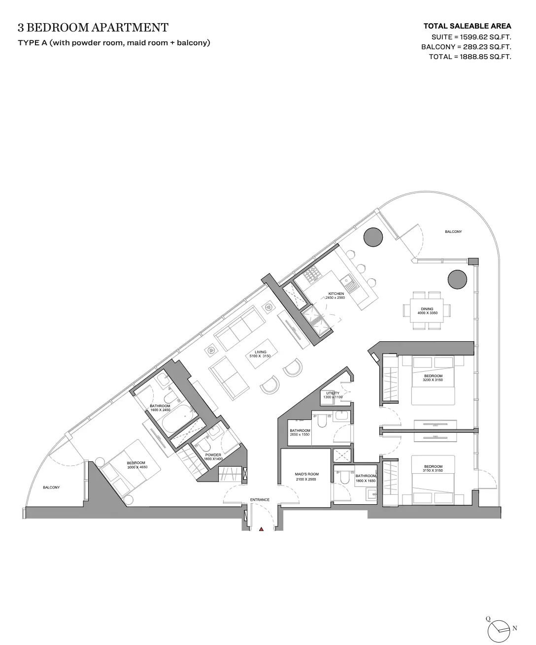 | Type A (With Powder Room, Maid Room + Balcony) | 1,888.00 | View |