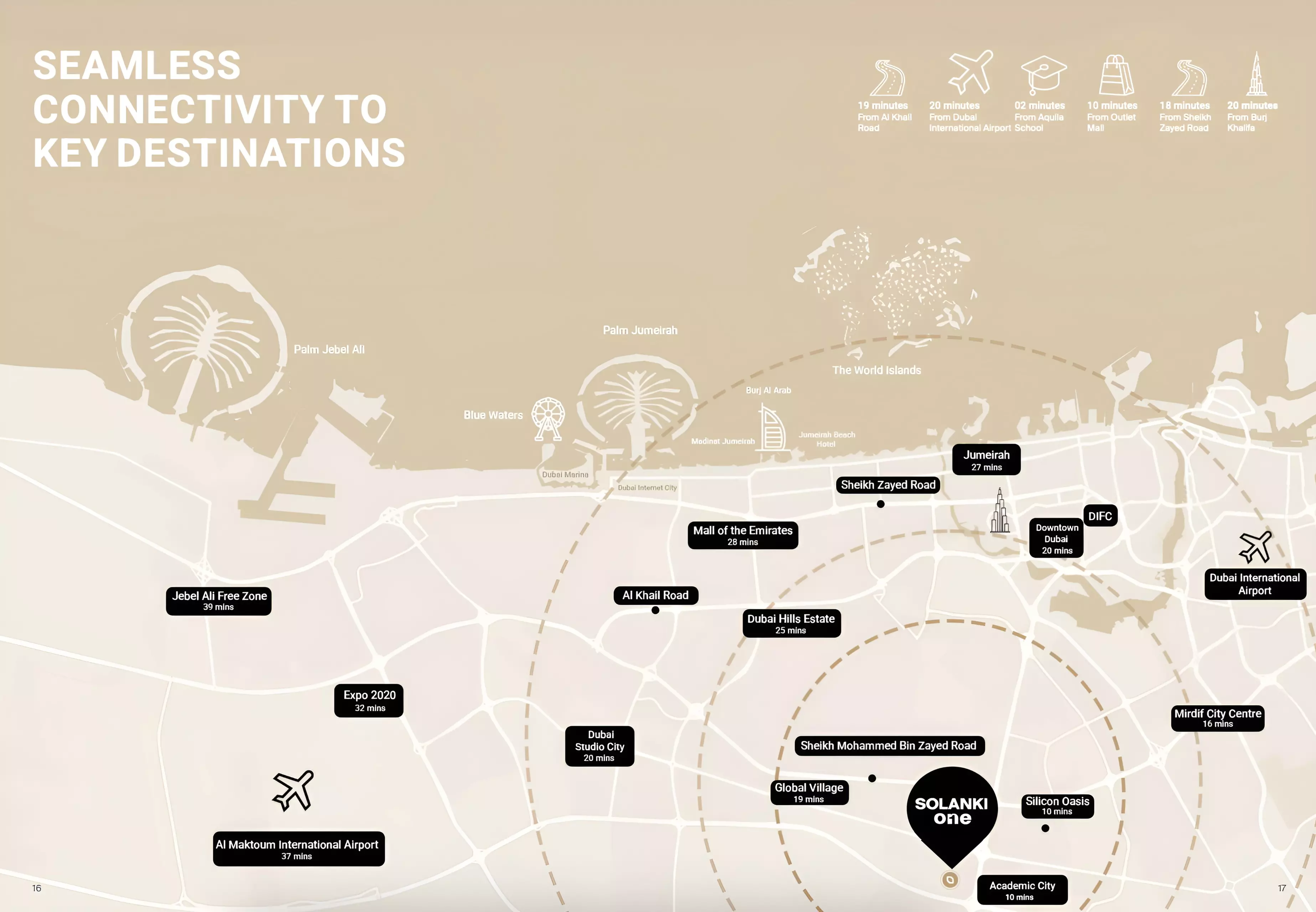 Solanki One is located in Dubai, within the Dubai Land Residence Complex, offering residents direct access to key city destinations.