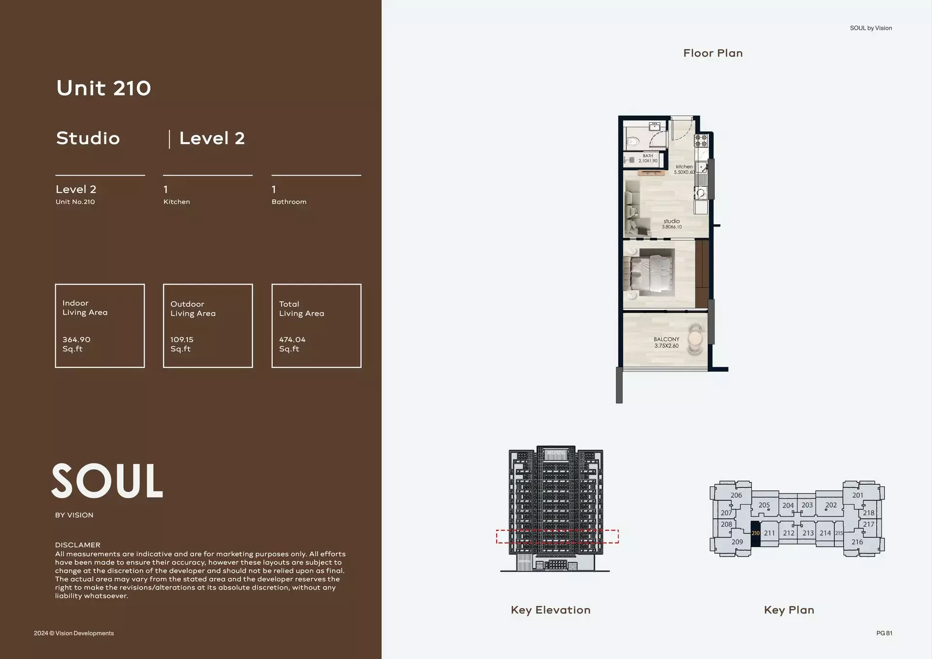 Soul by Vision offers a diverse range of housing options designed to suit different lifestyles and needs. The project includes studio apartments ranging from 469 to 474 square feet, ideal for individuals or young professionals. One-bedroom units span 810 square feet, providing ample space with functional layouts. For families or those seeking more room, two-bedroom apartments range from 1,368 to 1,403 square feet, while the spacious three-bedroom units offer 1,738 square feet of living area. Each residence is designed to maximize space, natural light, and comfort, making Soul by Vision a smart choice for modern, community-focused living in Dubai.