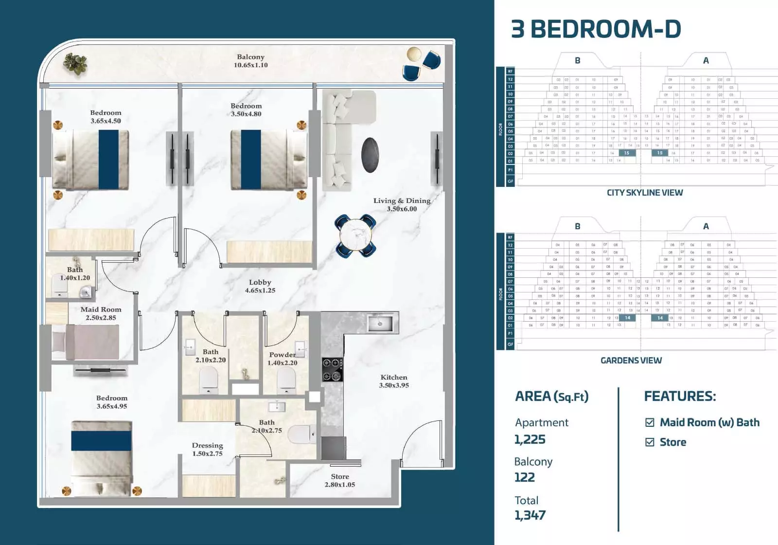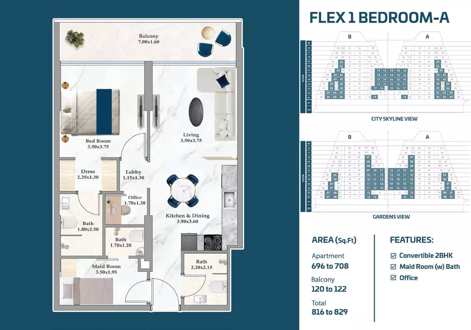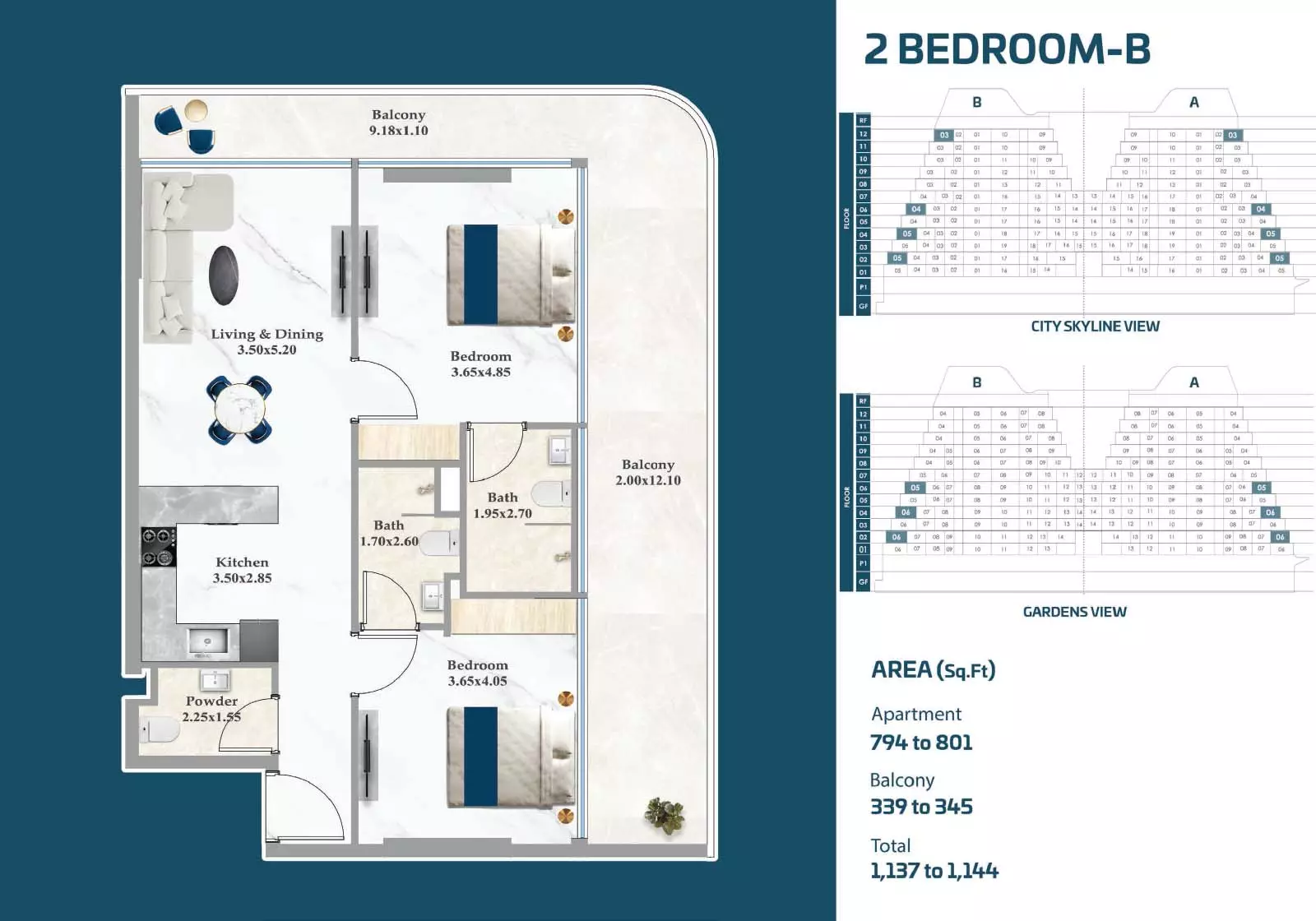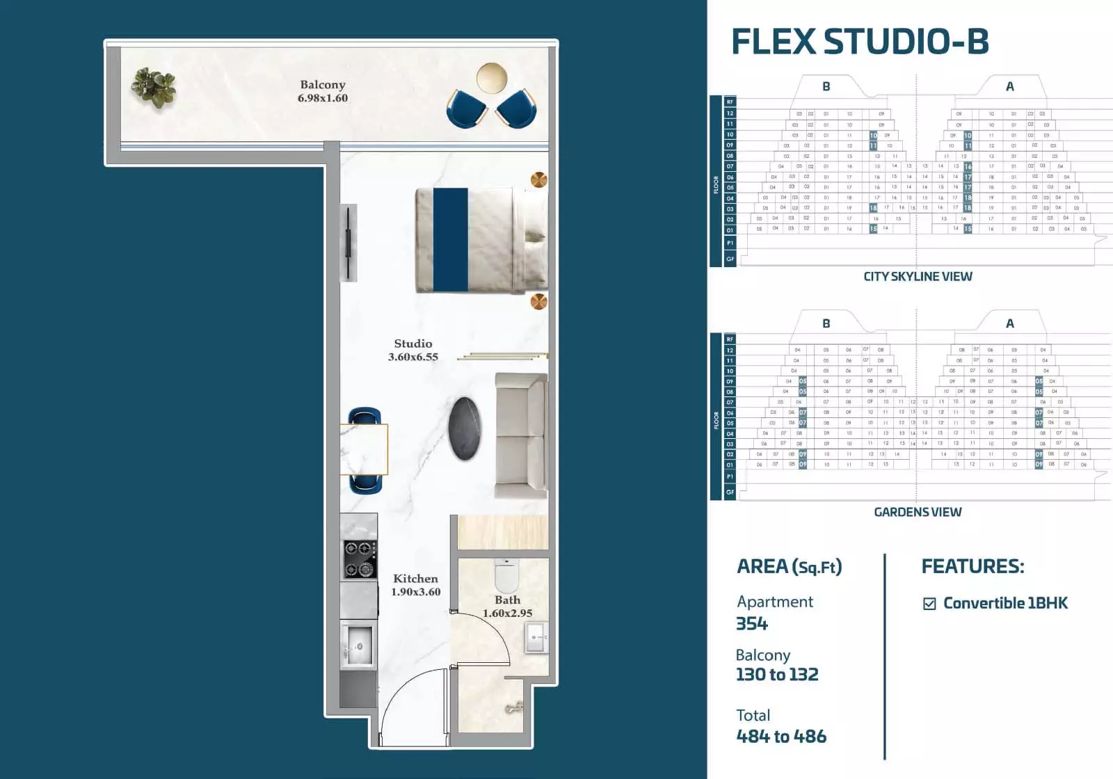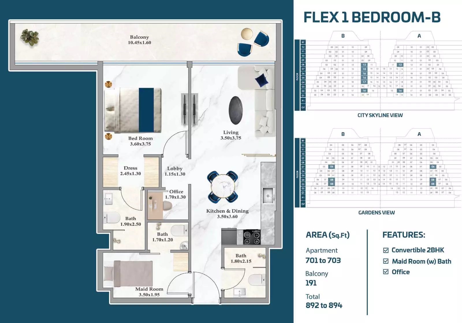 Sparklz offers a variety of apartments with different layouts, sizes, and price points, giving buyers the flexibility to choose according to their needs and budget. Studio apartments start from AED 900,000, with sizes between 408 and 484 sqft, making them a practical choice for individuals or investors. One-bedroom units are available from AED 1.3M, ranging from 816 to 892 sqft, offering functional living spaces for singles or couples. Two-bedroom apartments start from AED 1.8M, with sizes between 1072 and 1137 sqft, suitable for small families. For those seeking larger spaces, three-bedroom residences are available from AED 2.3M, with layouts ranging from 1124 to 1603 sqft, providing expansive living areas. These options make Sparklz a versatile development appealing to a wide range of buyers.