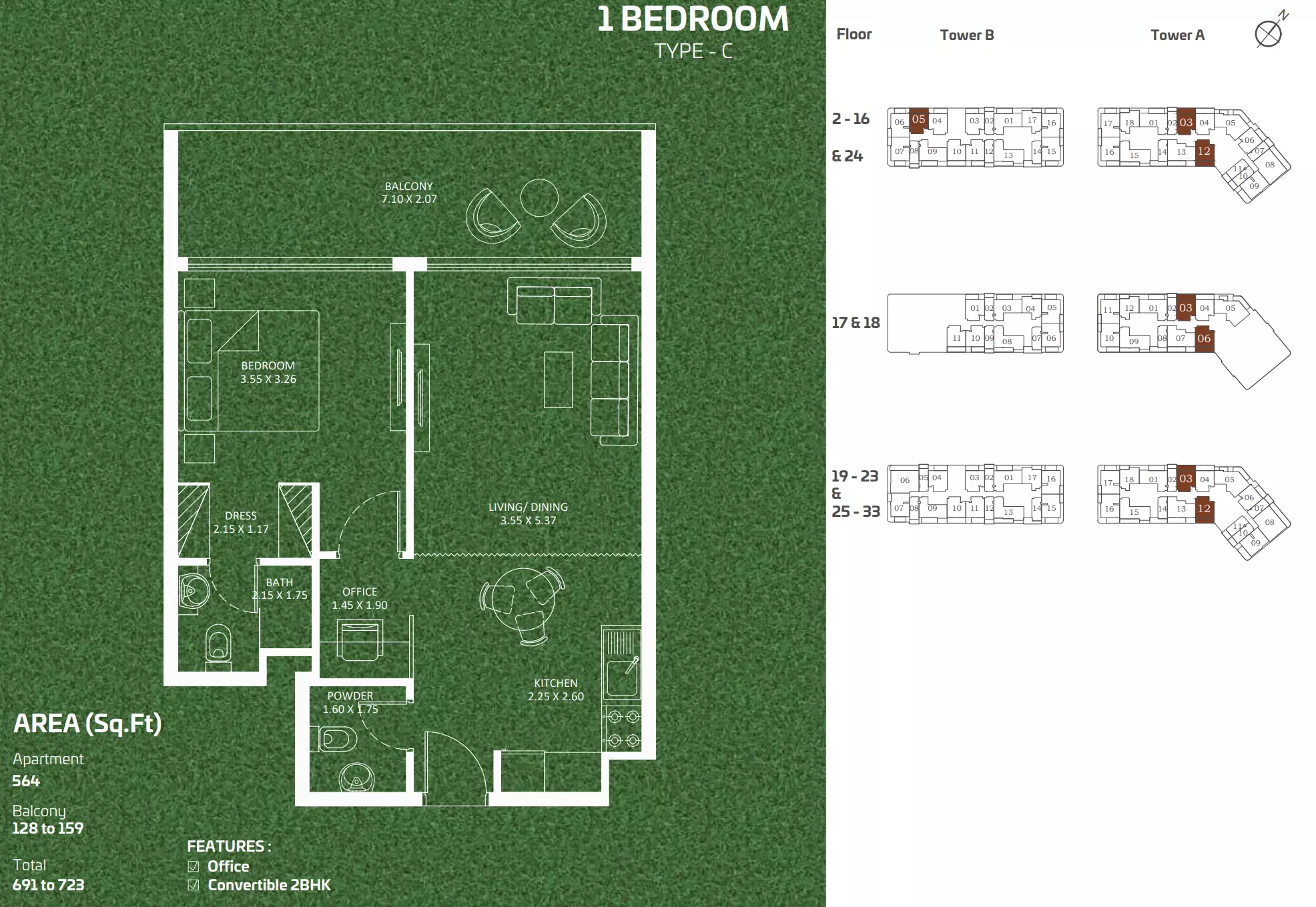 | Type A - Tower A&B | 1,212.00 | View |