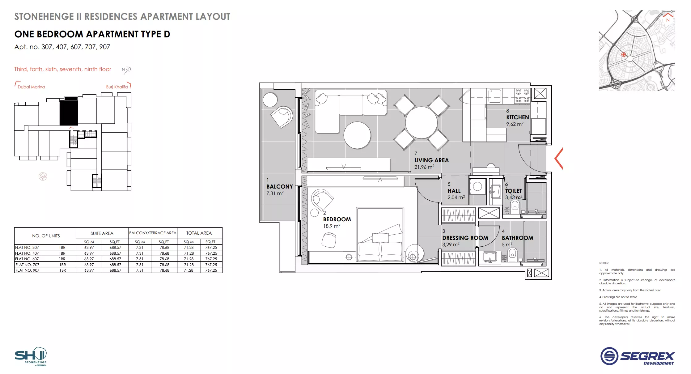 | Type D - Apt. no. 307, 407, 607, 707, 907 | 767.00 | View |