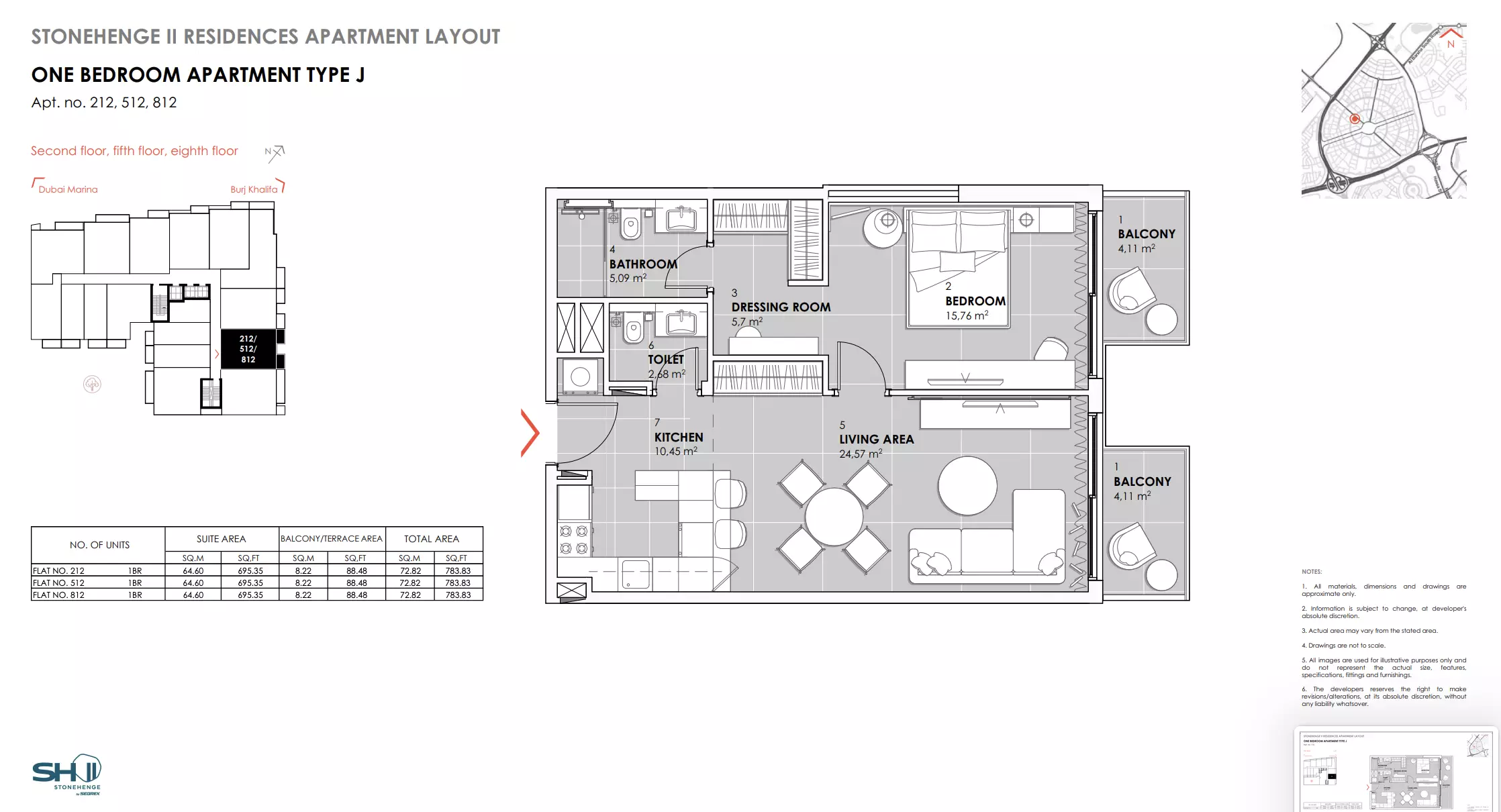 | Type J - Apt. no. 212, 512, 812 | 783.00 | View |