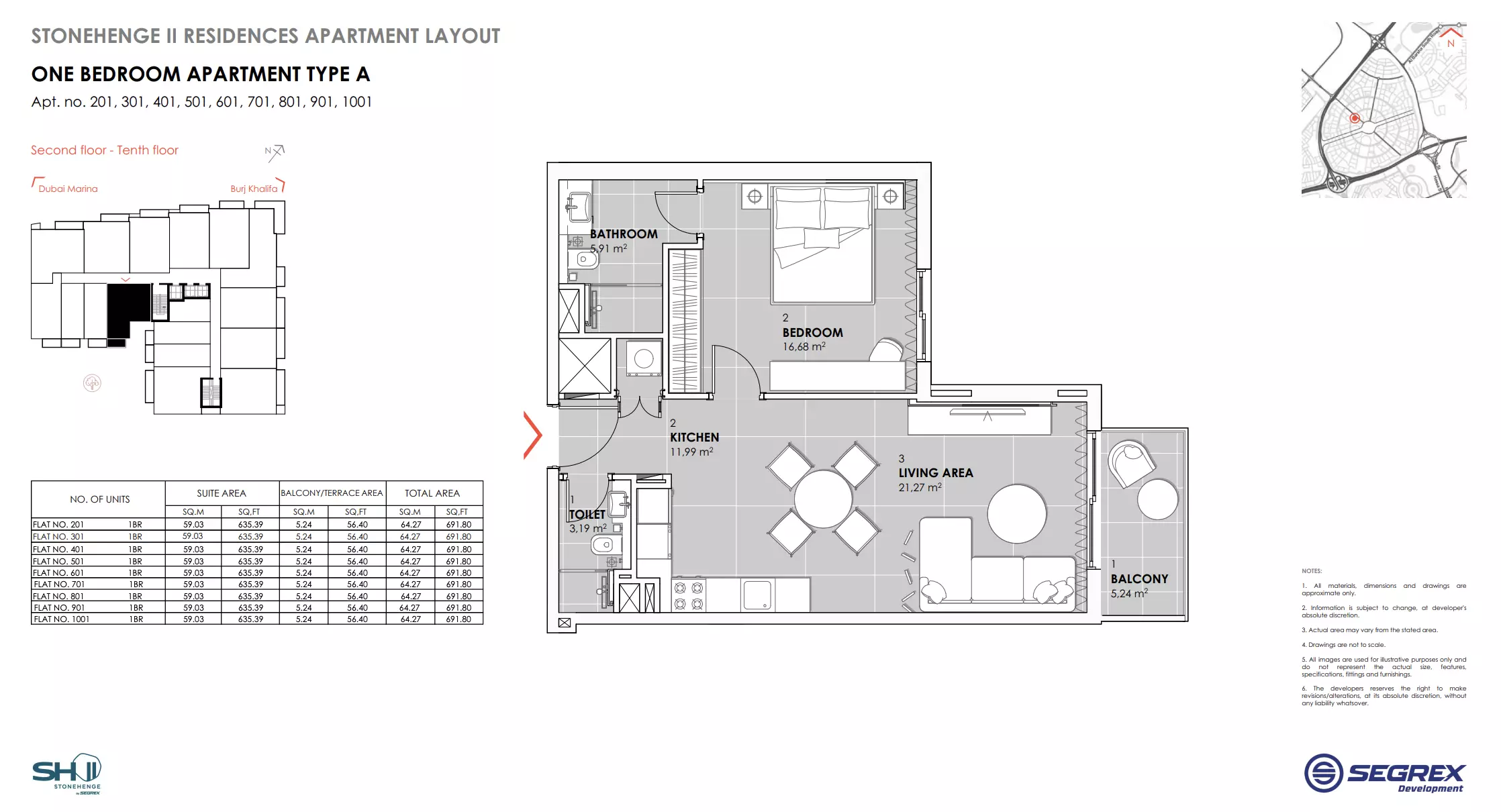 | Type A - Apt. no. 201, 301, 401, 501, 601, 701, 801, 901, 1001 | 691.00 | View |