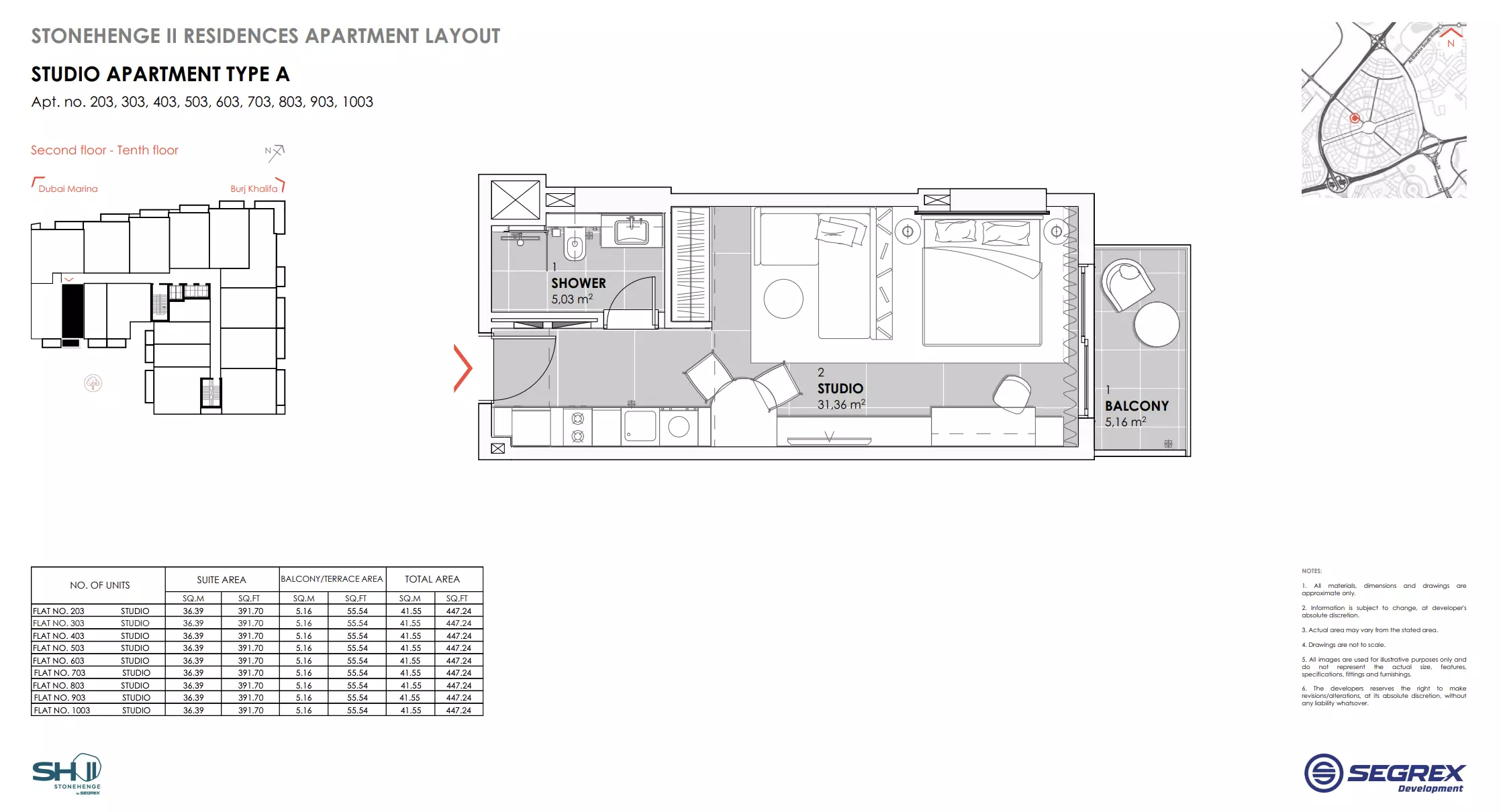 | Type A - Apt. no. 203, 303, 403, 503, 603, 703, 803, 903, 1003 | 447.00 | View |