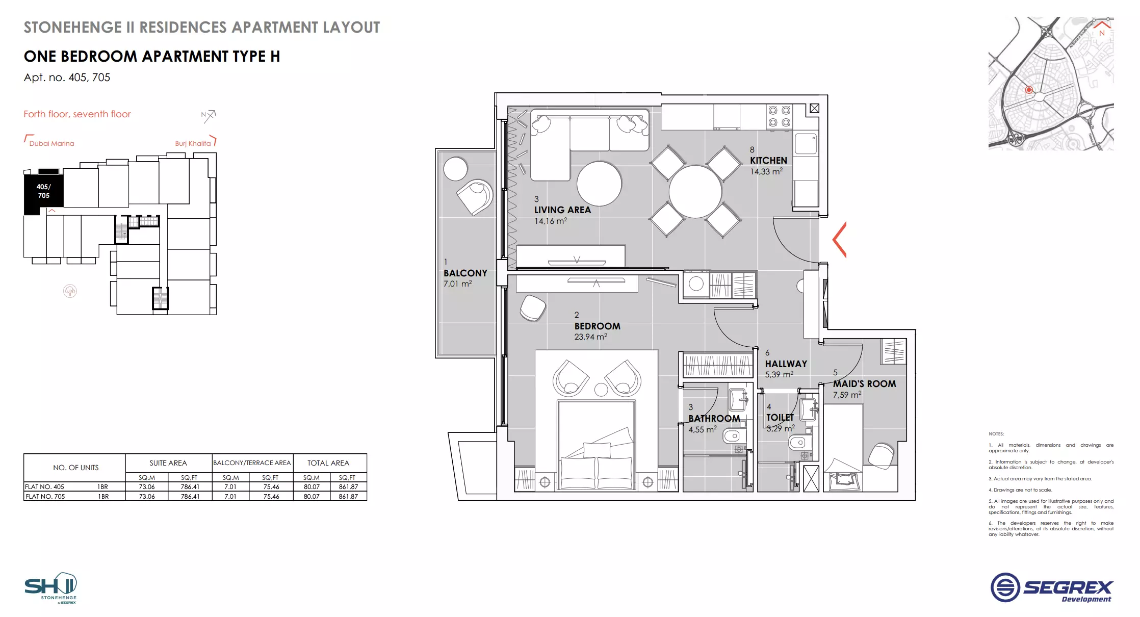| Type H - Apt. no. 405, 705 | 861.00 | View |