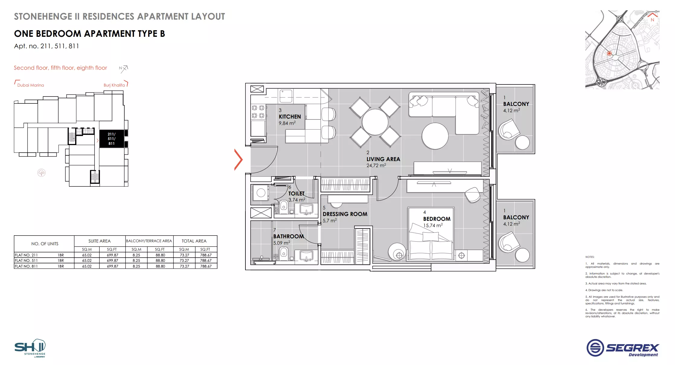 | Type B - Apt. no. 211, 511, 811 | 788.00 | View |